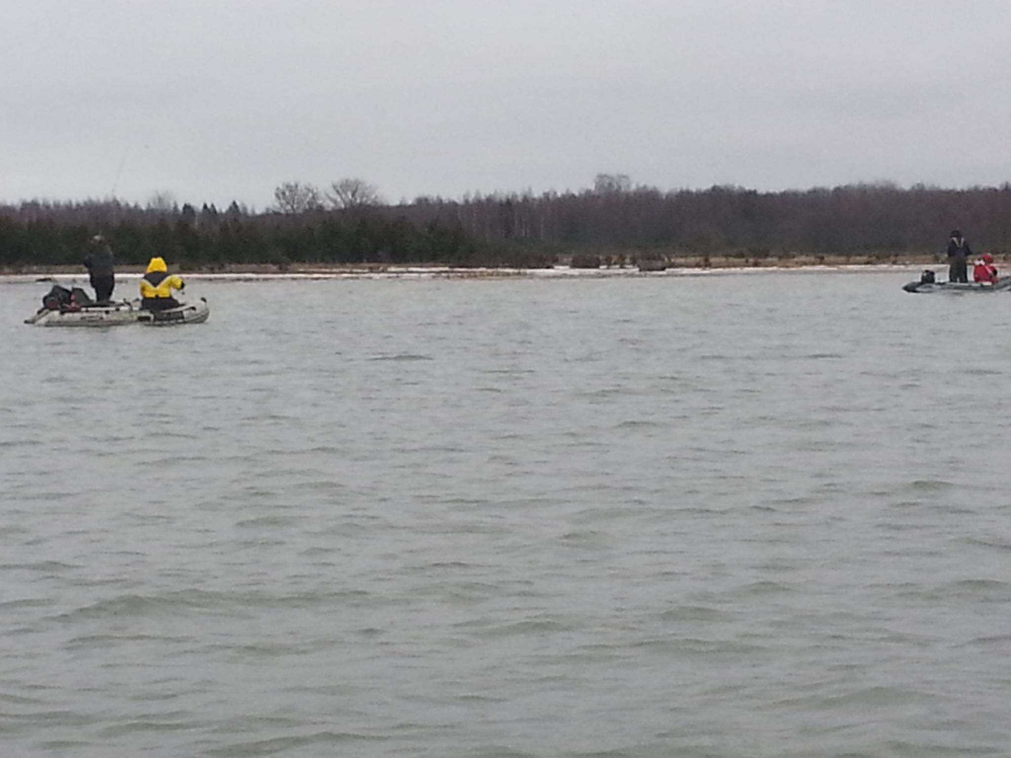 У Карпухи и у меня по экипажу на разных заливах. Над островом яркое солнце. У моих глушняк, уКарпухиных почти глушняк ( взяли 1 шт ).Сегодня с утра на материковой части острова минус 4 градуса, сейчас на берегу минус 2 — минус 2,5. Всё обледенело.
