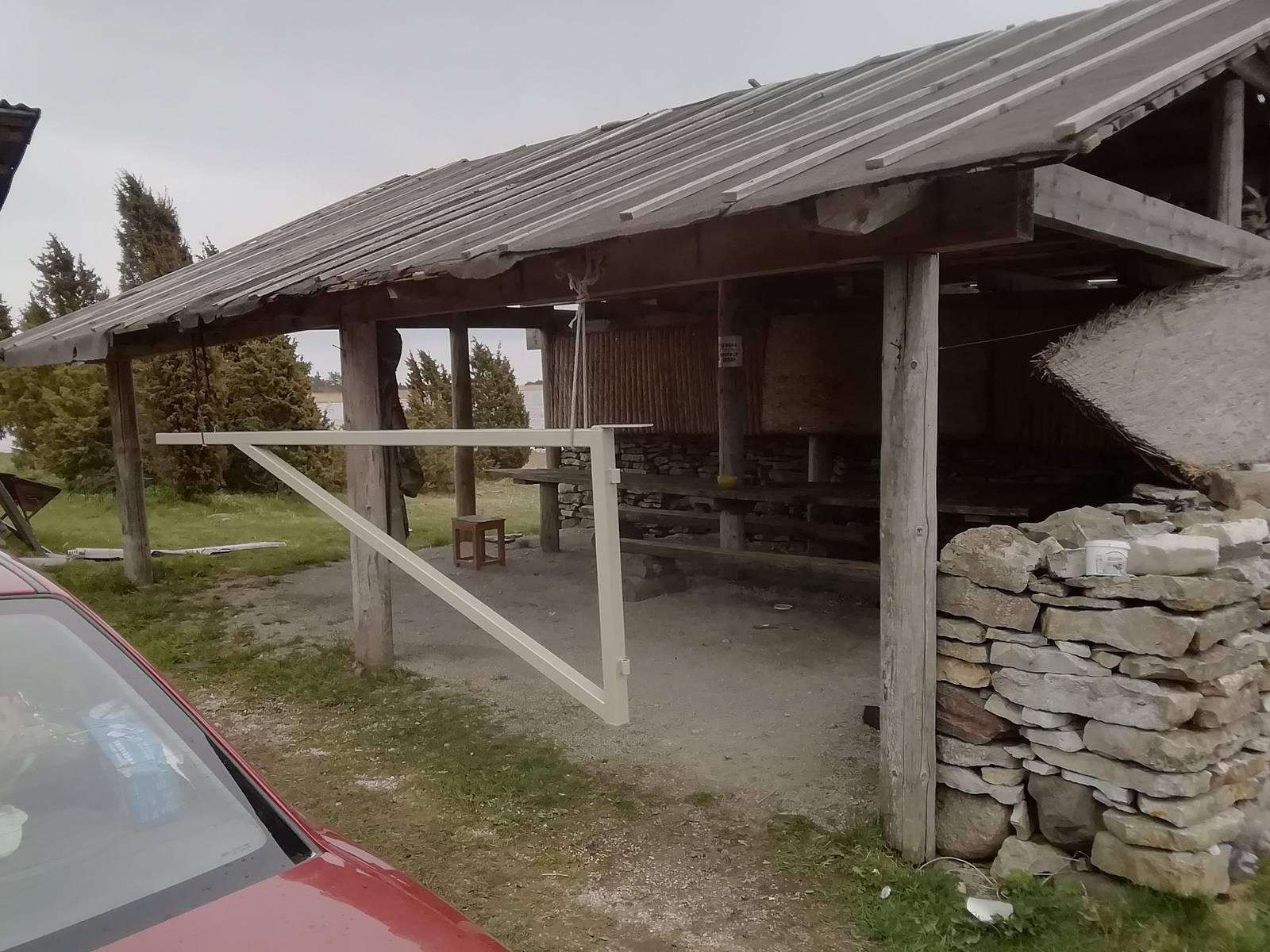 Ворота покрашены и подвешаны под крышей.Сушаться.»