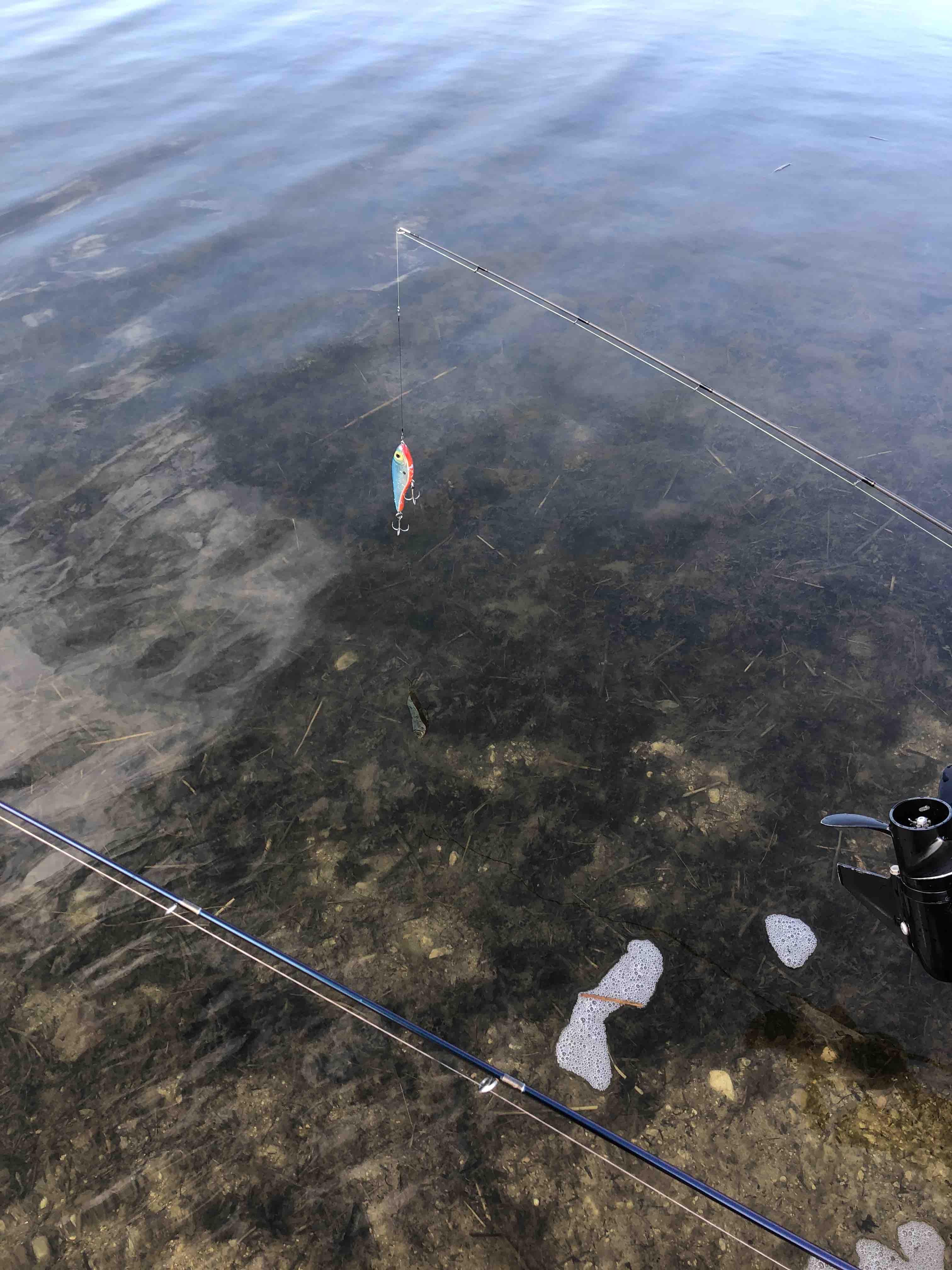 Масса сопровождений и тычков. И это на всех Сааремаских заливах наблюдалось: безбоязненно идёт до лодки, но даже и не собирается атаковать.Саарекюла. Солнце светит в левый глаз—нифига себе жара! И от этого солнца рыба вся поныкалась.