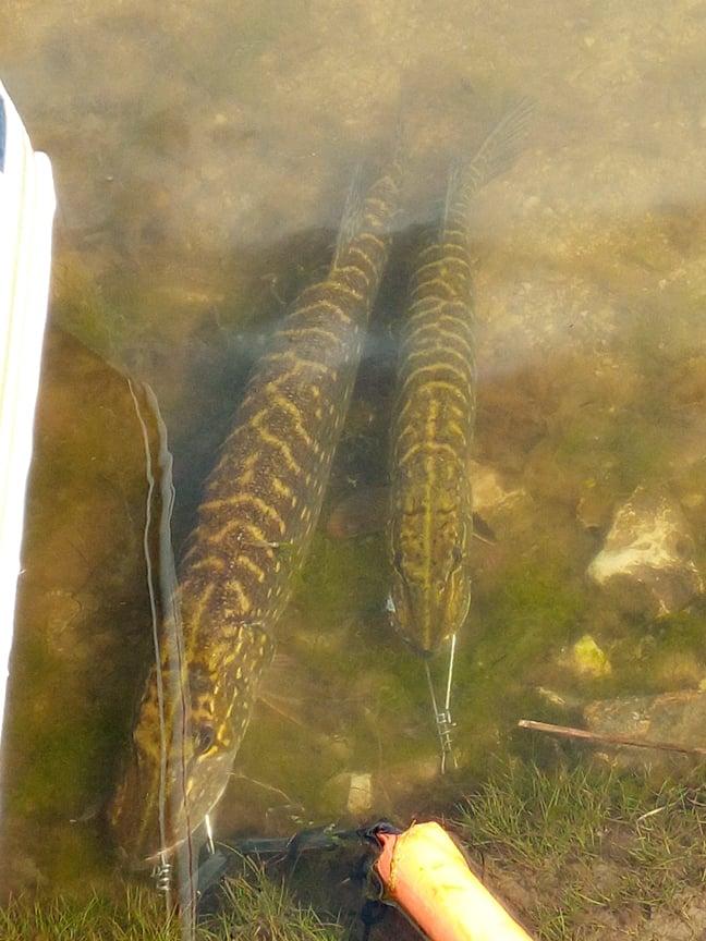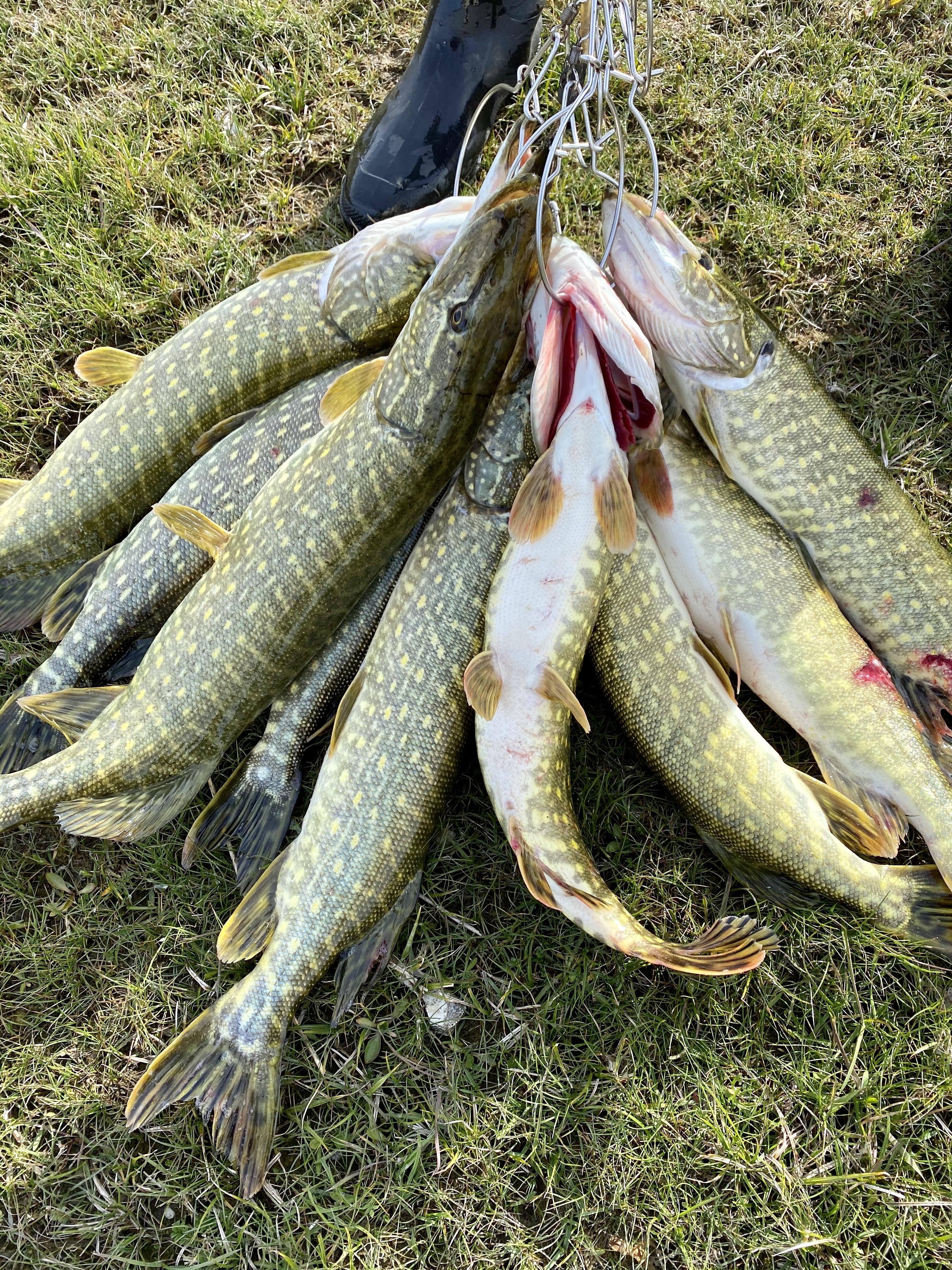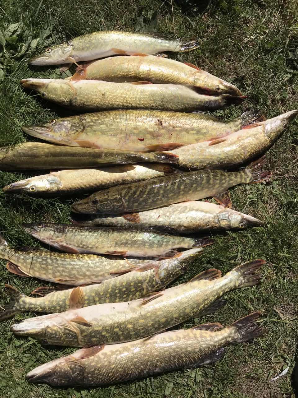 А так за вчера 11 щук . Немерных не было, но и двушки не попались.Каждый забрал себе по одной рыбке.