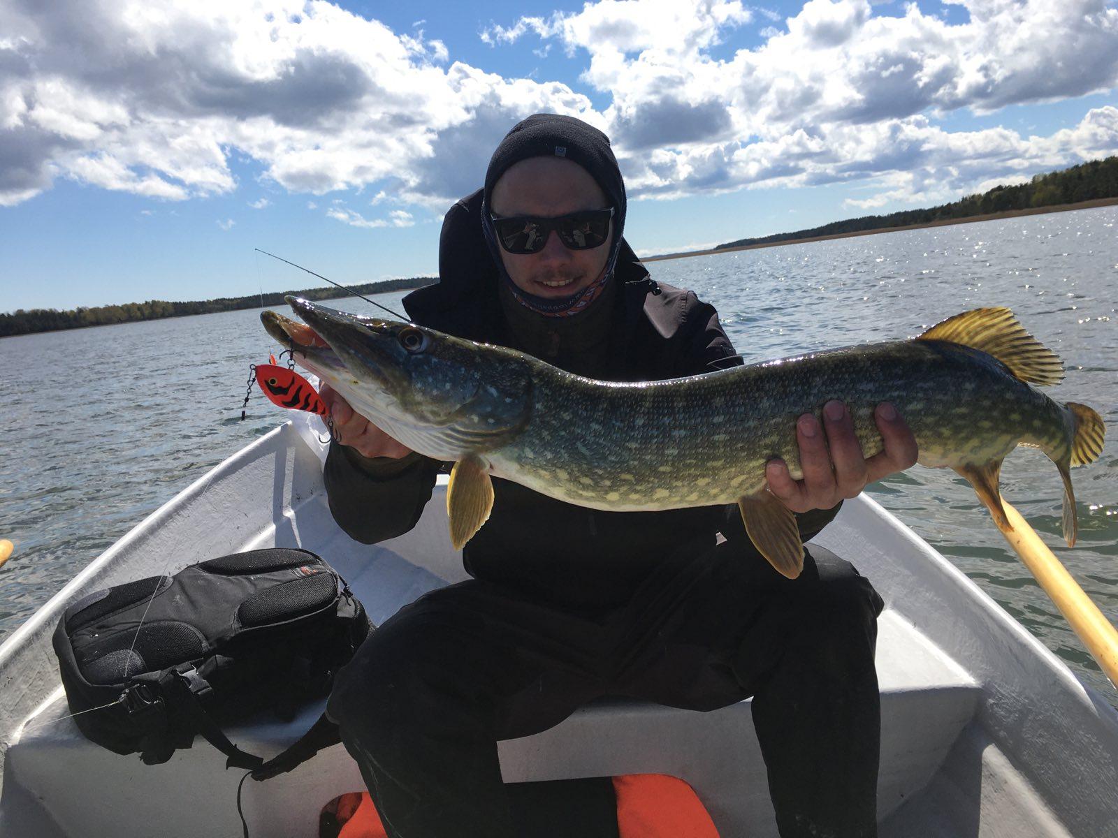 За это время как и положено Анатолий увидел 138 с половиной сопровождений щуки. Доходит до лодки, разворачивается и уходит. Даже блесну не атакует.