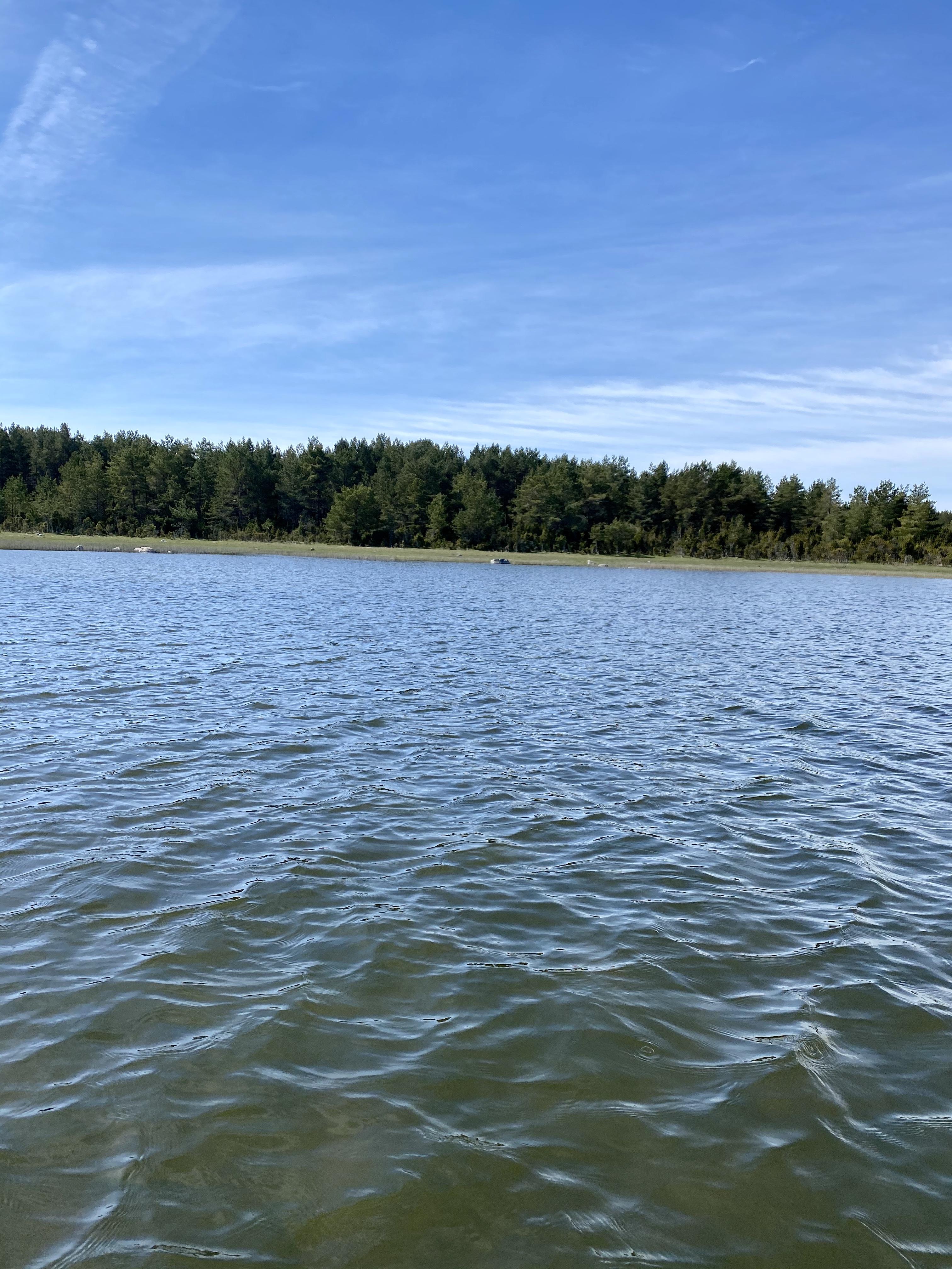С утра приехали погода класс воды прибыла но чуть-чуть . До обеда обошли пол залива рыба есть доходит до лодки разворачивается и уходит . После 12 поднялся западный ветерок хороший даже якорь не хотел нормально держать . И около камышей и камней начала брать капитально . Итог пять штук взяли , шесть сошло около самой лодки . У Любы шнур рассчитанный на 13 кило лопнул как струна . Всё ушло и поводок и слайдер карасик её любимый . Надо новый покупать . Пробовали на всё но слайдеры работали лучше всего. Вода стала резко прибывать и рыба пришла .Рыбаков никого не было . На заливе ещё одна лодка была местный у него с утра одна мелочь, а потом не знаю .