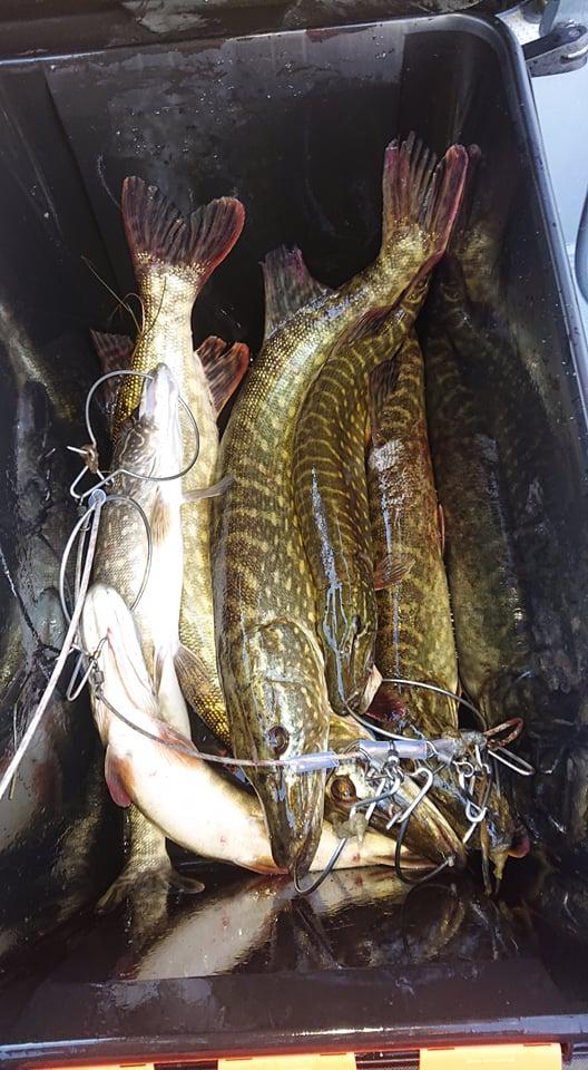 rybalingХранительА это уже улов с того же места Александра Карпухи и Любани позавчера: 4 щуки и хорошенький язь.