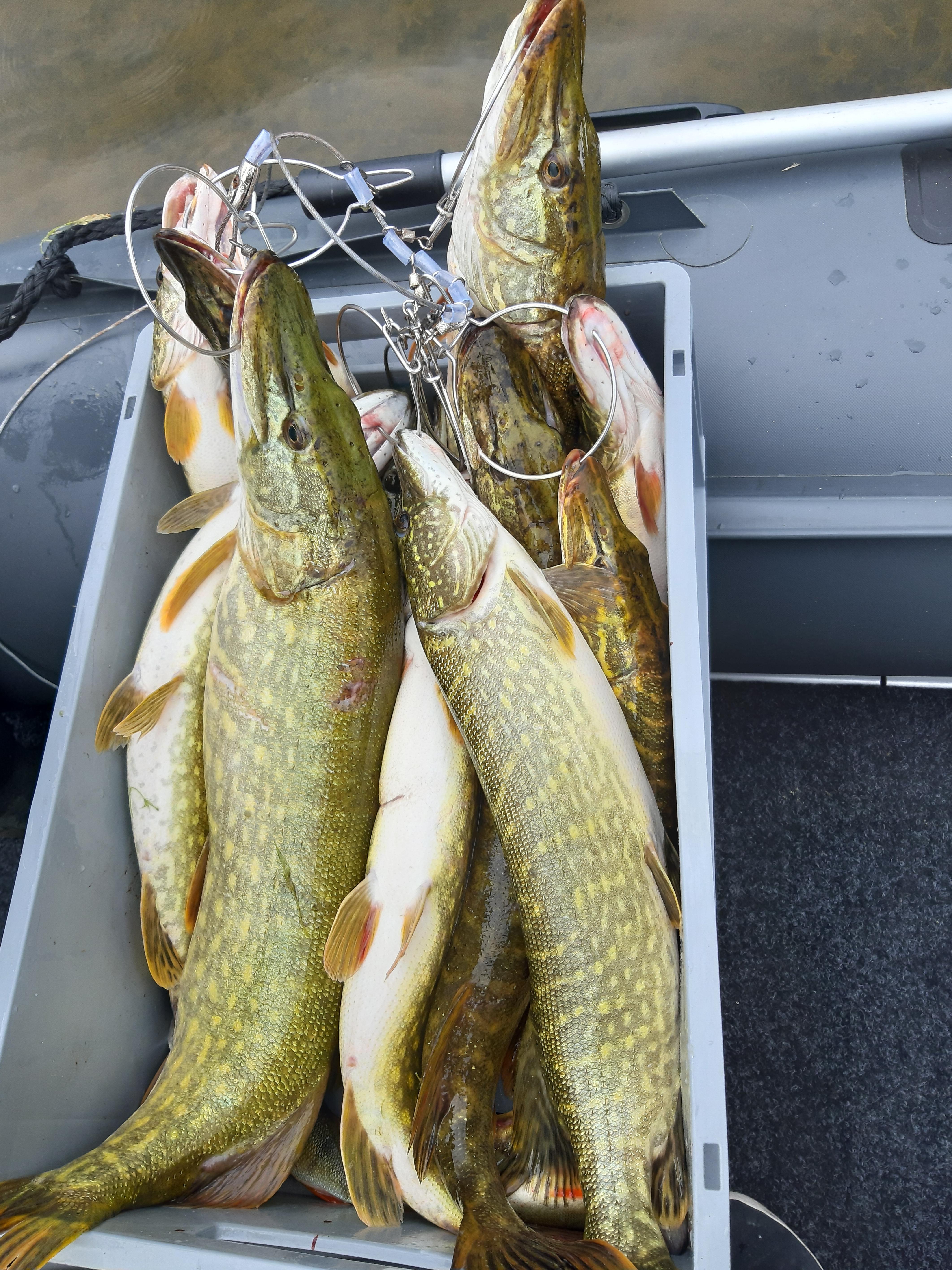 Жадничать Рома не стал. Домой забрал язя и 7 щук : 2 двушки, три полторашки и две из тех, что были более кг, но до полутора не дотягивали.