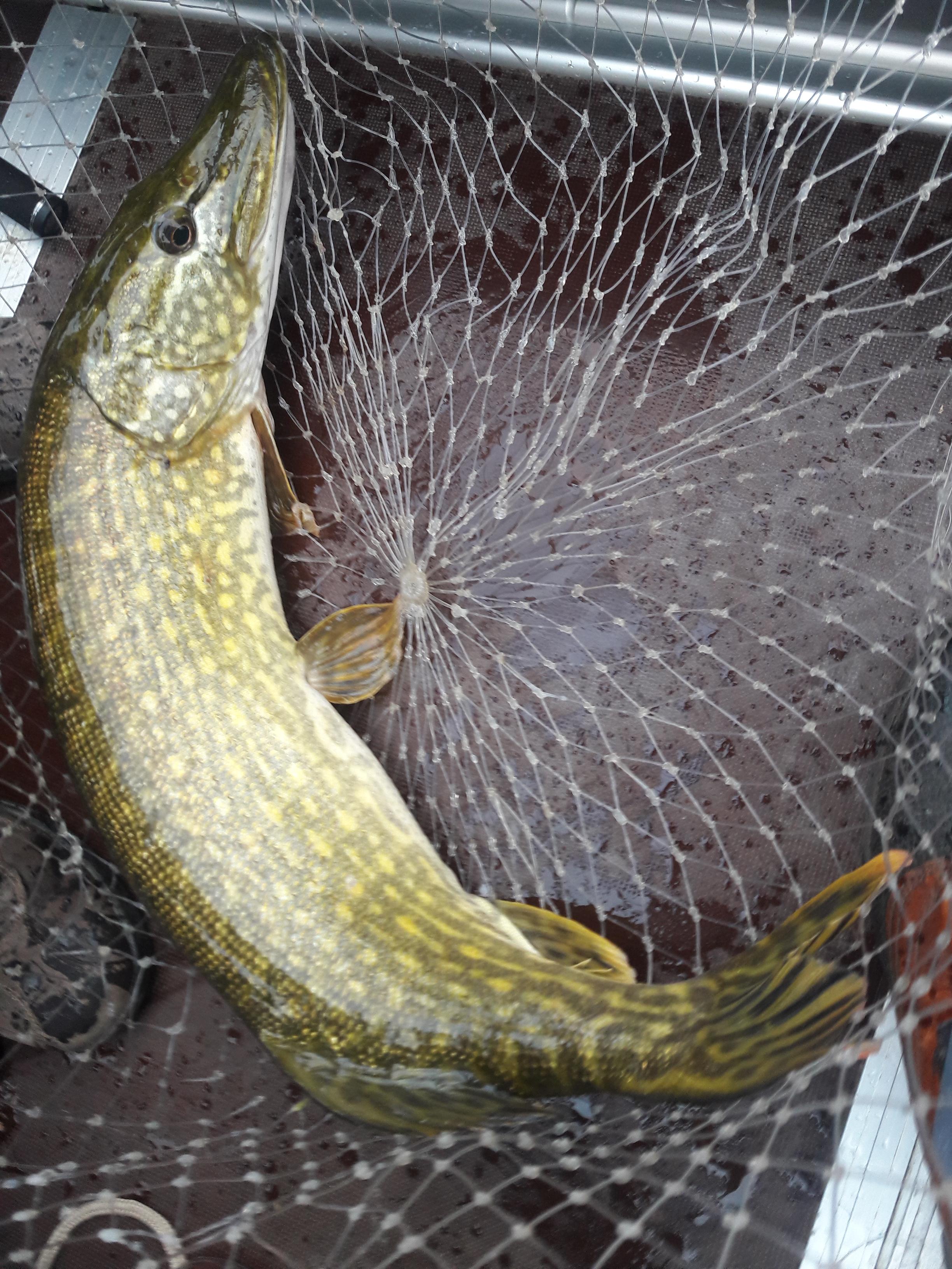 Пока две небольших щучки, два схода рыб покрупнее и вот такой богатырь.
