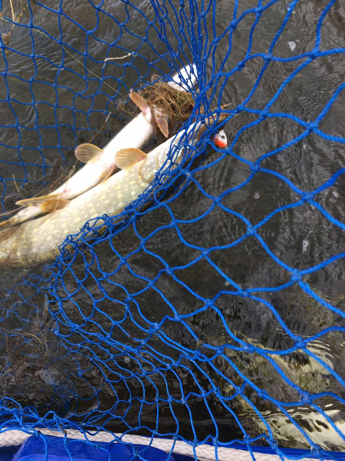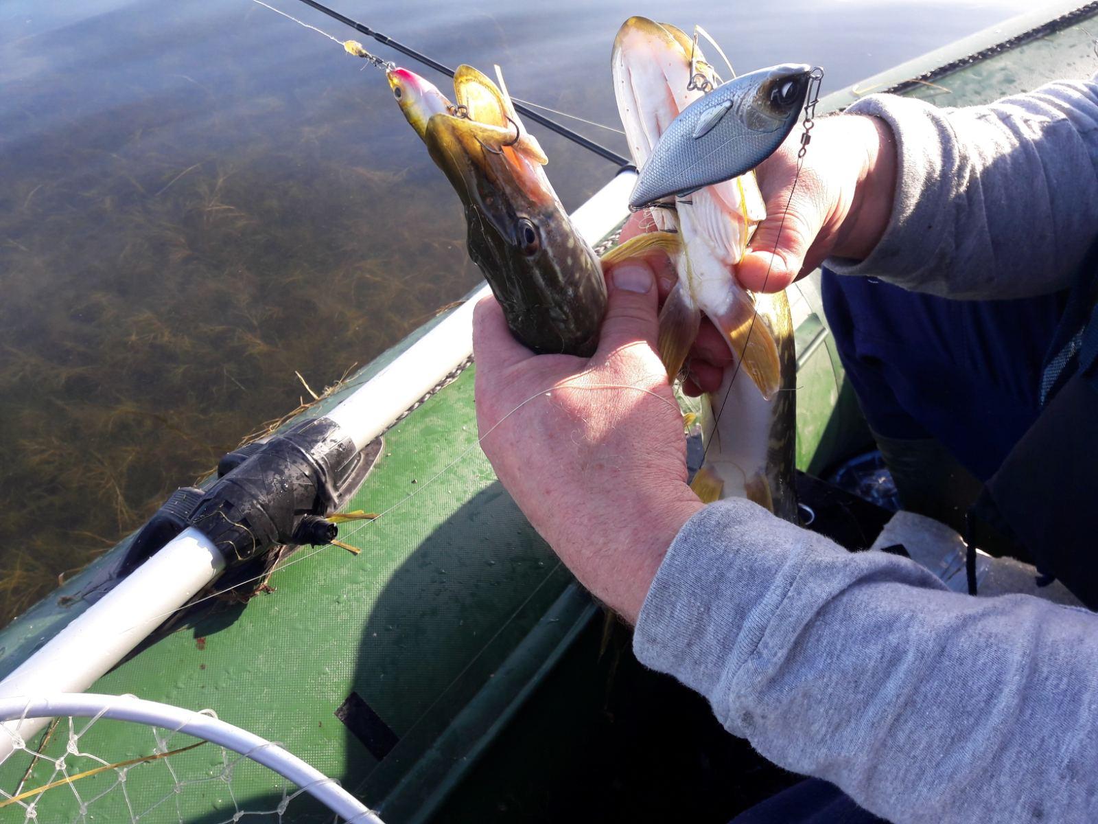 Пытался укрупнить приманку, дабы отсечь мелочь , так эти сукины дети ( щучьи дети ) умудрились на страйкпровский бэбиджерк ВДВОЁМ попасться!