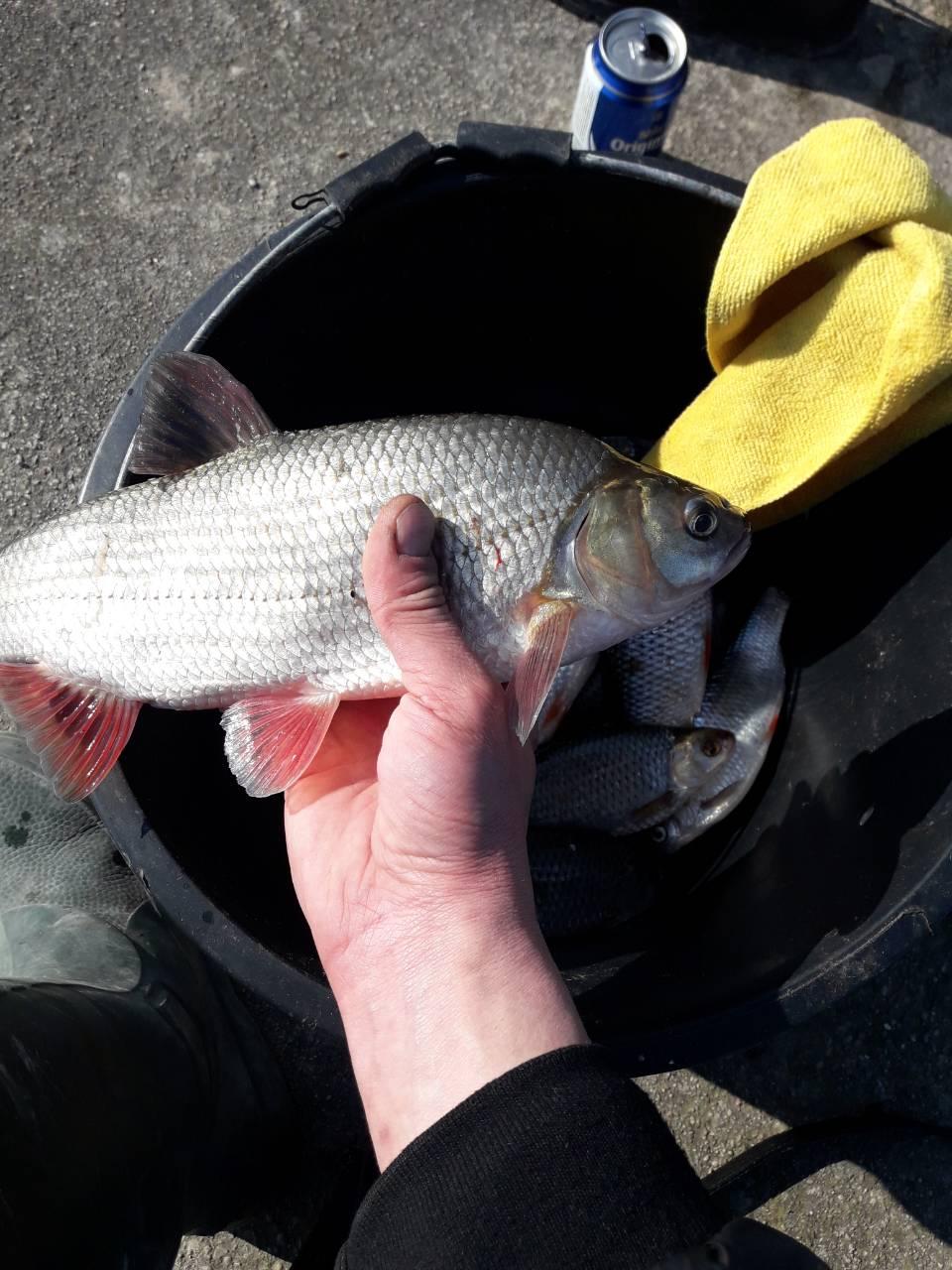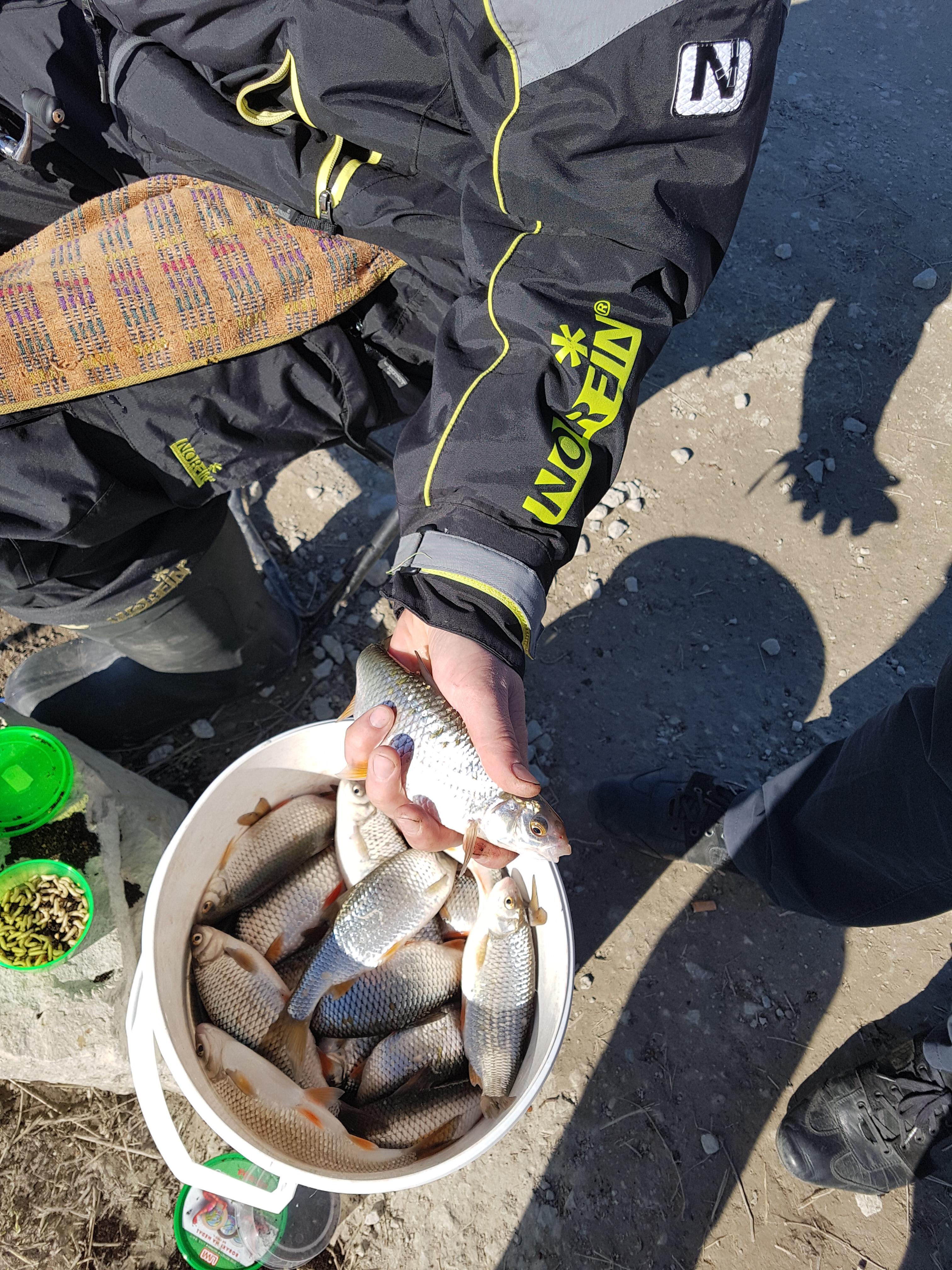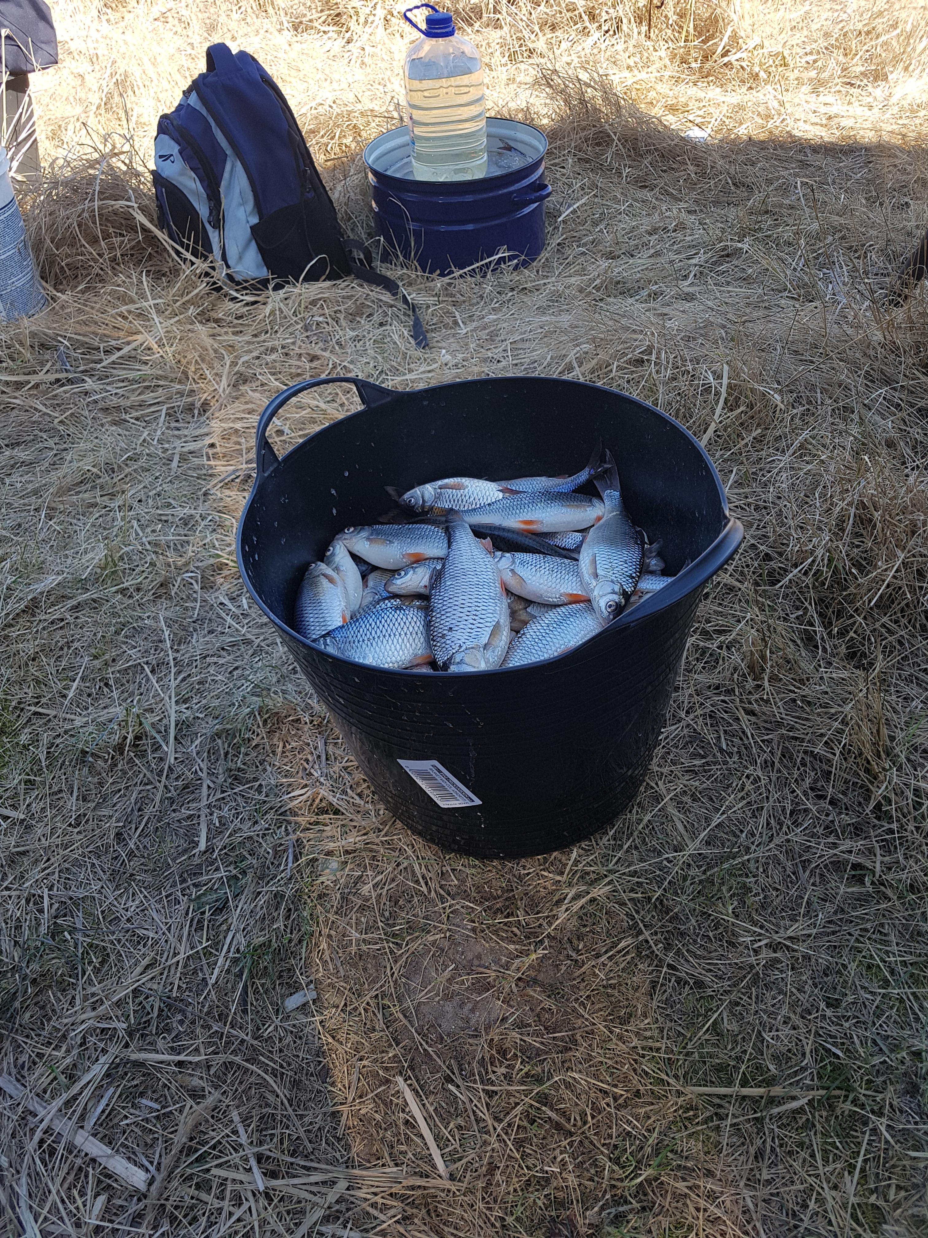Плотва клюёт также исправно,как и в первые дни. Редкий рыбак не набивает за день 25-ти литровое ведро + ещё сколько то.