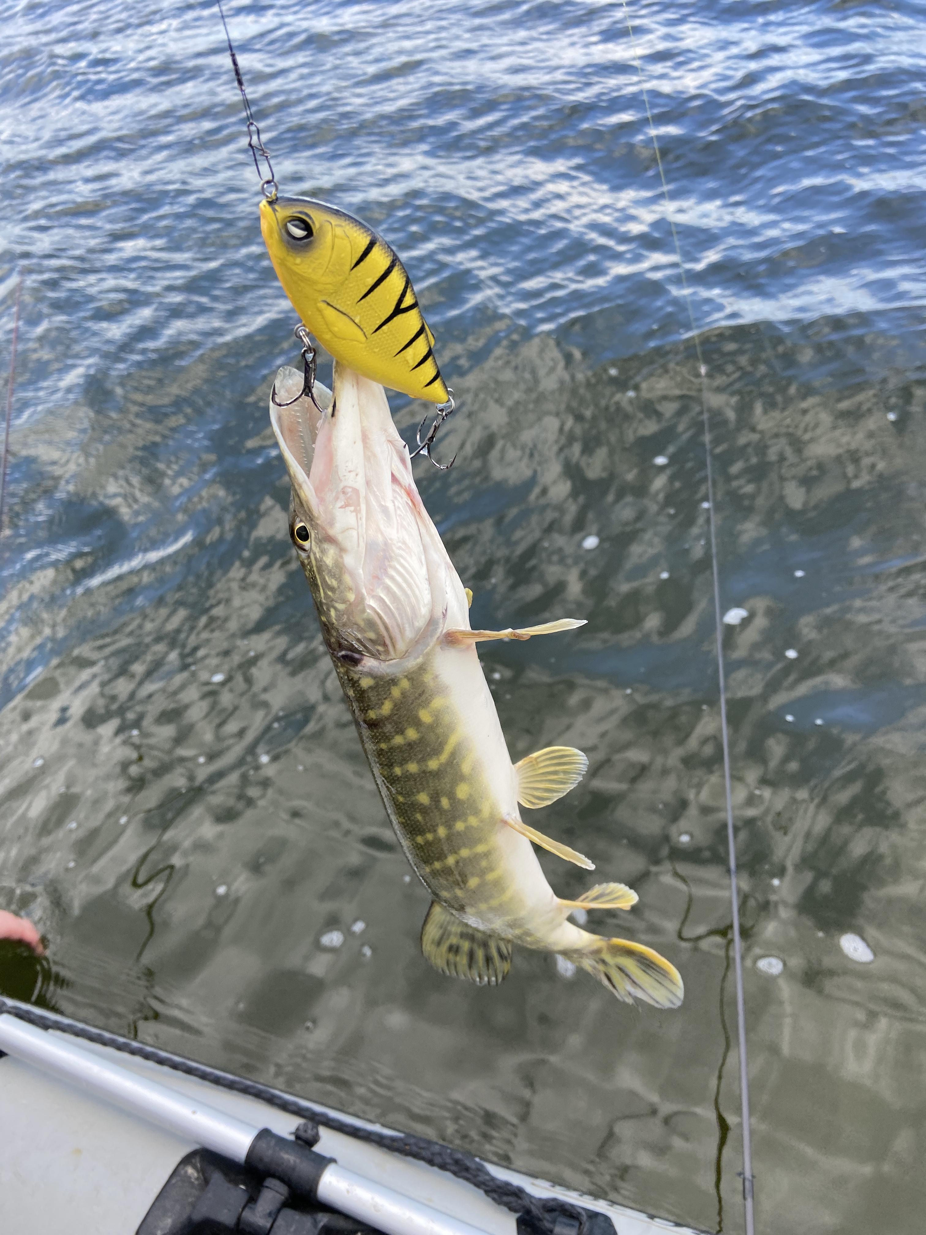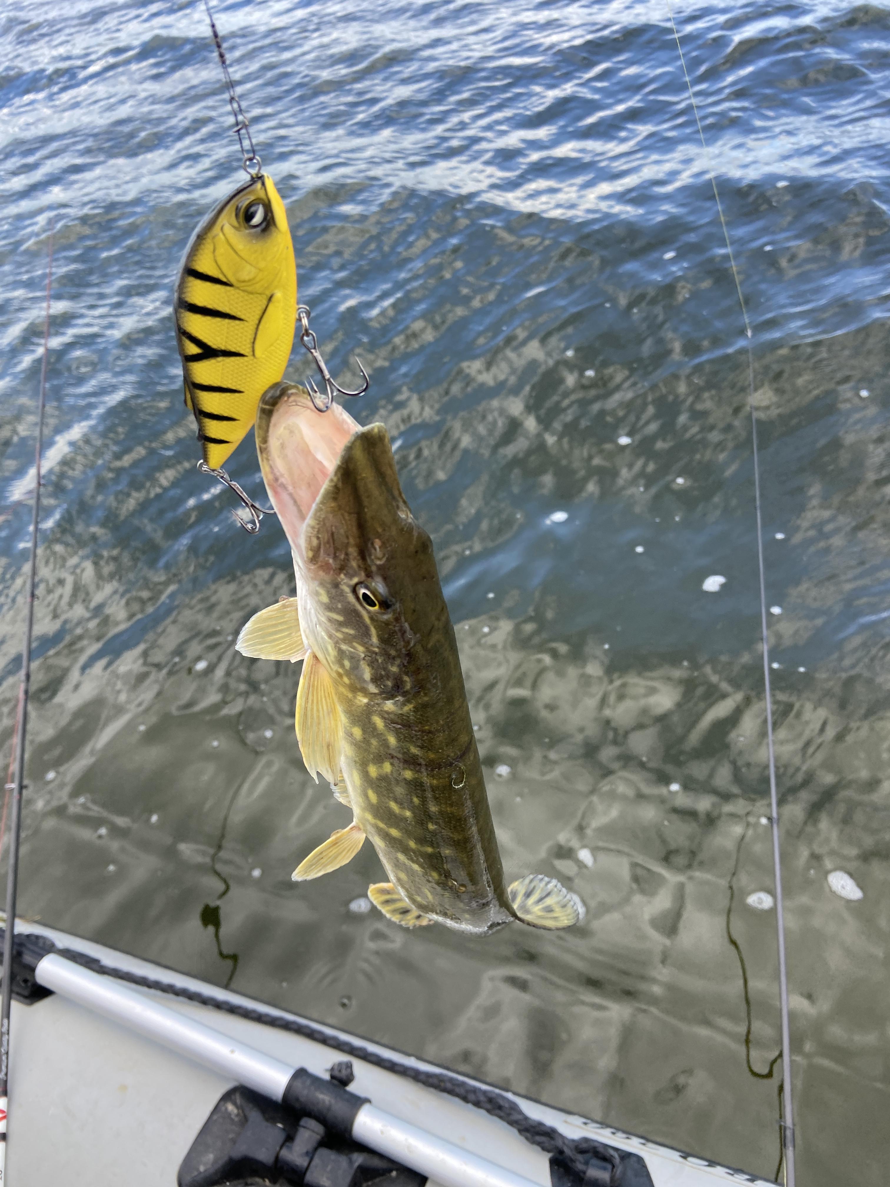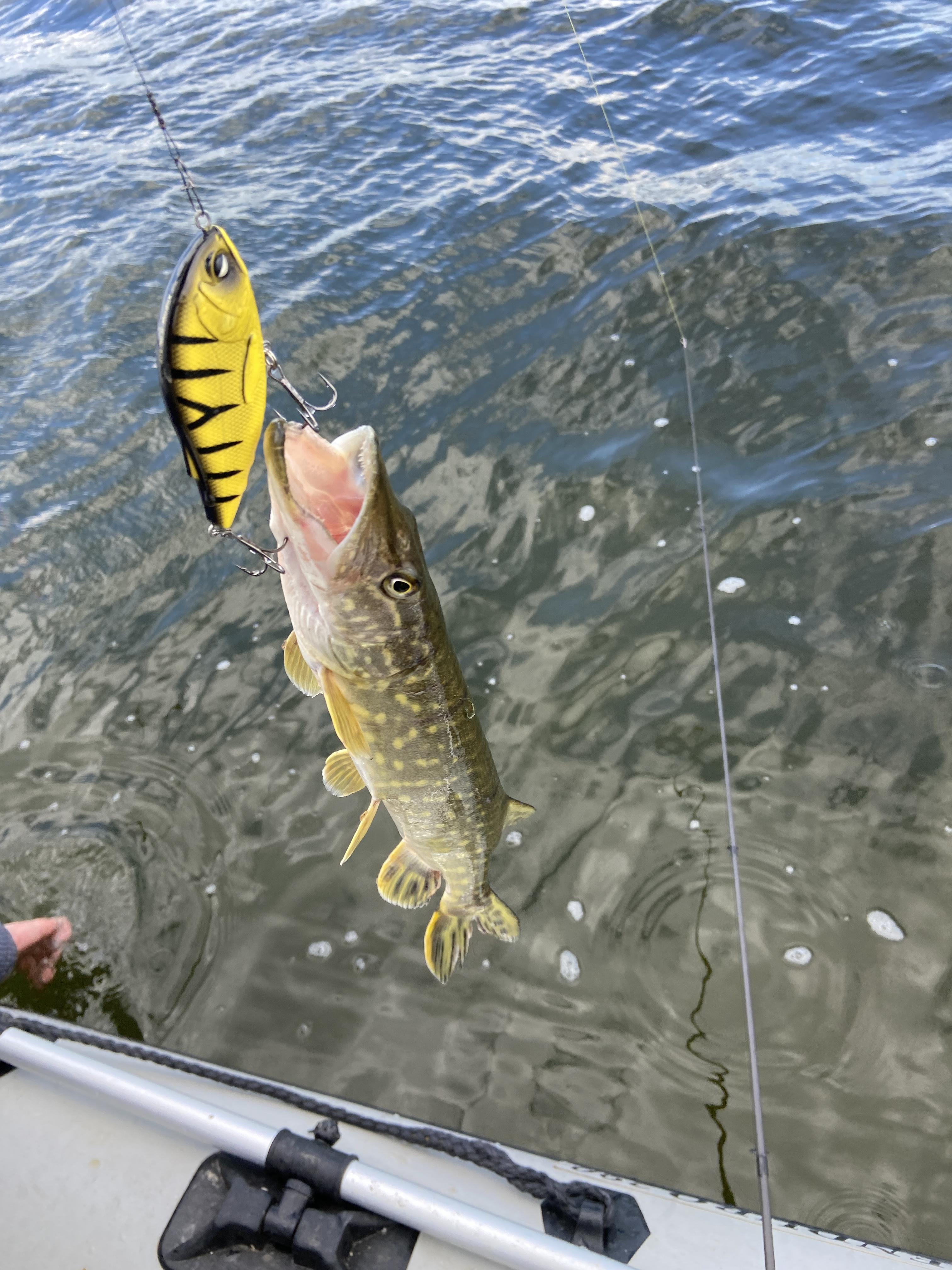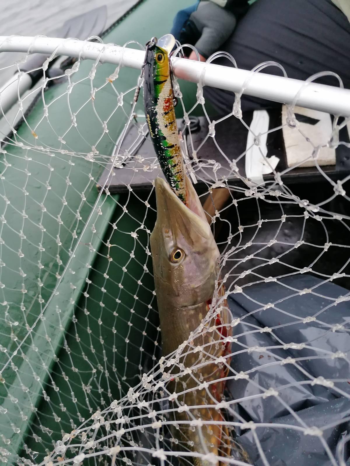 И мой любимый воблер меня не подвёл. Сначала поклёвка и рыба быстра отвертелась, а затем и вторая щука в подсаке.