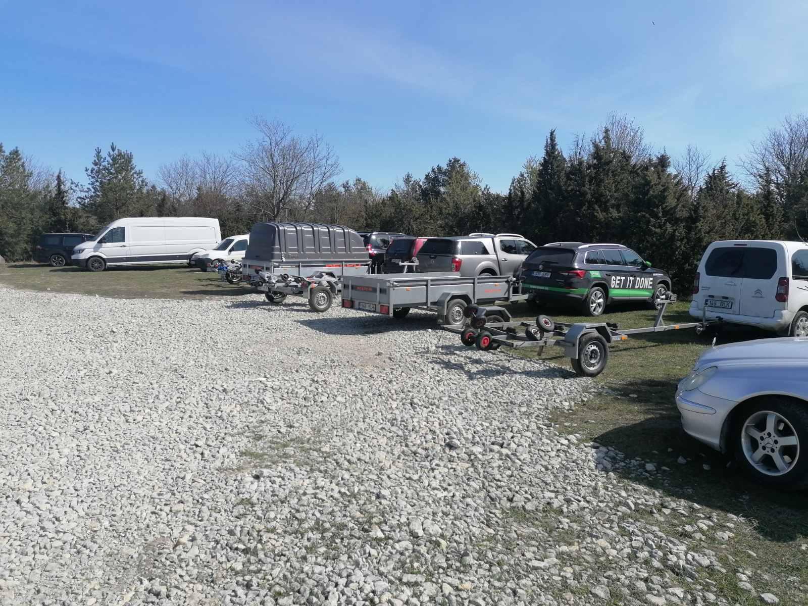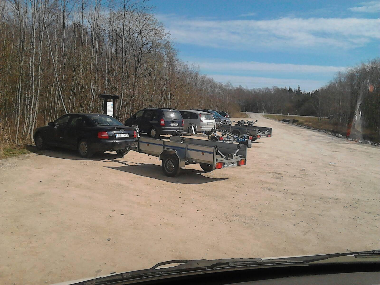 Приезжаем в очередь, а там уже стоит машина с лодкой на прицепе. Оказывается не мы одни на такие авантюры падкие.