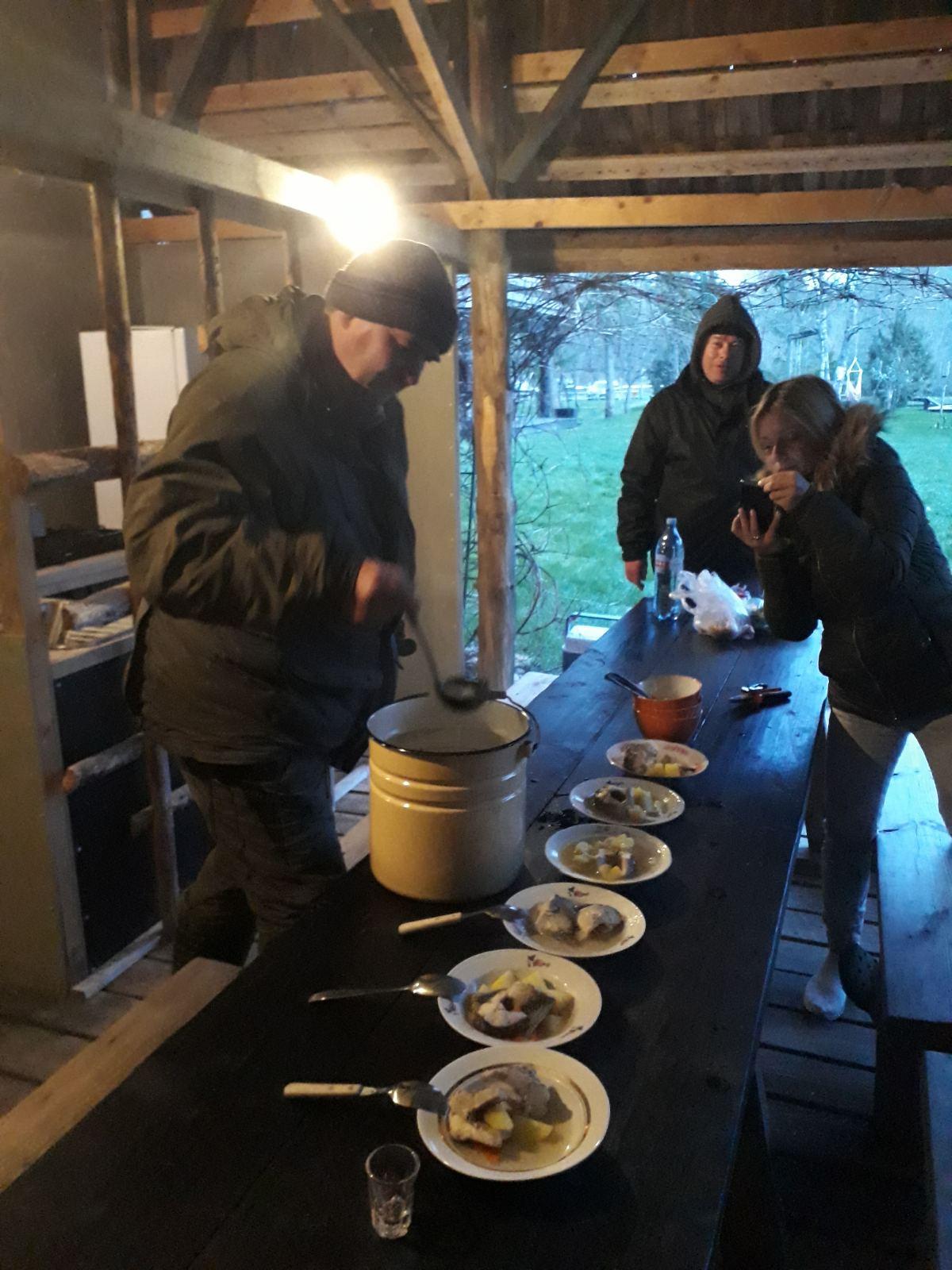 MaksudУчастникВ процессе поглощения блюда было выяснено, что на базе находятся ещё два человека. Это оказались эстонские рыбаки из Рапламаа.
