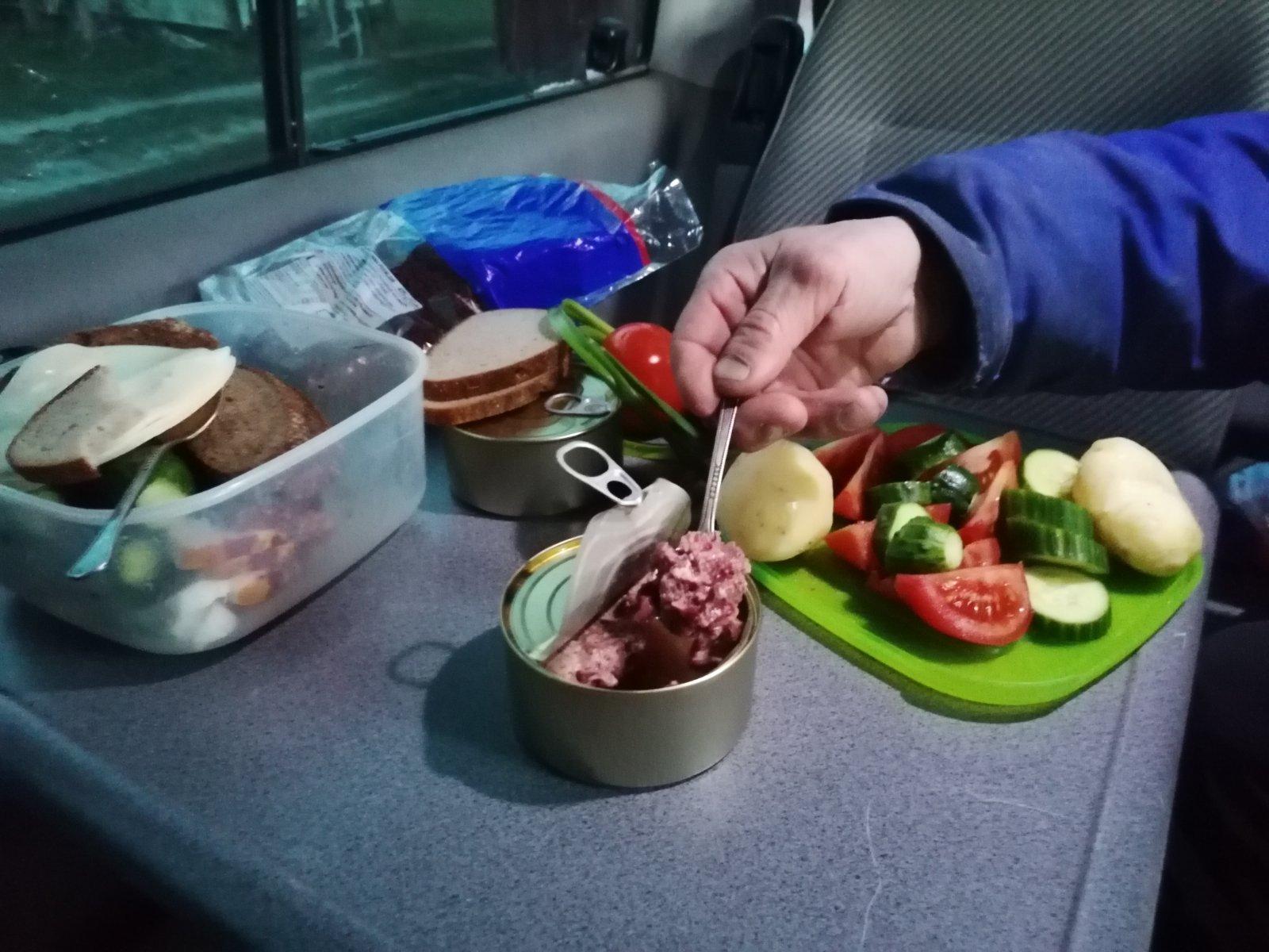 Удивительно, но за 4 часа я неплохо выспался. Кроме первого фактора на это сильно повлияло «царское ложе», которое устроил в своём автомобиле Михаил. Вытянуть ноги и спать в полный рост в свободной лёгкой одежде — мечта любого рыбака.