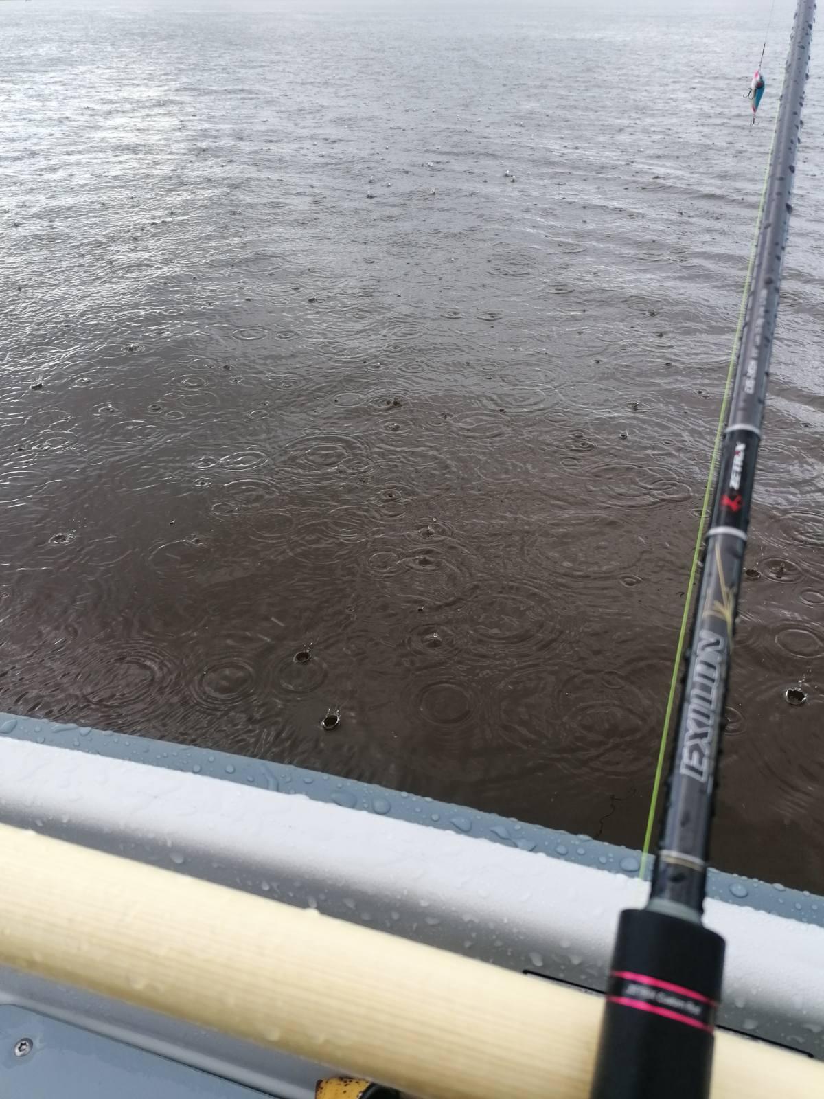 MaksudУчастникНе смотря на проливной дождь, мы с Сашей продолжали ловить. Даже мысли ни у кого не возникло выйти на берег и спрятаться у «мамы под юбкой». К тому же, была надежда, что хоть в непогоду рыба активизируется.