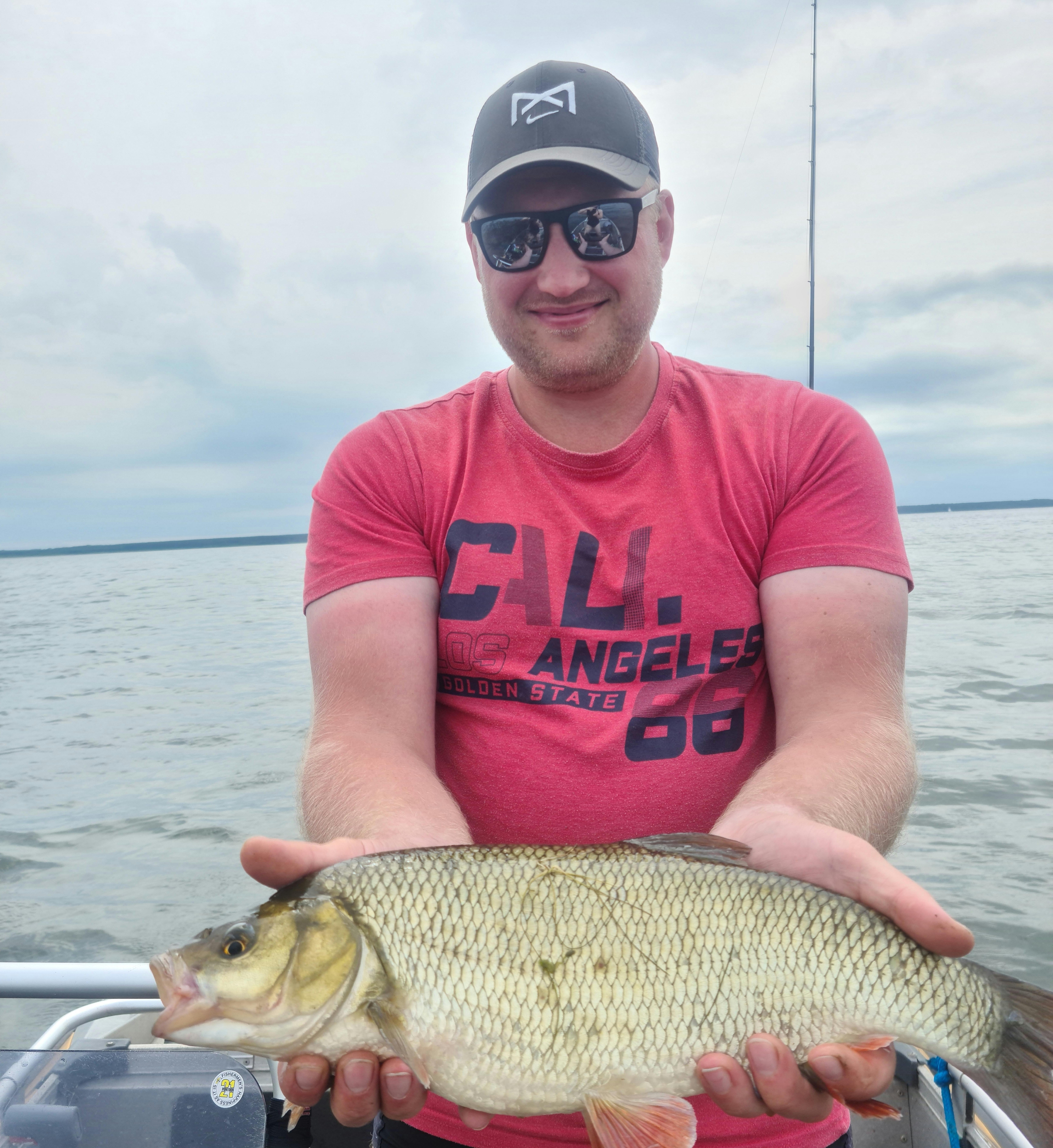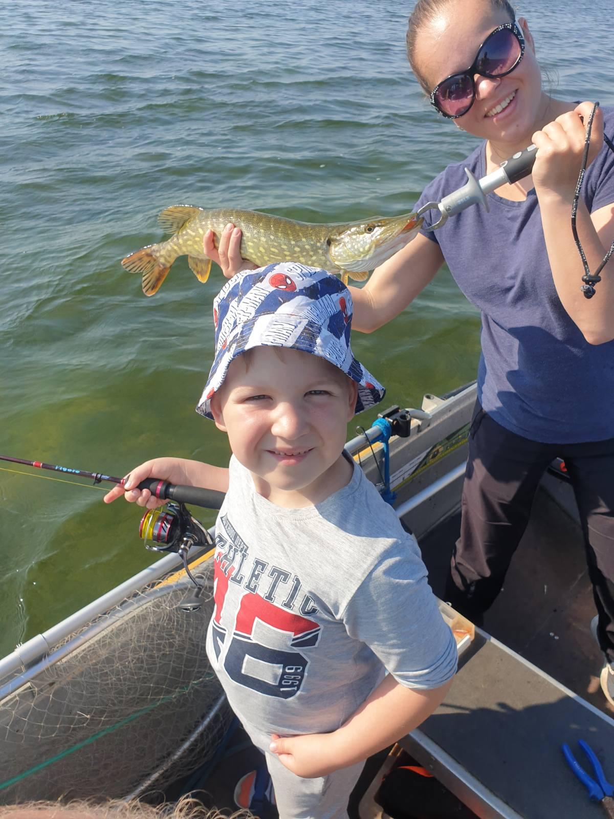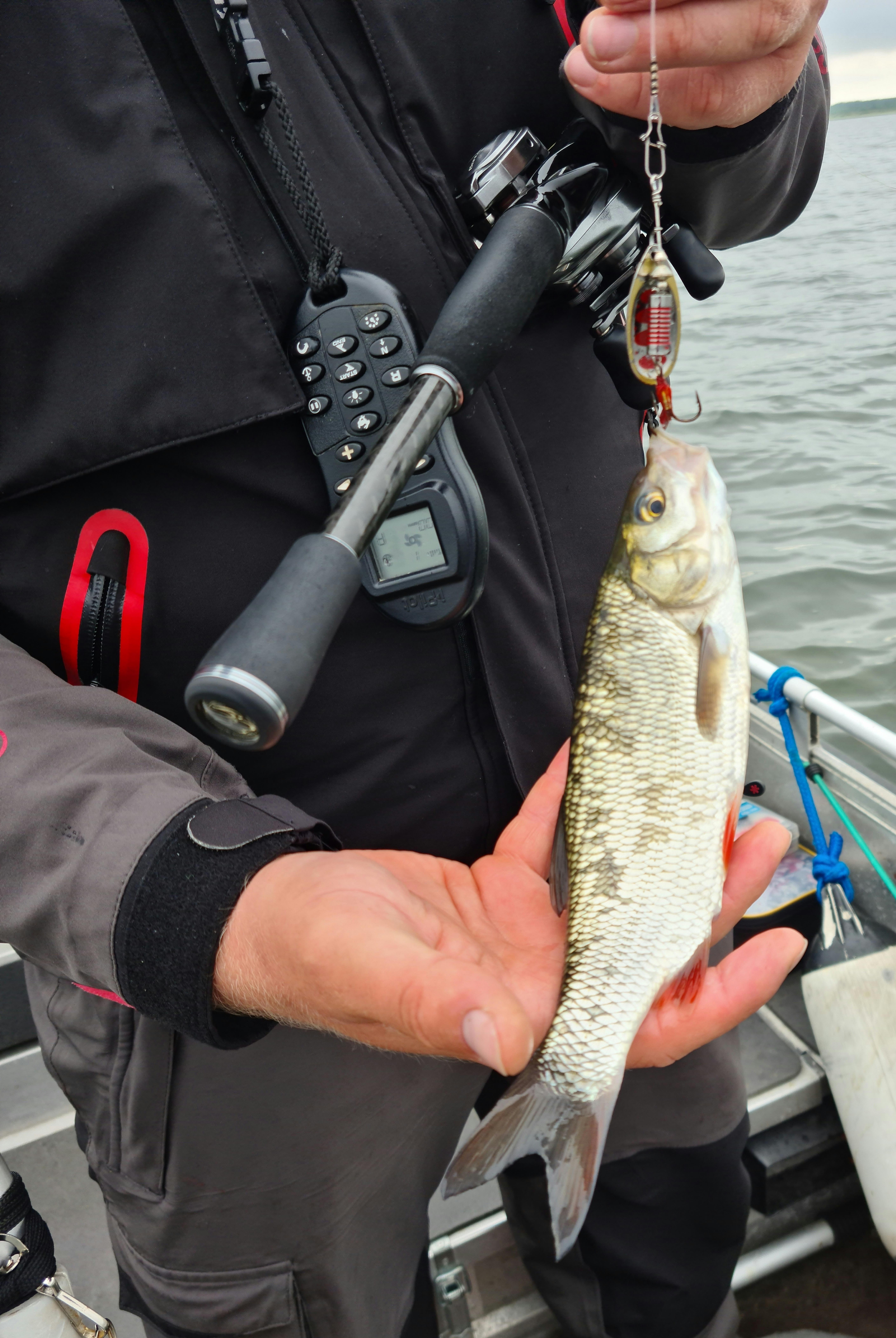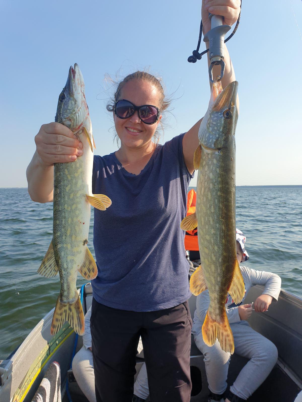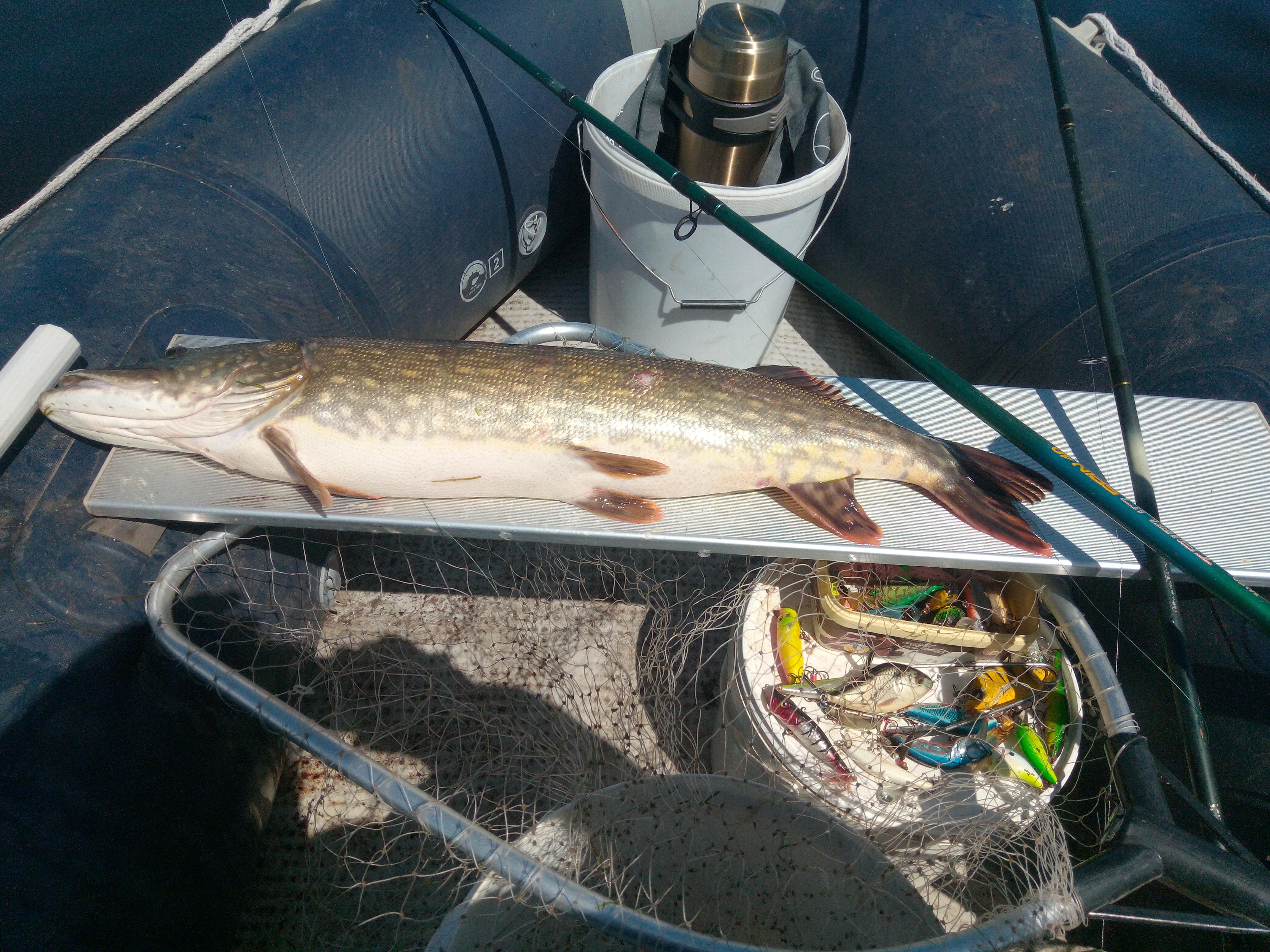 Пришли на точку. Рыба щиплет приманки, бегает за блесной, но не берёт. На меляке вообще всё вымерло. Несколько штук кило плюс мы отпустили, так как затачивались на более крупную рыбу. Но по мере нагревания всего вокруг клёв становился всё слабее и слабее. Да и самого клёва можно сказать не было: за блесной приходило аж по две щуки за раз, просто интересовались. Лодки не боялись вообще, но и приманку не брали.