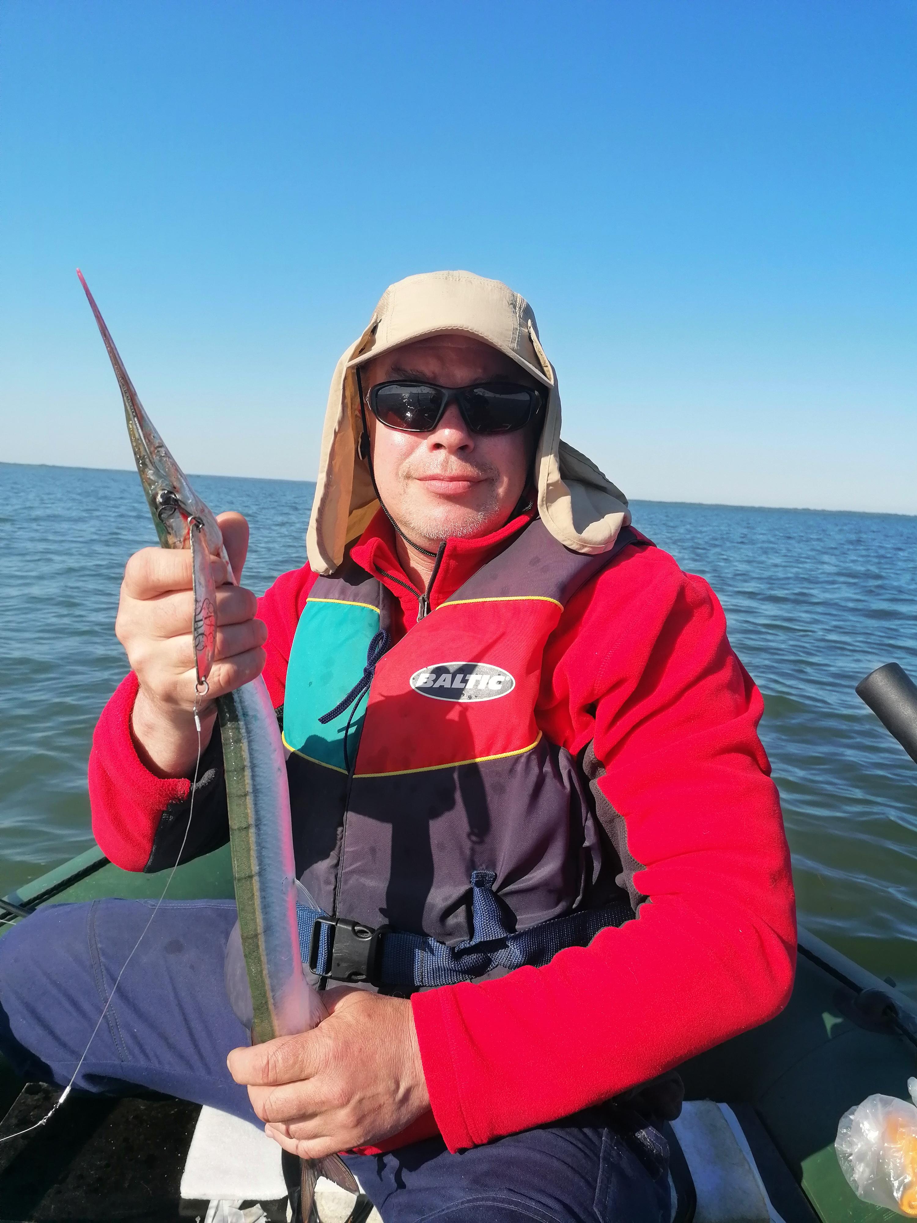 Но на воде что то делалось…. Кто то там в стороне прыгнет, с другого края буруны пойдут странные. Я предположил, что подошёл сарган, и пока я строил свои догадки, Алексей, не долго думая, взял одного чисто за глаз.