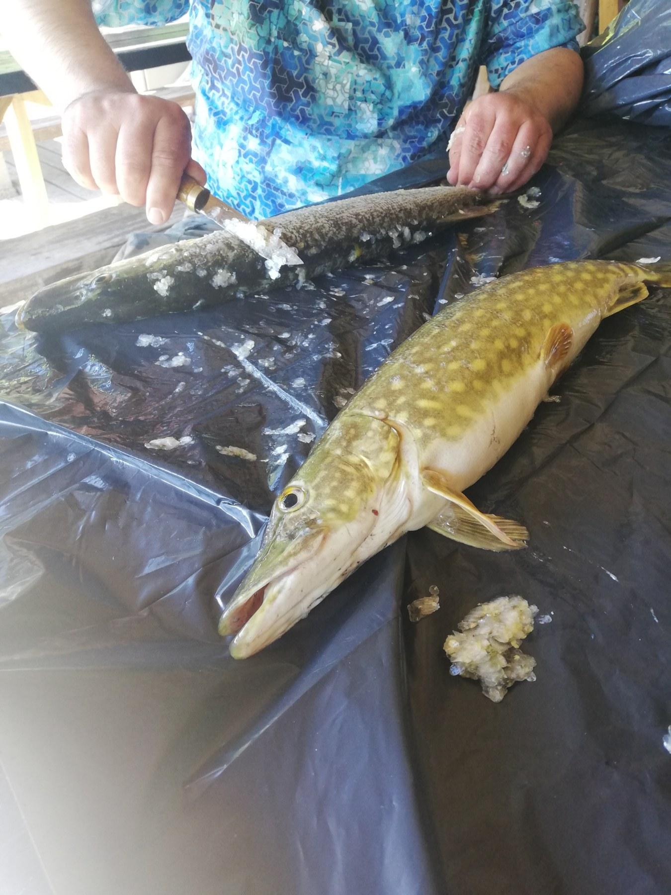 Приняли решение, что всё таки надо взять несколько штук покрупнее. Только мы это подумали и расчехлили куканы,как клёв вырубило. Не было больше многочисленных сопровождений и пощипывания приманок.С трудом взяли несколько штук и решили, что лучше поедем на базу кормить комаров, чем жариться на ярчайшем агрессивном солнце, как яичница на сковородке.На базе почистили рыбу, всю её отдали хозяевам, совместили поздний обед с ранним ужином , вдоволь накормили и напоили комаров кровушкой столичных жителей и очень рано легли спать.