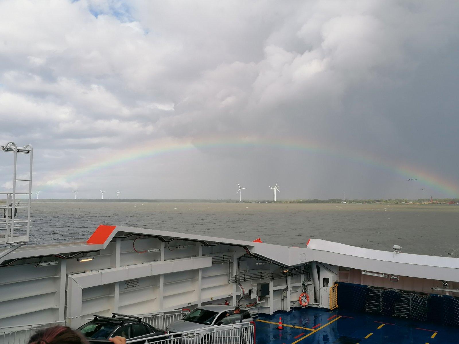 В любом случае, те, кто будут по этой дороге во время дождя куда то спешить ( на паром или к началу соревнований ), БУДЬТЕ ВНИМАТЕЛЬНЫ И АККУРАТНЫ!!!!Ну а на самом пароме нас встретила ПОЛНАЯ радуга.)