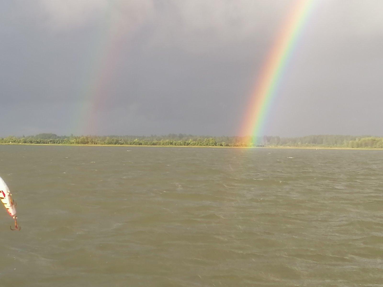 Ветер гораздо меньше, но в остальном всё так же: 2 якоря не держат, периодически поливает дождь, рыба фиговничает, проявлять себя не хочет.