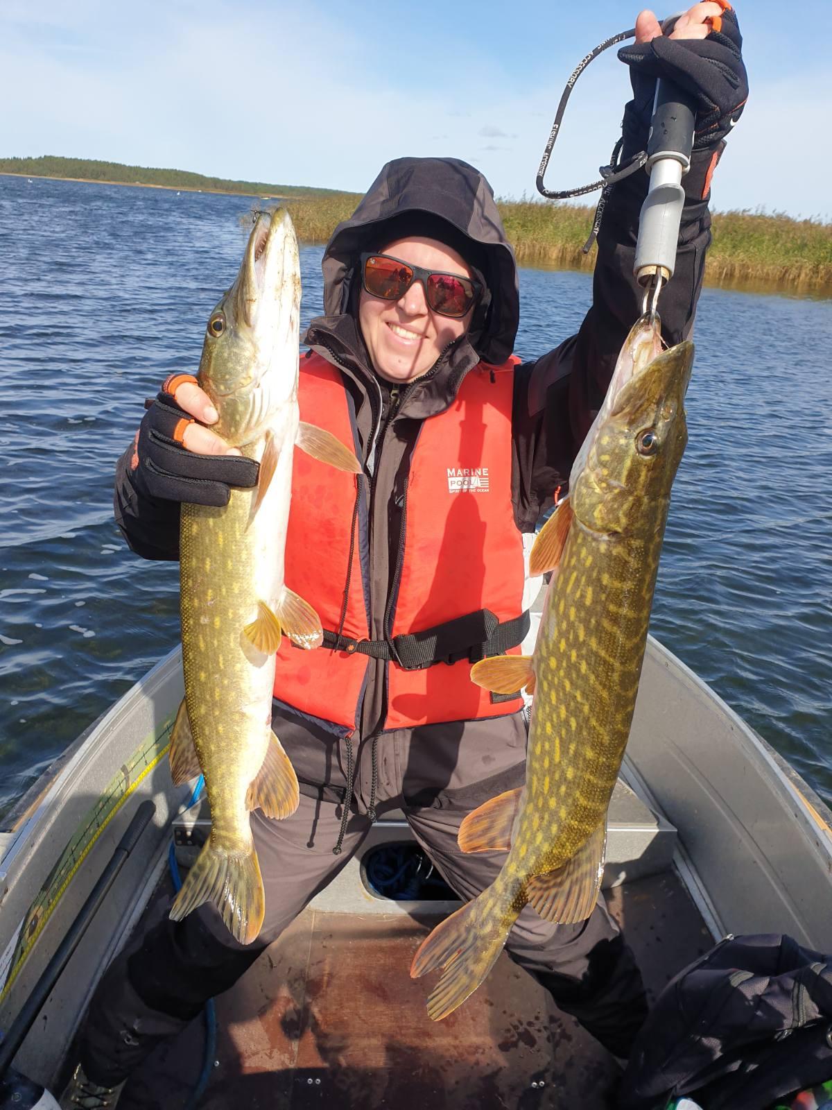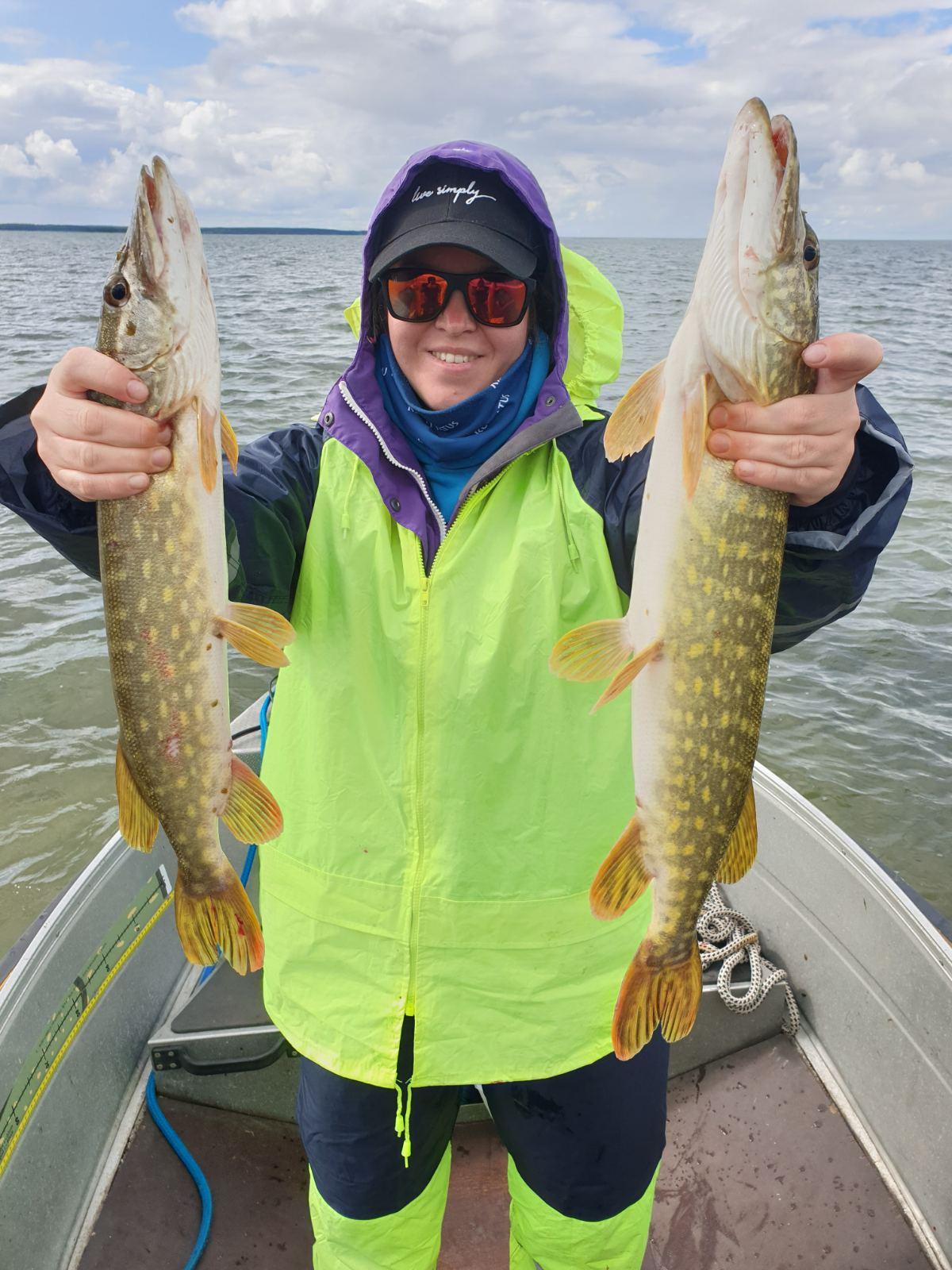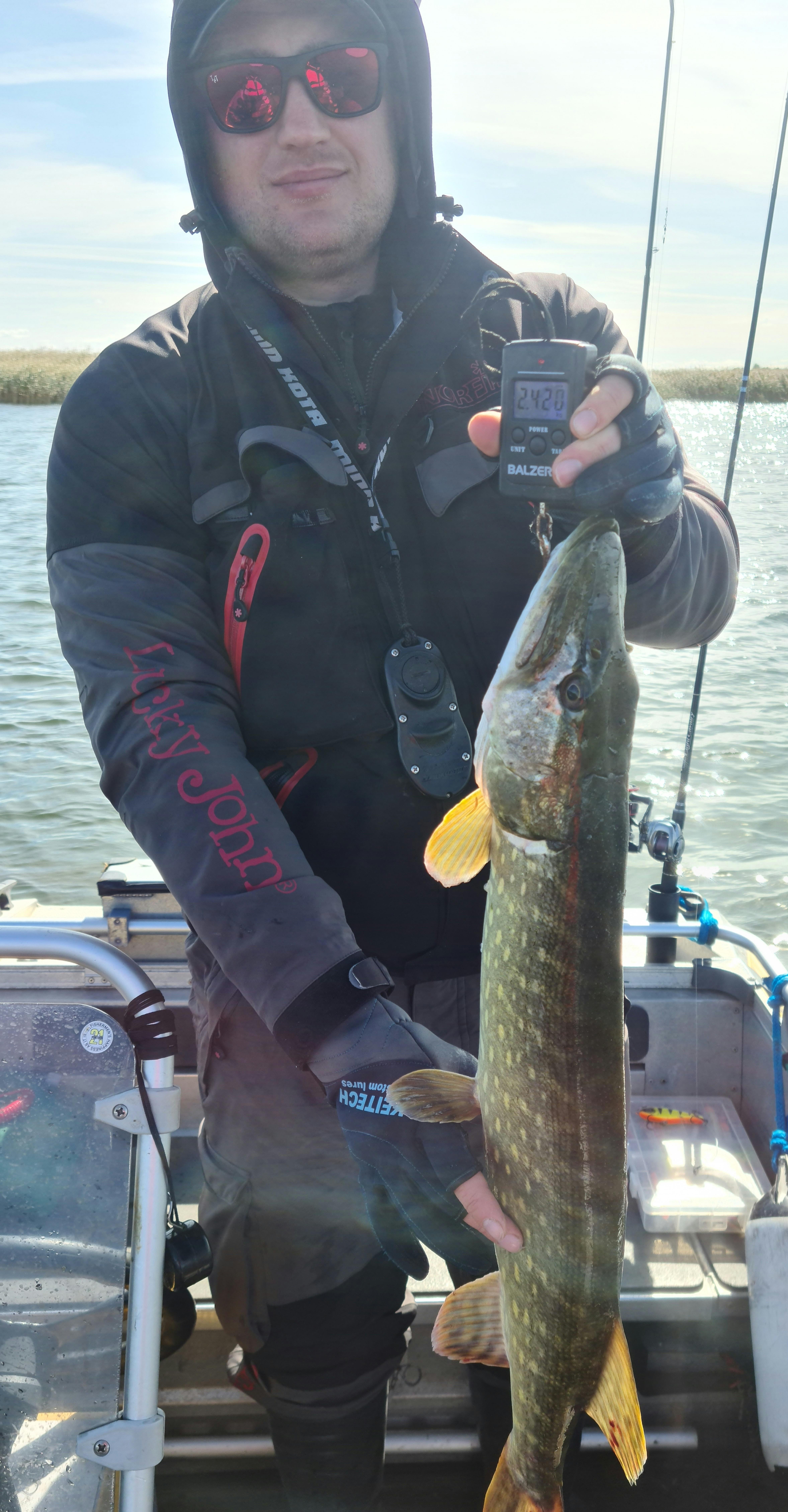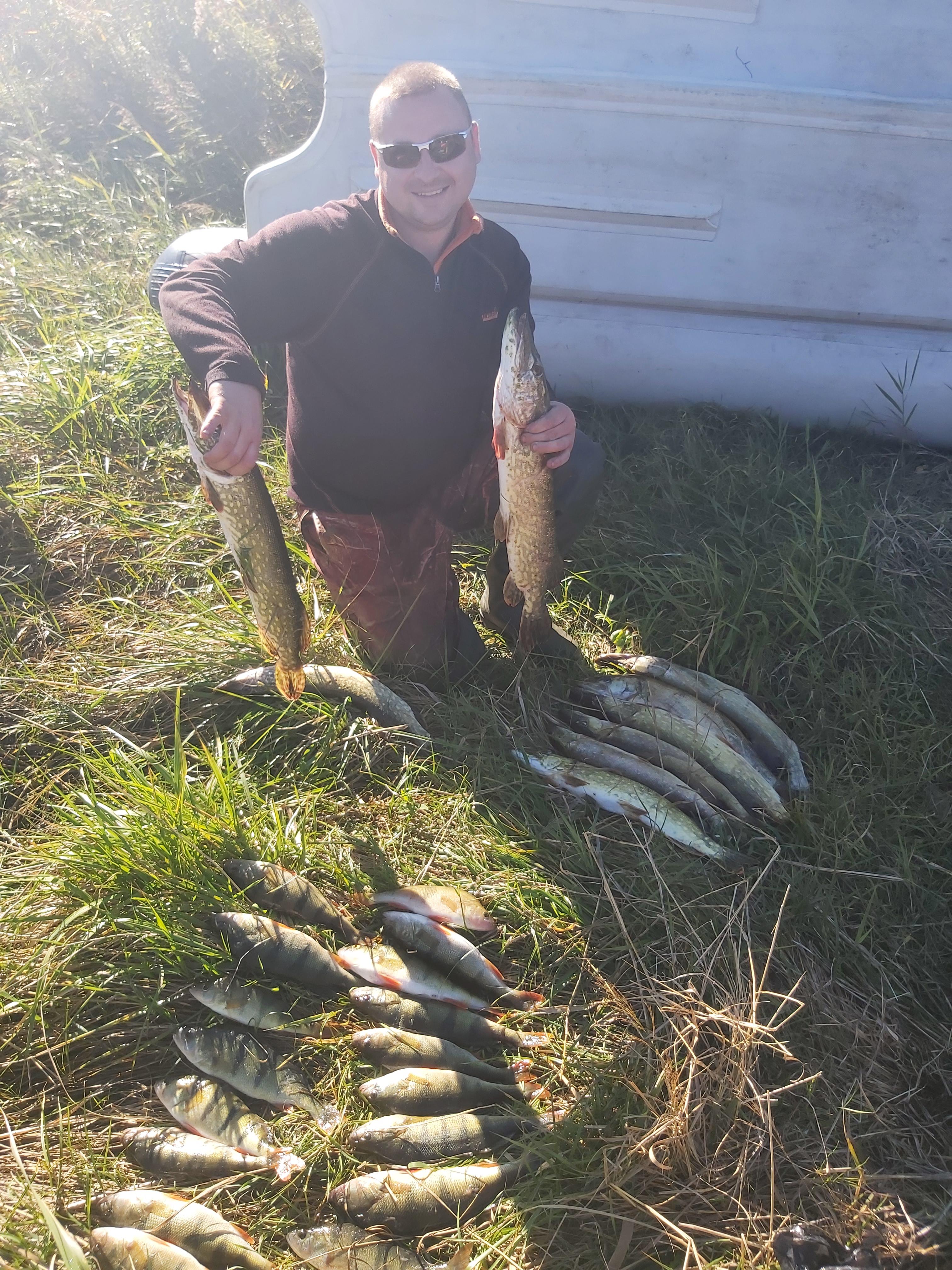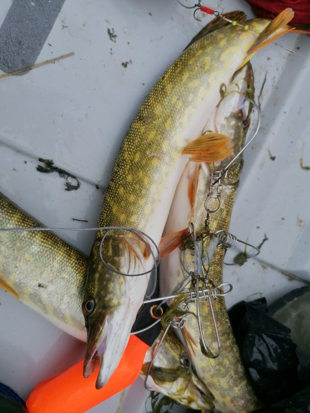 Вечер принёс Анатолию и его напарнику по 2 щучки, а в 11 часов следующего утра оба были уже на берегу: у одного 5, у другого 3 шт. Рыба «стандартная , 1,3 — 1,6кг. Трёшек и крупнее не было.