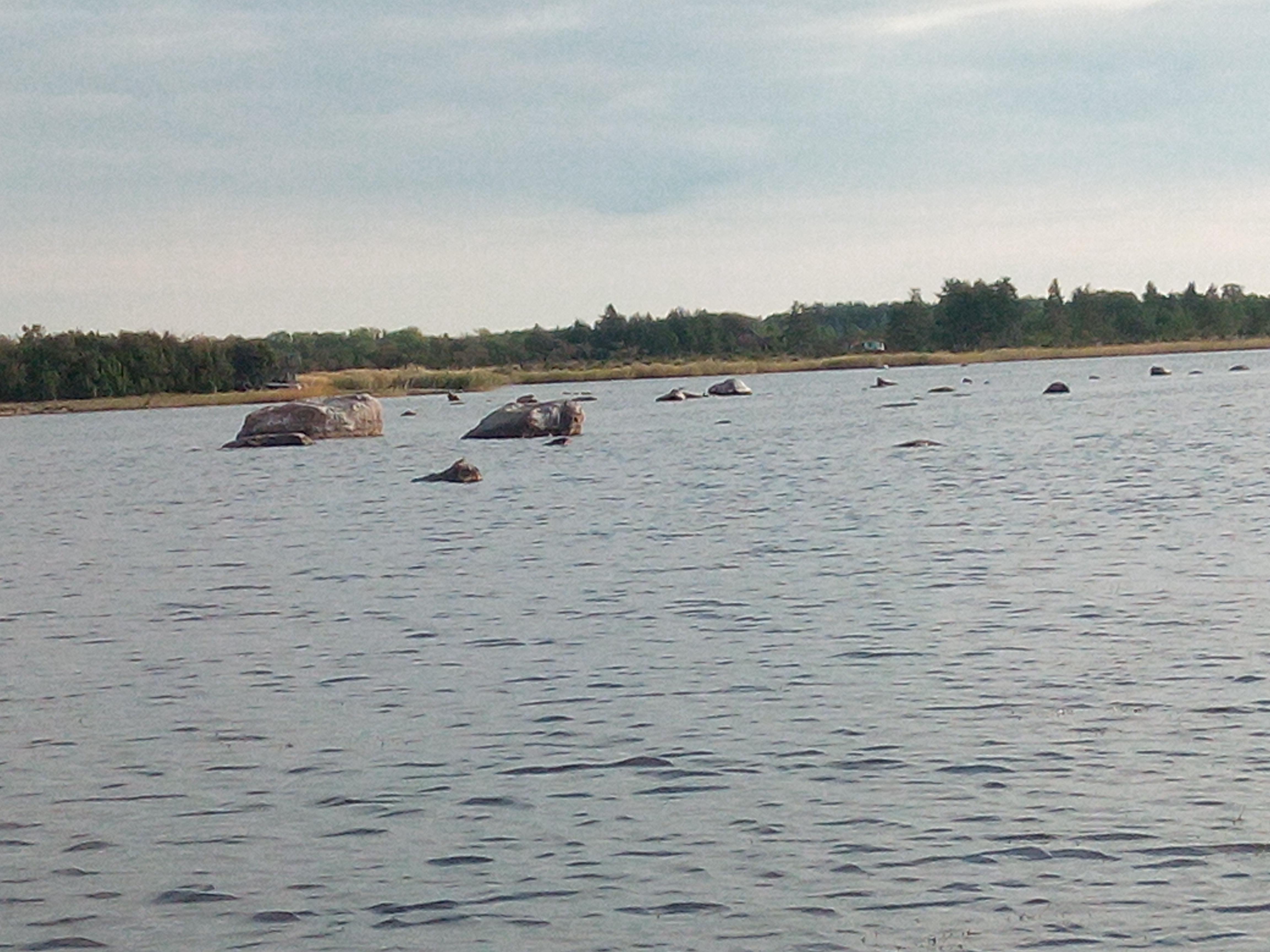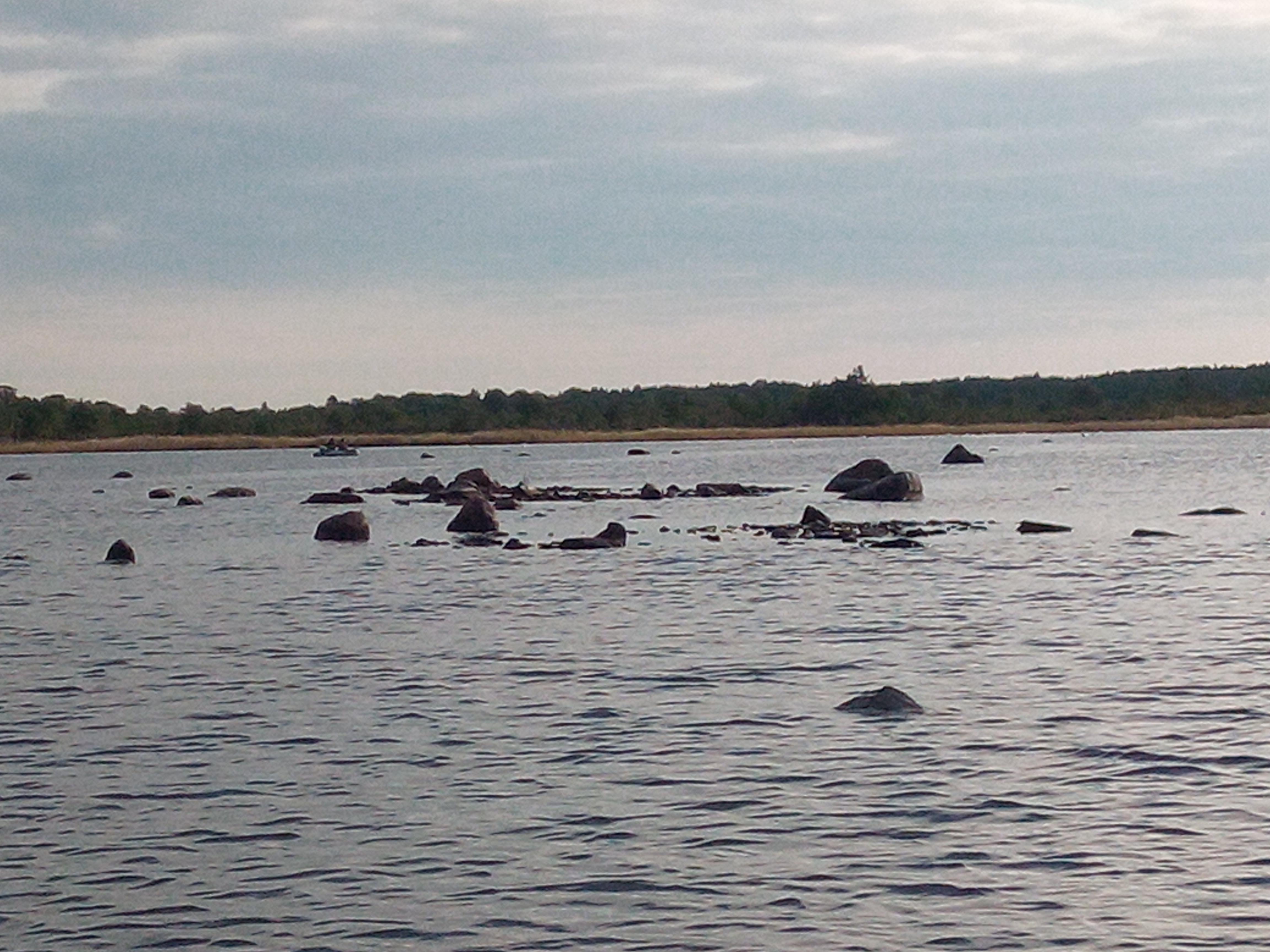 karpuha3УчастникВсем привет . В воскресенье приехали ребята и я с Насвы поехал к ним на мыс Саарекюла . Уровень воды был в норме но резко стал падать . Пройти с мыса в залив можно было с трудом камни . Перепробовали ловить везде по заливу и на всё но так ничего и не взяли . В понедельник ещё хуже стало . Там где проходили в воскресенье уже было не пройти или вылазь и тащи лодку или ищи проход . И снова опробовали всё и везде . Вода мутная и много травы . Взяли несколько шнурков и утопили . В итоге у меня одна полторашка и один средний окунь у ребят кроме шнурков ничего . Хорошо погода не подвела была хорошая отдохнули нормально . На заливе сейчас вот так . Покамню видно на сколько ушла вода .