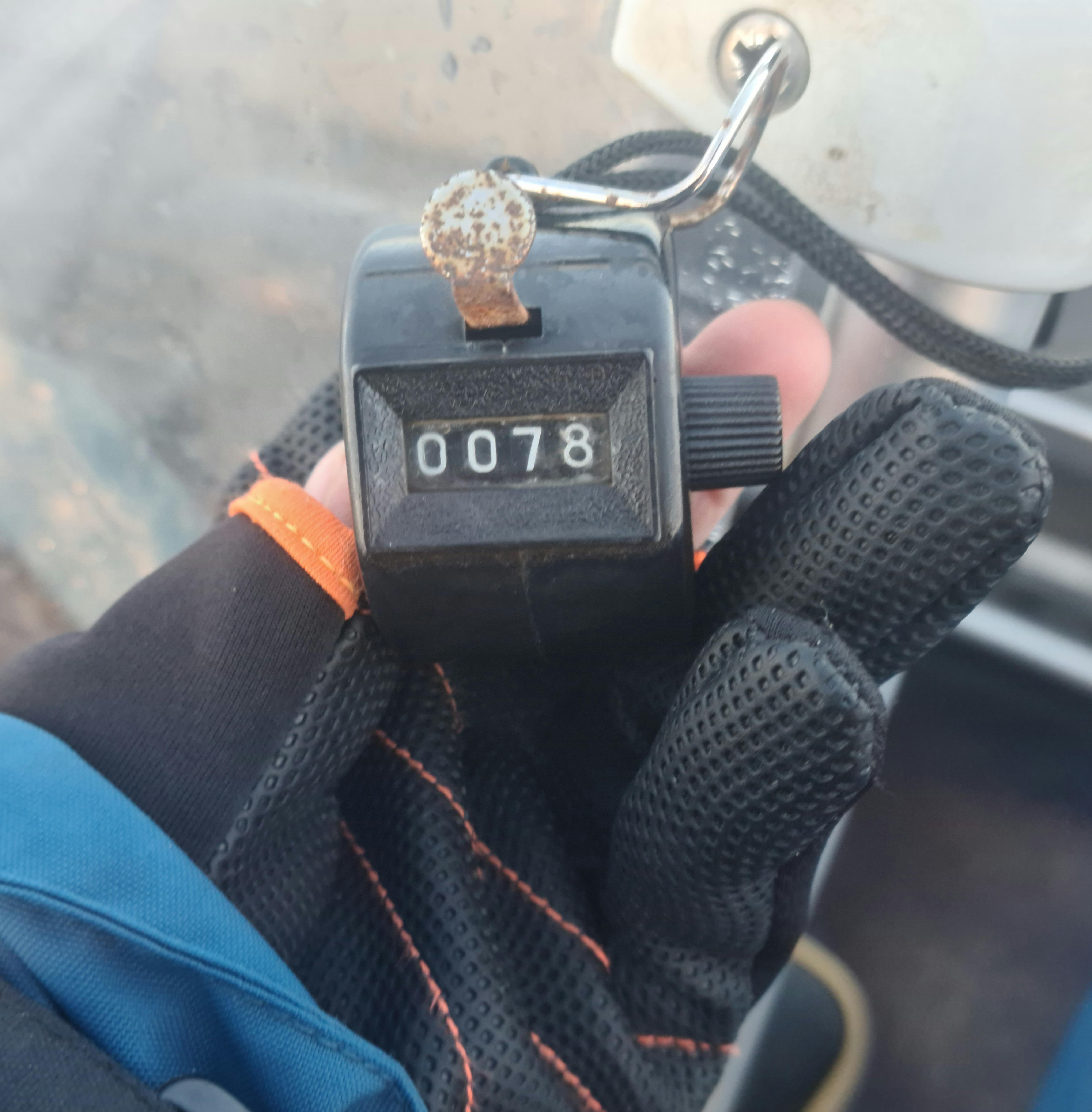 Дошли до мест лова сравнительно быстро. Первая постановка, ничего. Вторая тоже. На третьей дело понеслось. Дуплеты, иногда триплеты. Размер тоже хороший, вся рыба от 1,5+ килошек почти нет, но и крупнее 2,7 тоже не было. Много 2-2,5кг. Нормы взяли быстро, остальное конечно же отпускалось. Раздача продолжалась часа 3, потом выглянуло солнышко и поклёвки пошли холостые. Тучка приходит — опять кусать начинает. Приманки натуральных цветов работали лучше, железо молчало. Силикон тоже работал, но хуже.