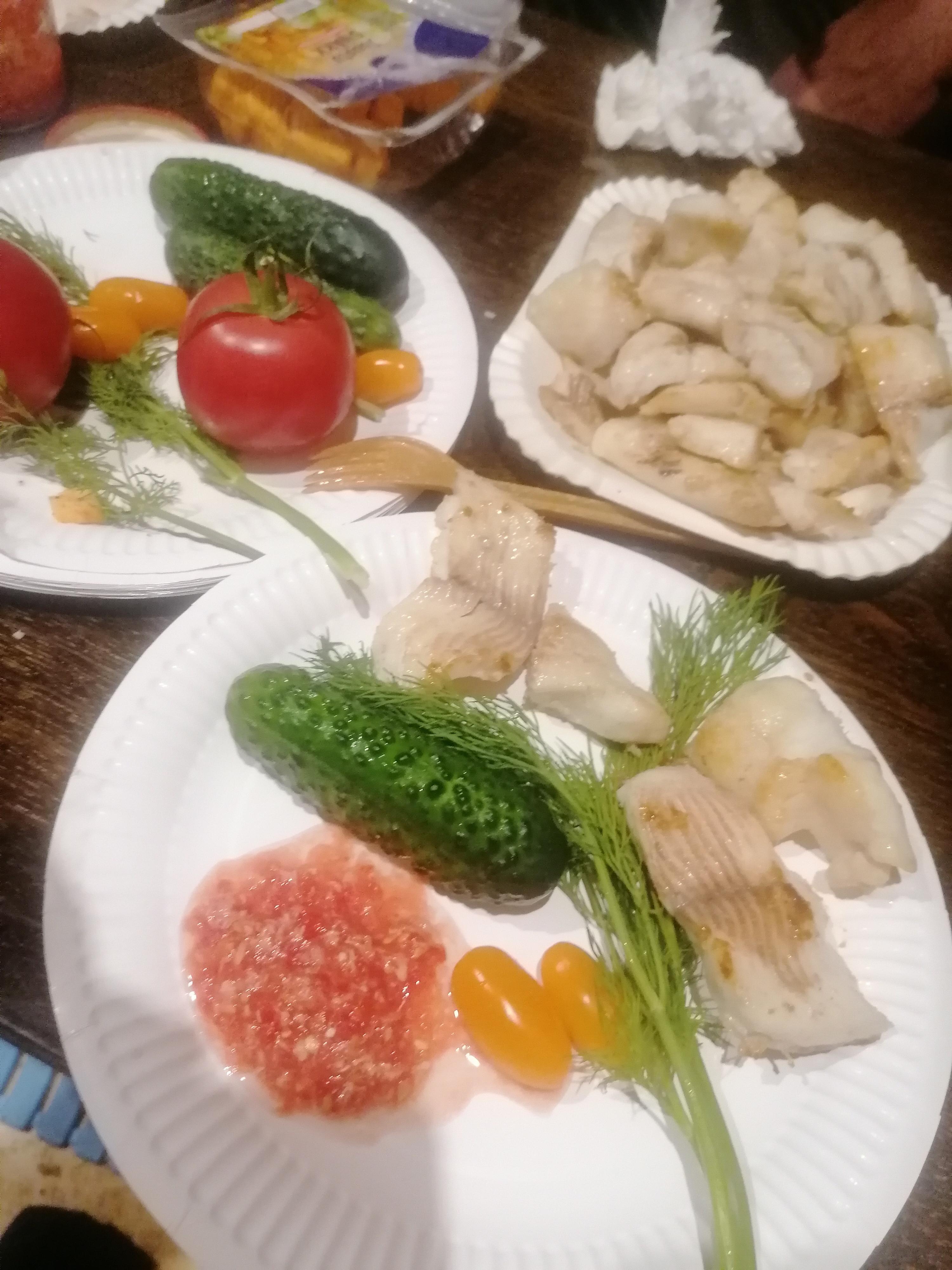 Пока ребята разбирались с вещами, я быстренько пожарил рыбу. «Быстренько» — это первые четыре сковородки, затем пошло дольше. ))