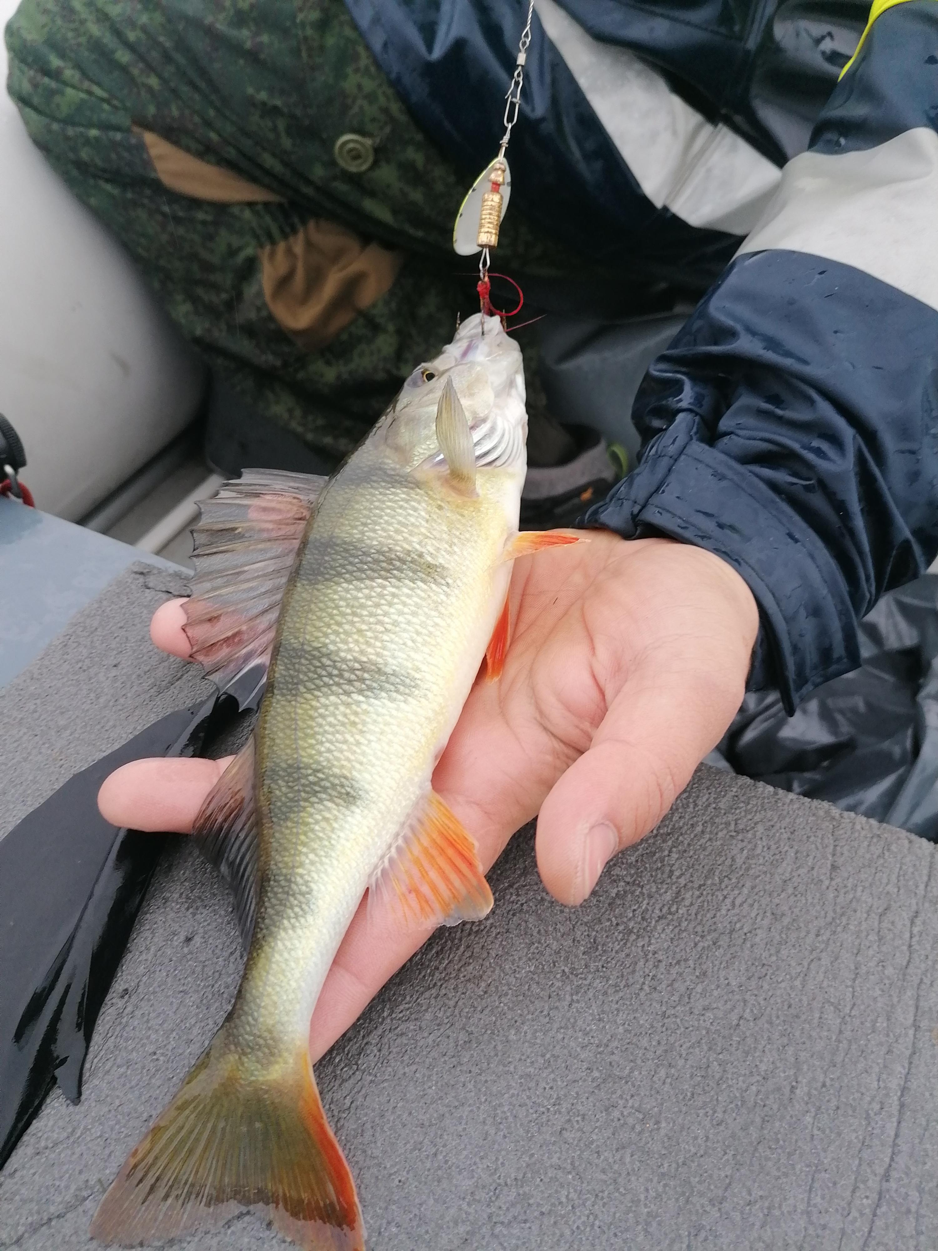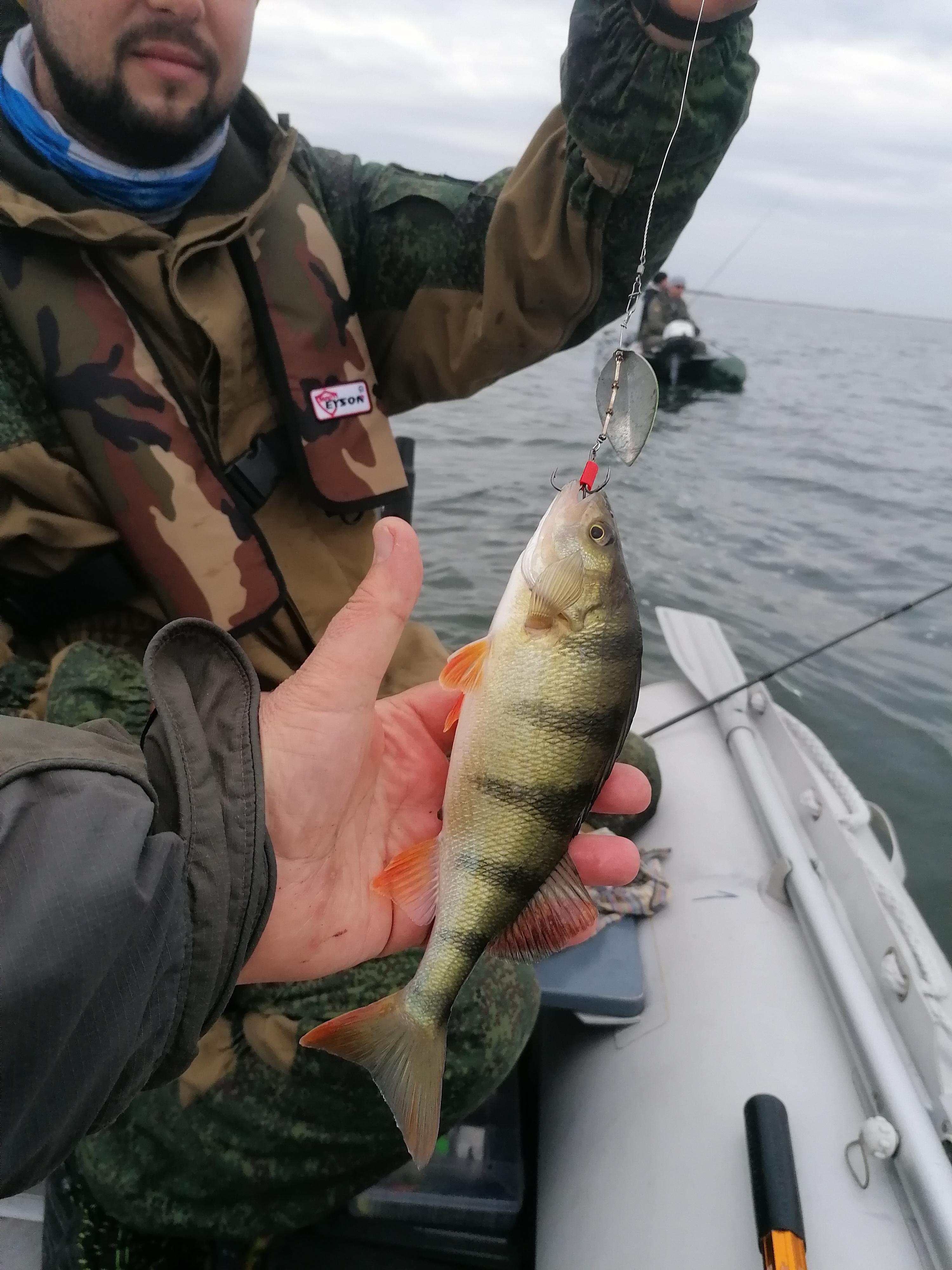 У другого рыбака в месте, где можно только на весла — — норма на двоих уже к обеду. Рулил Сальмовский слайдер.