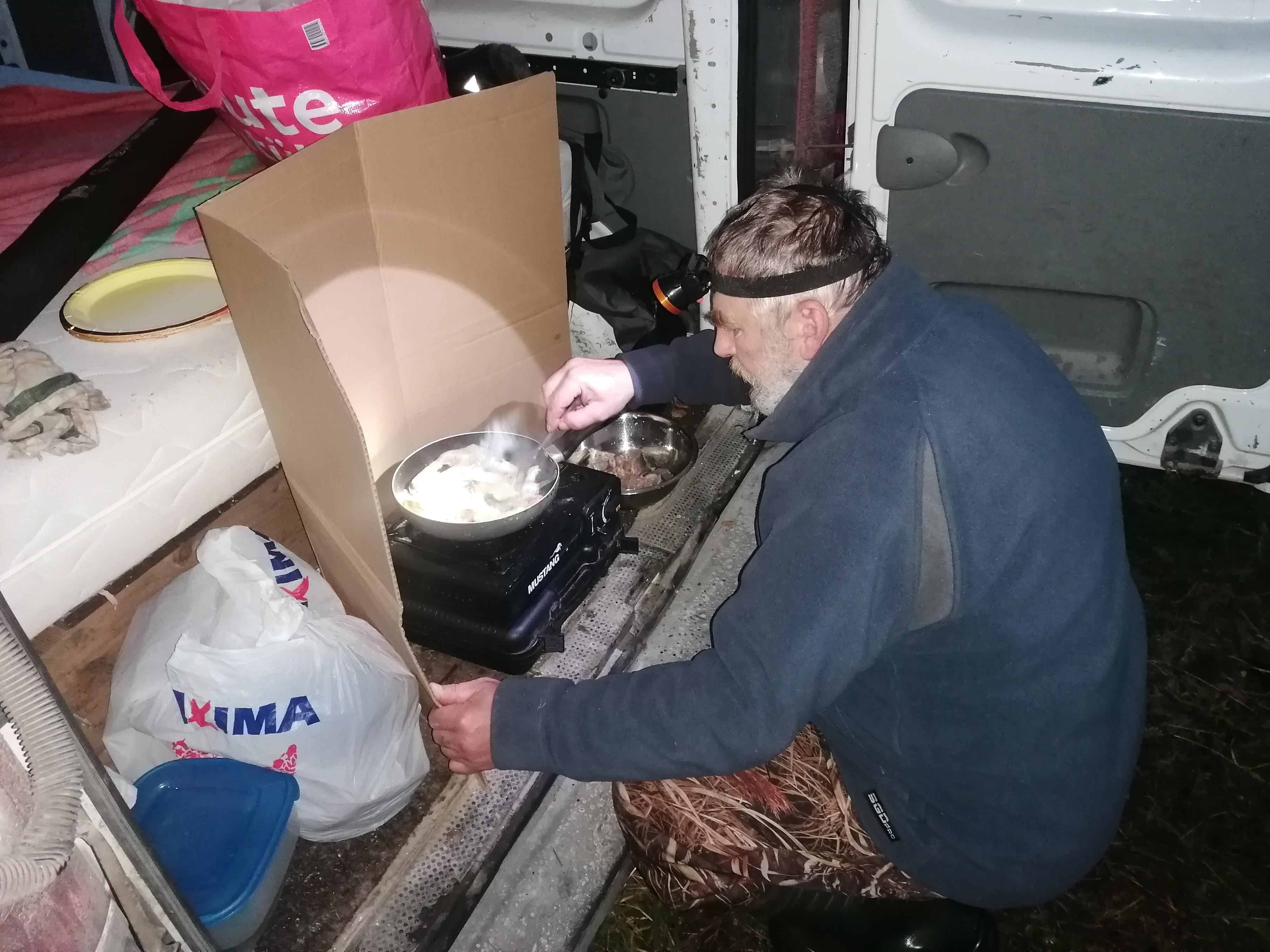 Хорошо, что хоть что то на кукан нацепили — вечером было чем поужинать ( Припасённая заранее тушёнка не в счёт! Это добро всегда с собой и его всегда можно отведать. А на природе хотелось свеженькой рыбки во фритюре. Кузьмич нам её и сварганил ).