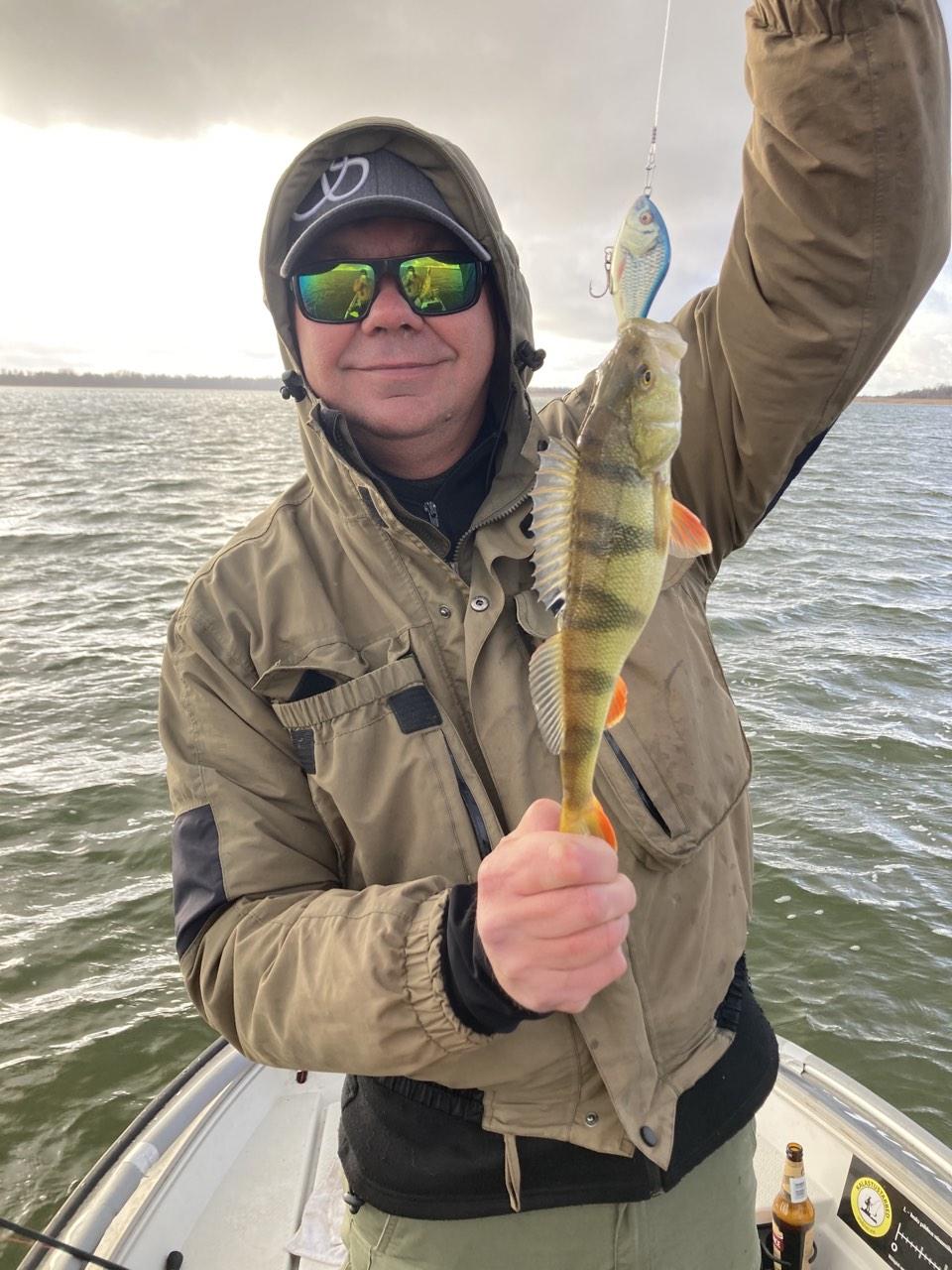 Опять решили с утра подолбить окуня. С первого заброса Маркко поймал окуня 300+. Ну и понеслось! Рыбы много, вся зачётная . Только 2 штуки отпустили, они вообще сосиски были. Всё было взято на микроджиг. Поймали штук 20, потом надоело, ушли за щукой.