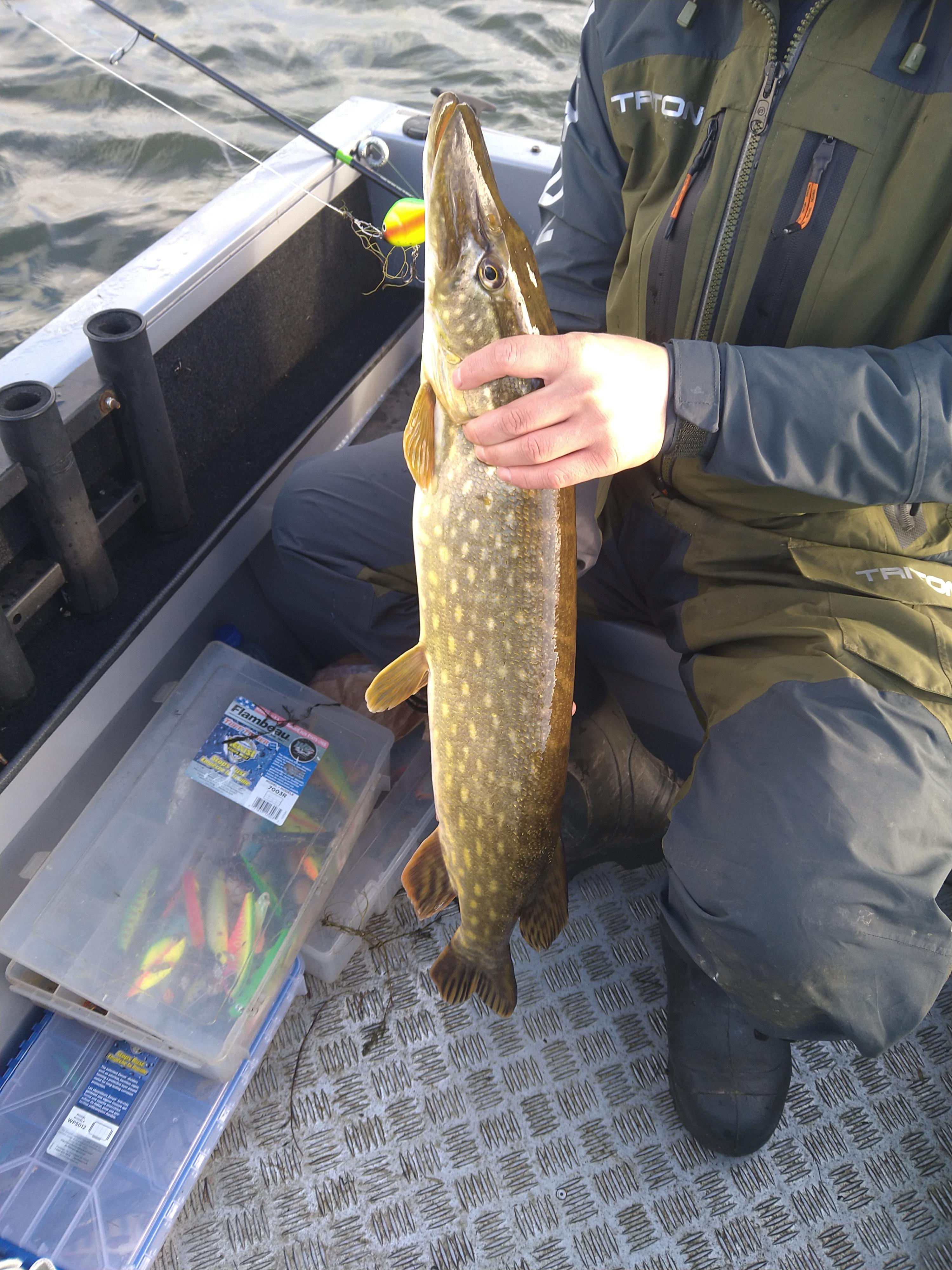 artemkaУчастникСегодня на море ветер был нормальный. Морально был готов, что подолбит и побрызгает, так оно и получилось, причём с запасом. В заливе тоже дует неслабо, уровень высокий и взбаламутить там успело.. Тем не менее, рыбу нашли и половили часа два — десятка два на двоих поймали точно, из них половина рыбы 2+, самая — трёшка. Аккуратно отцепляли, иногда взвешивали, и отпускали. Где-то с 11:30 стало выглядывать солнце, и щука пасть закрыла. Покидав до 13:30 решаем идти обратно, на таком ветру эл.мотор почти под ноль высажен, а рыбалка и так получилась.
