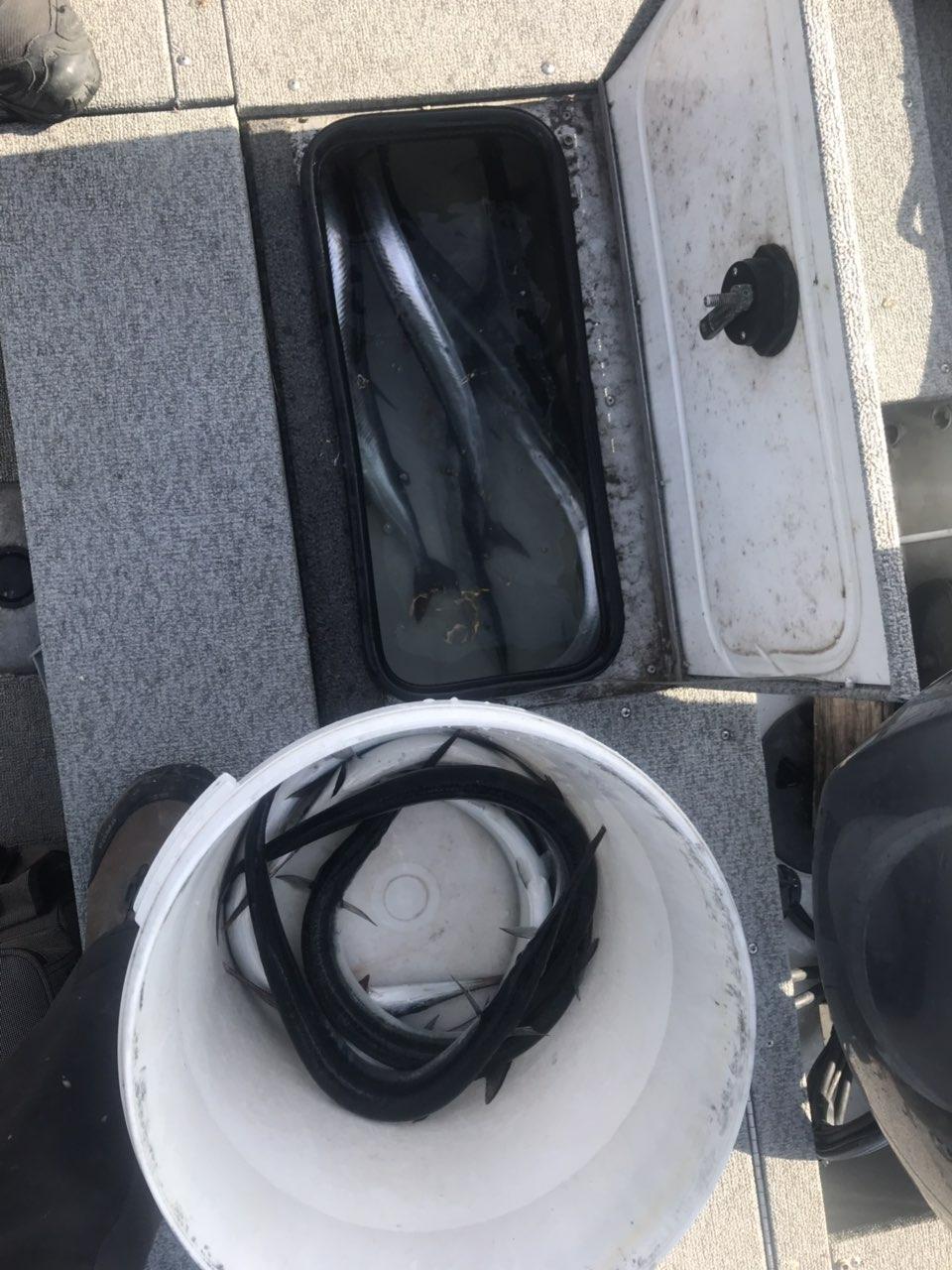 поймал 7шт. Несколько щук сошли у лодки, конечно самых больших.