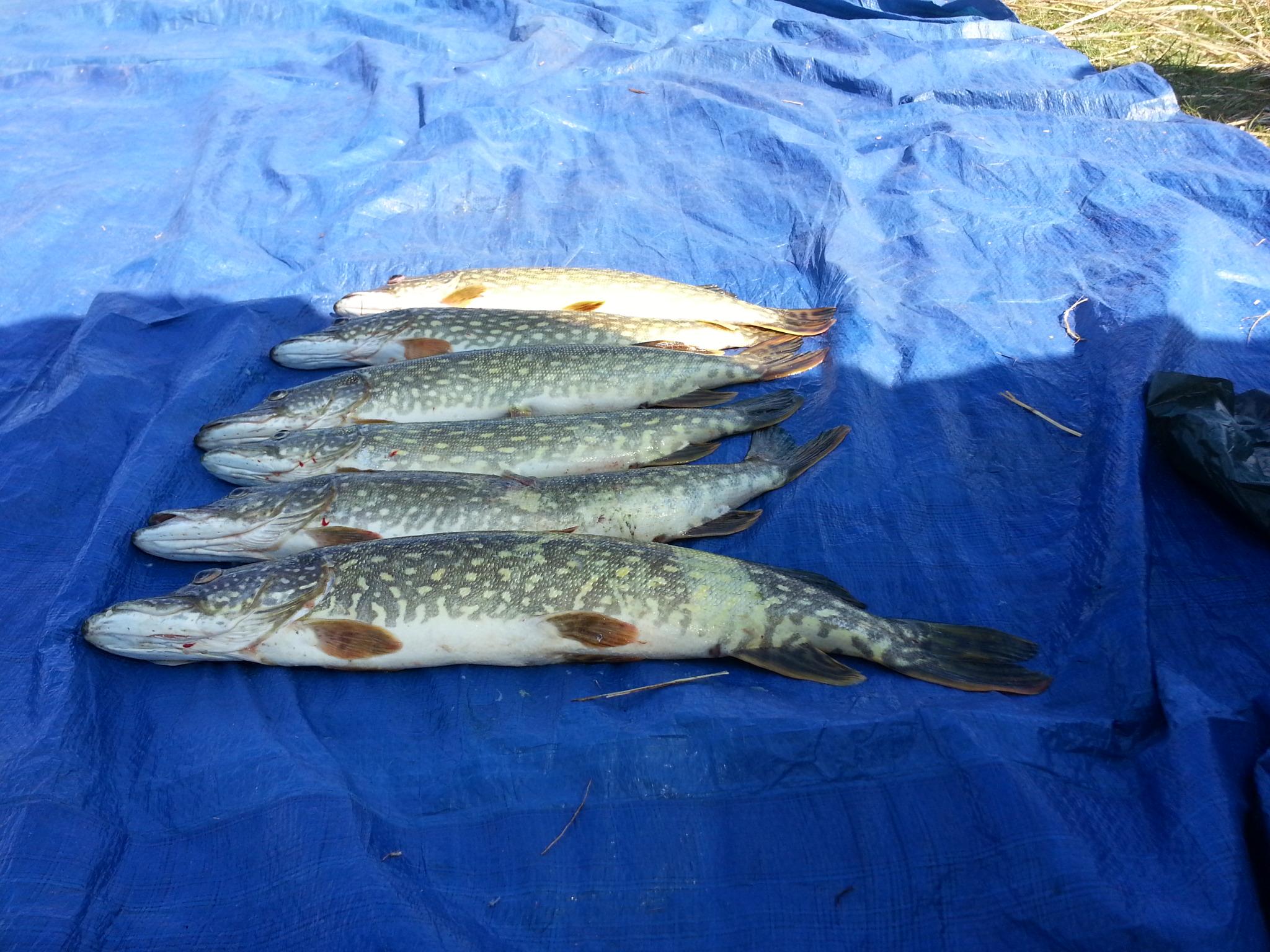 За полдня наскребли немножко щучки.Меньше двух кг сразу отпускали.Домой забрали 9 штук.