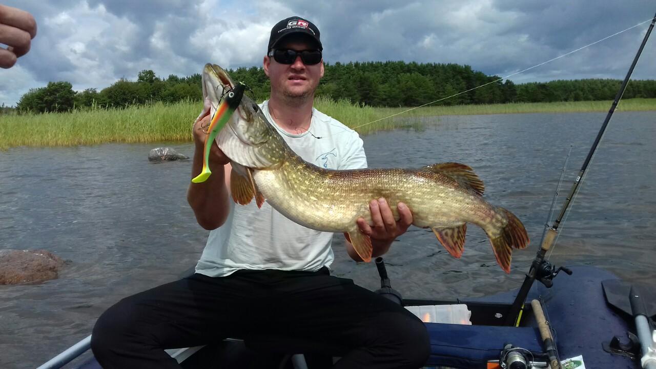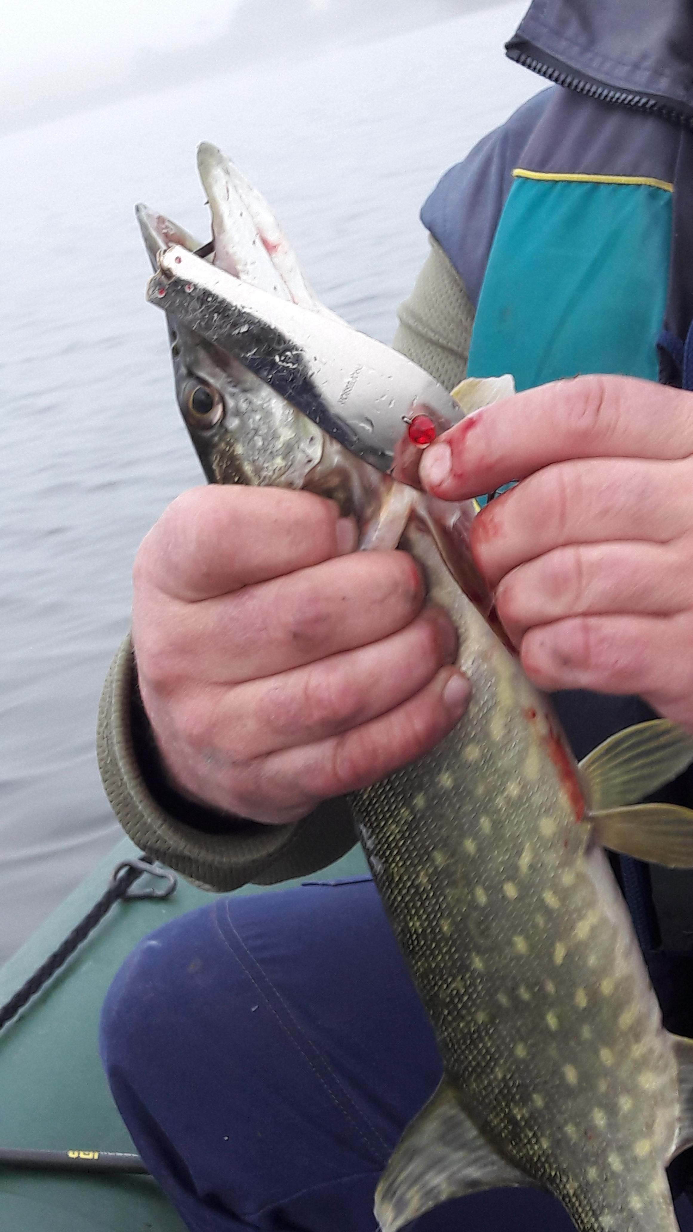 Лучше брала на Сукре ( у одного ) и на сааремаский воблер ( джерк ) у другого. Джерк в салатово-зелёных тонах.