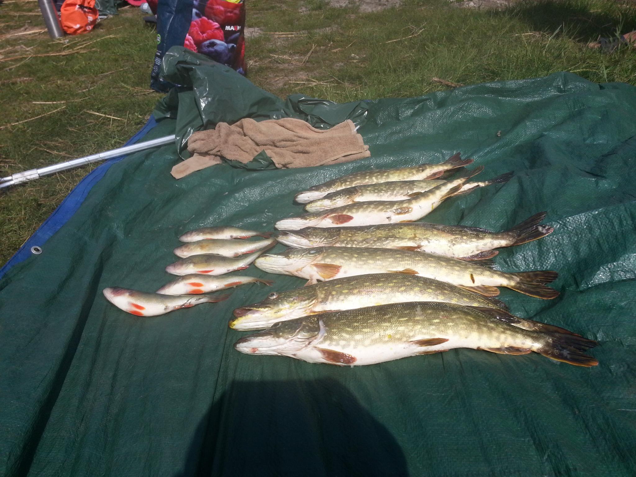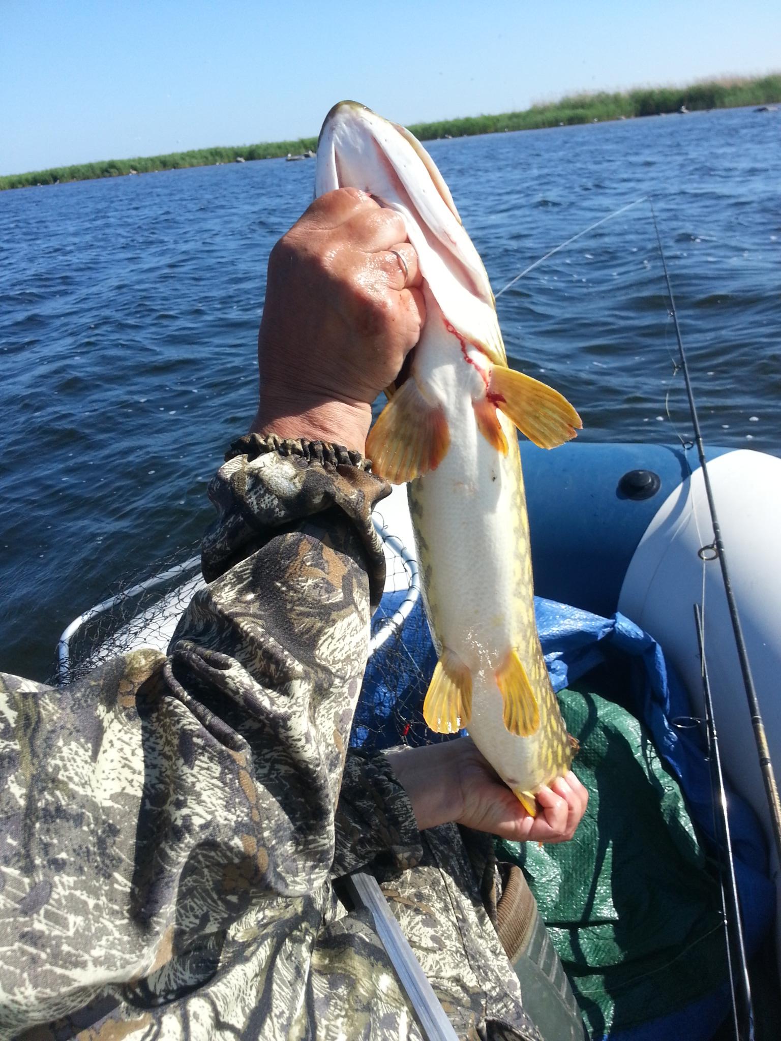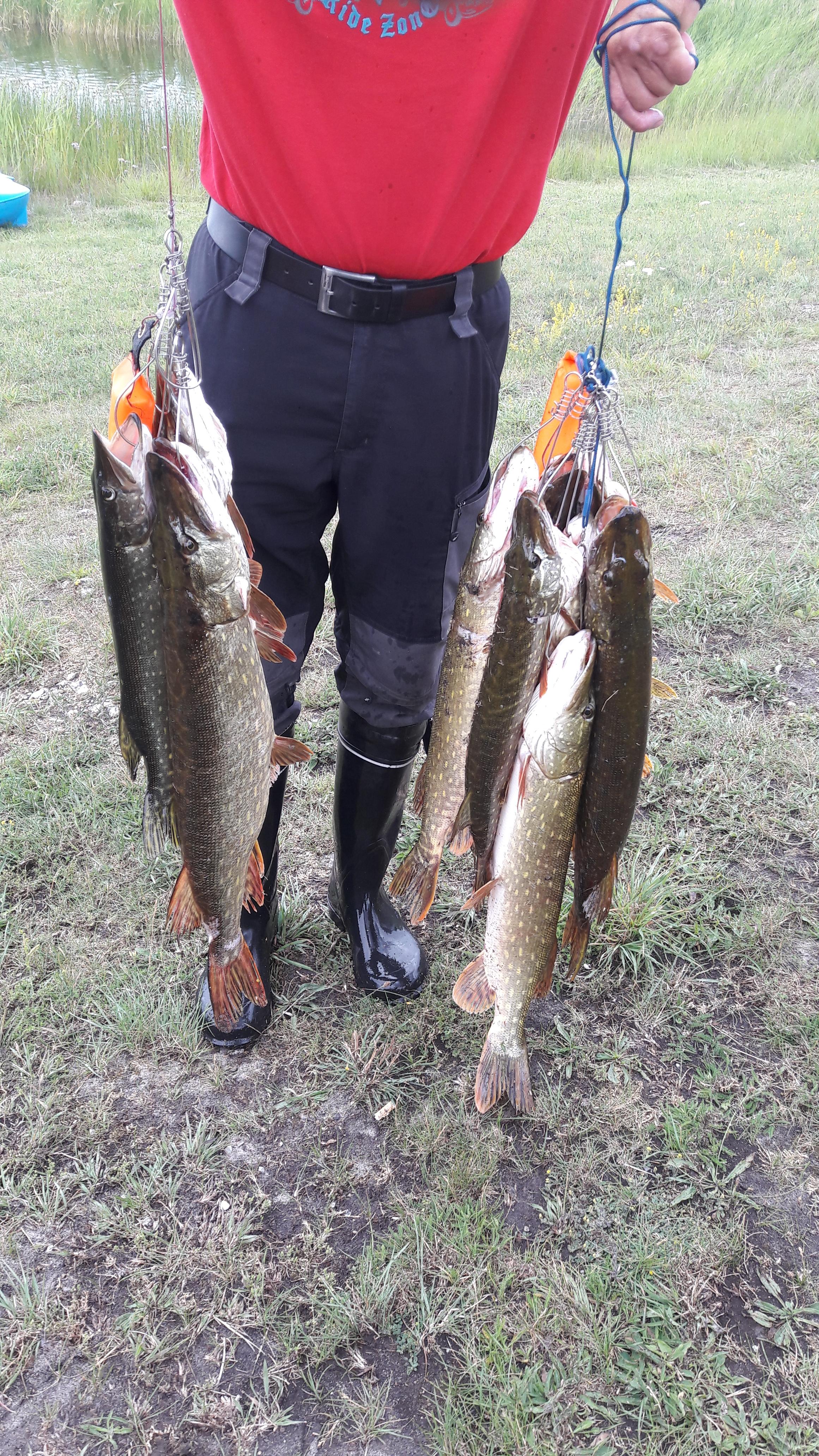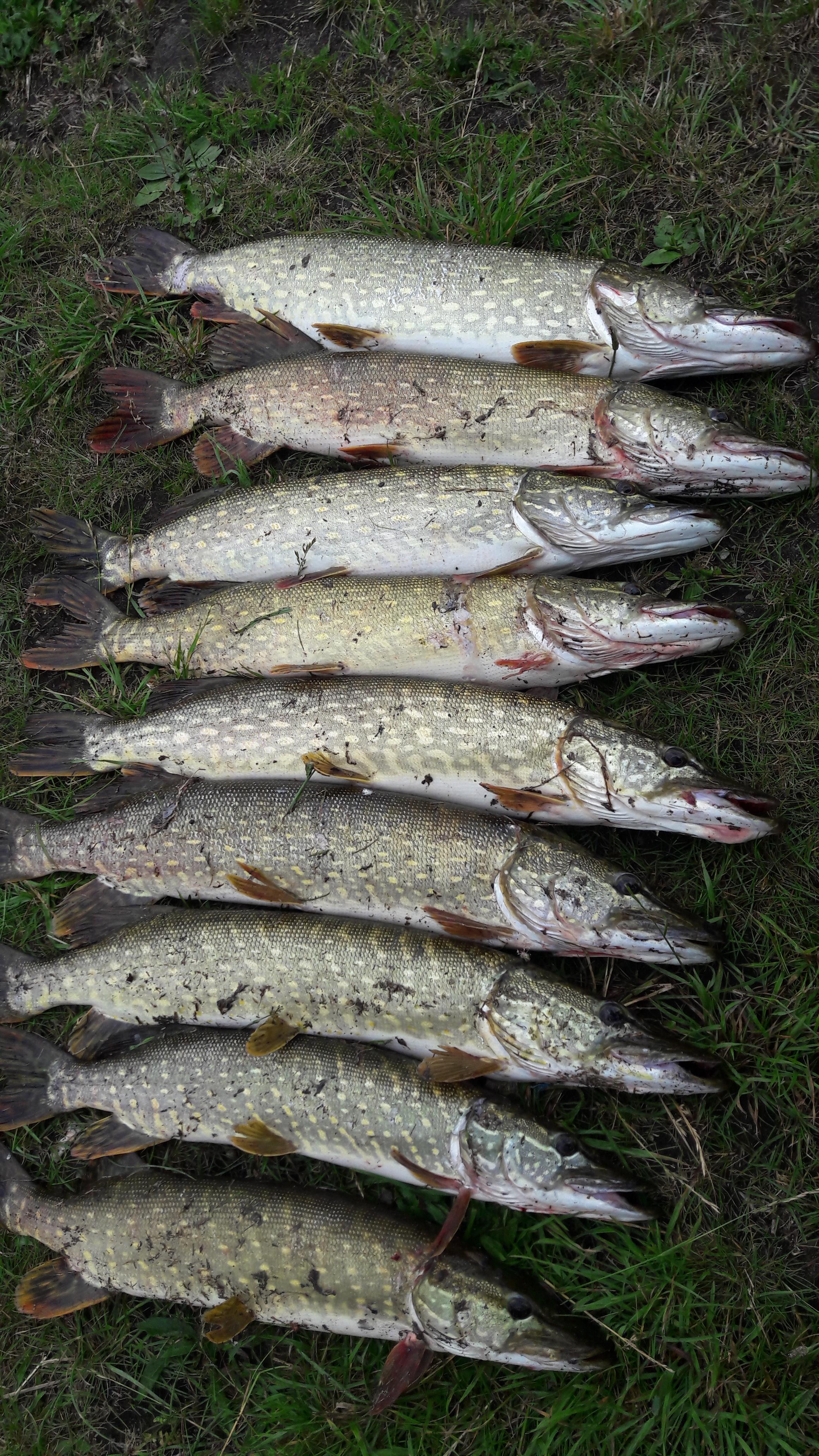 Щука 7300Поймано около 40 штук, забрано две. ( Имею видео, как отпускают особь в 4 кг ), а также 10 окуней.