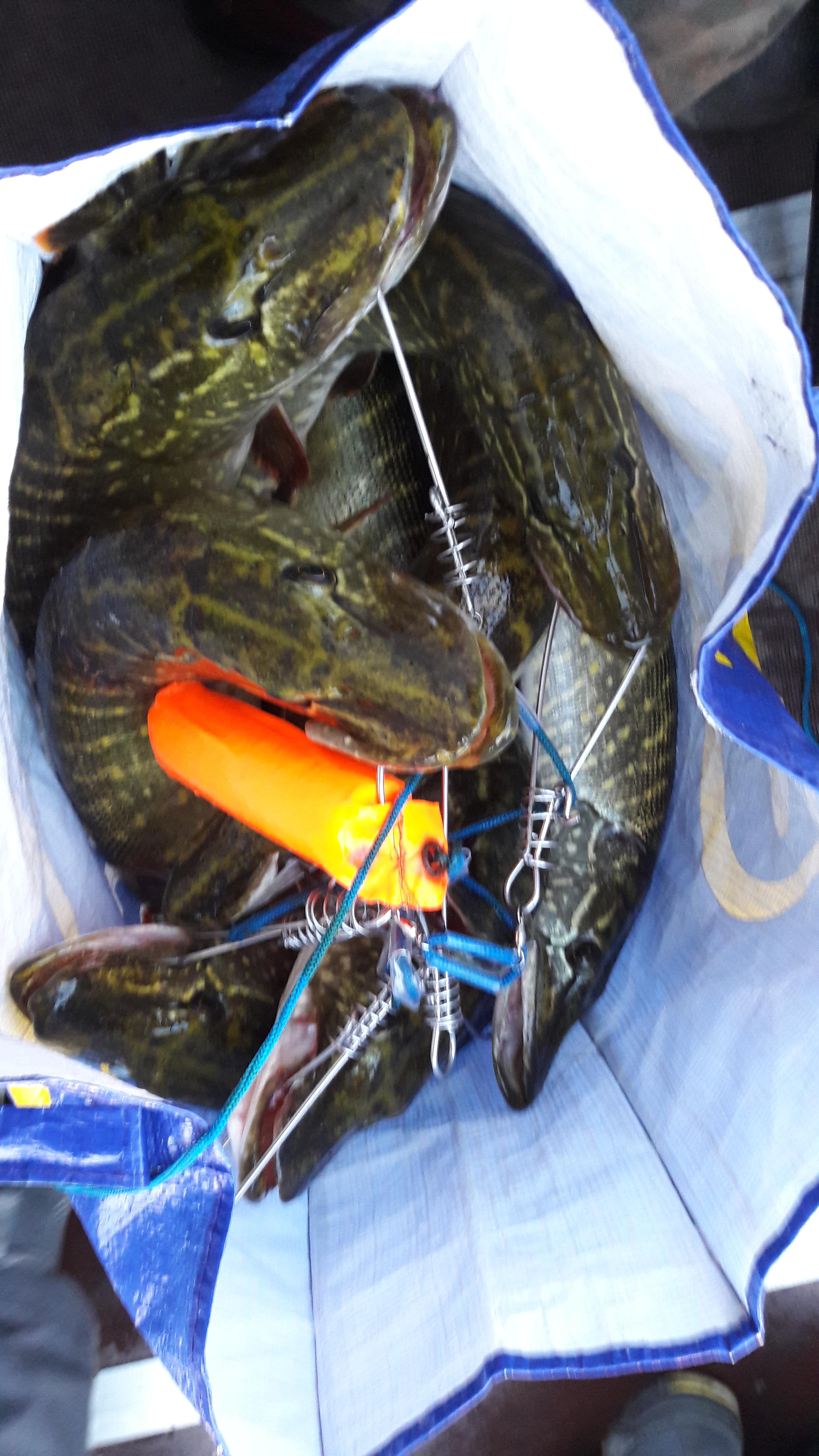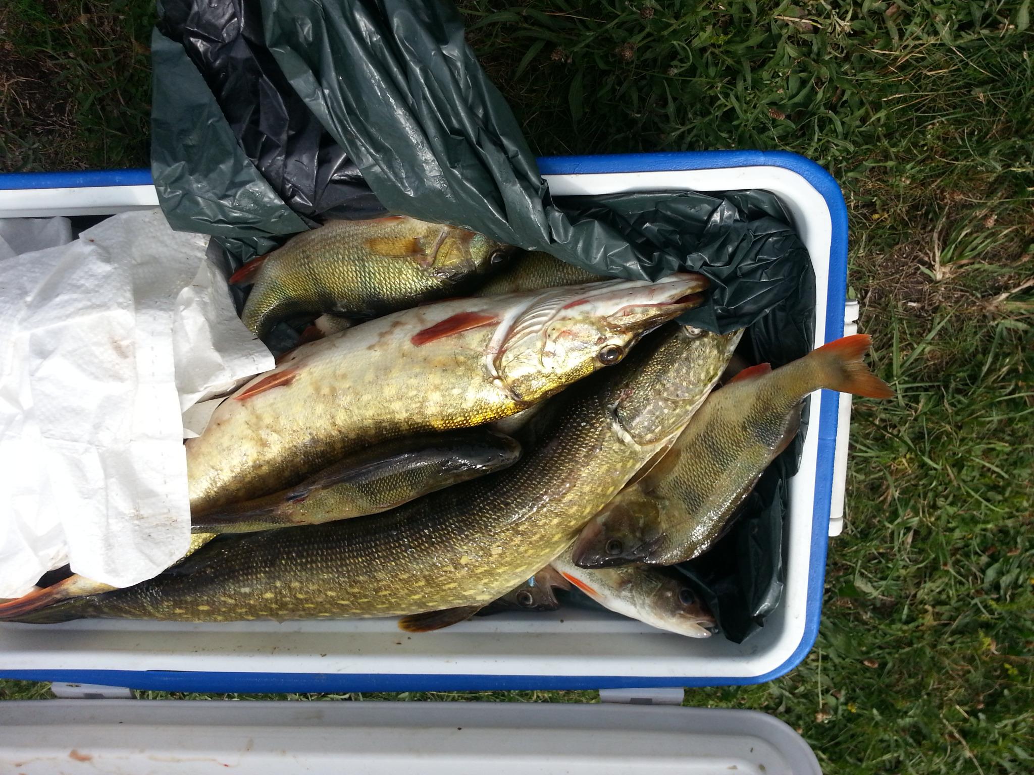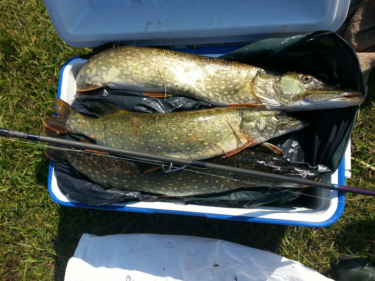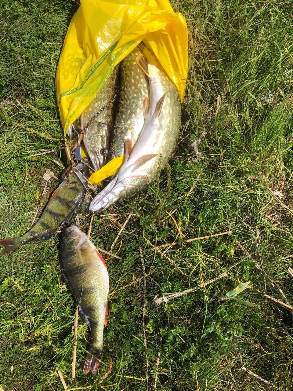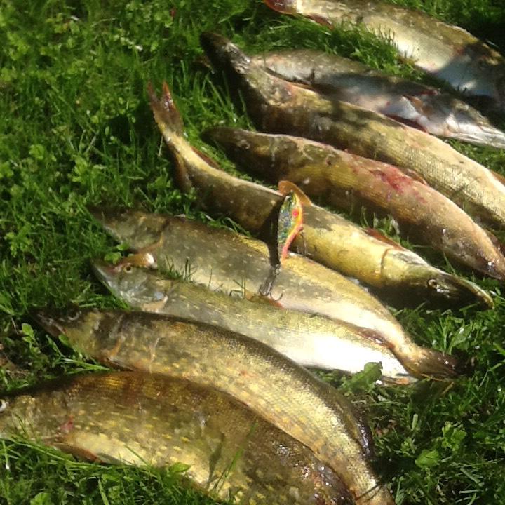 Щука 7300Поймано около 40 штук, забрано две. ( Имею видео, как отпускают особь в 4 кг ), а также 10 окуней.