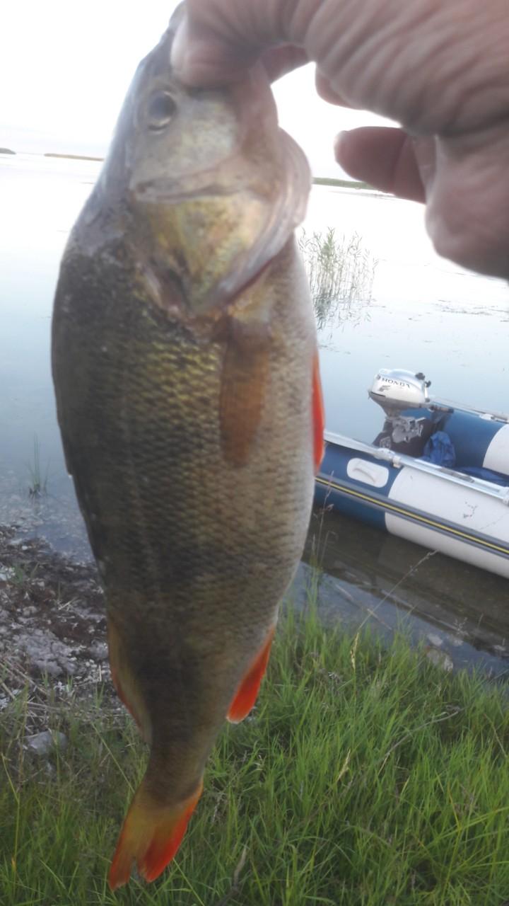 JevgeniУчастникПобывали и мы с Виктором на этом благодатном острове. Поехали в обед 18 июня, проверили один из лучших заливов…воды нет, щуки тоже..ловили до вечера, потом поужинали и поехали дальше…Утром вышли в море в 04.00, вода (-30см_), а кажется и все 50см..минус..то и дело чиркал винтом о камни и грунт, при поднятом моторе.., ветер западных направлений, слабая облачность… Окунь сразу проявил себя.., работала эксклюзивная вертушка от » Воблера», рядом стояла лодка с двумя рыбаками…они и удара не видели…а у нас то окунь, то щука…Ближе к 8 утра клев стих и мы пошли проверять старые места, где выловили по паре щук и одна «мамка» у меня сошла прямо у лодки…