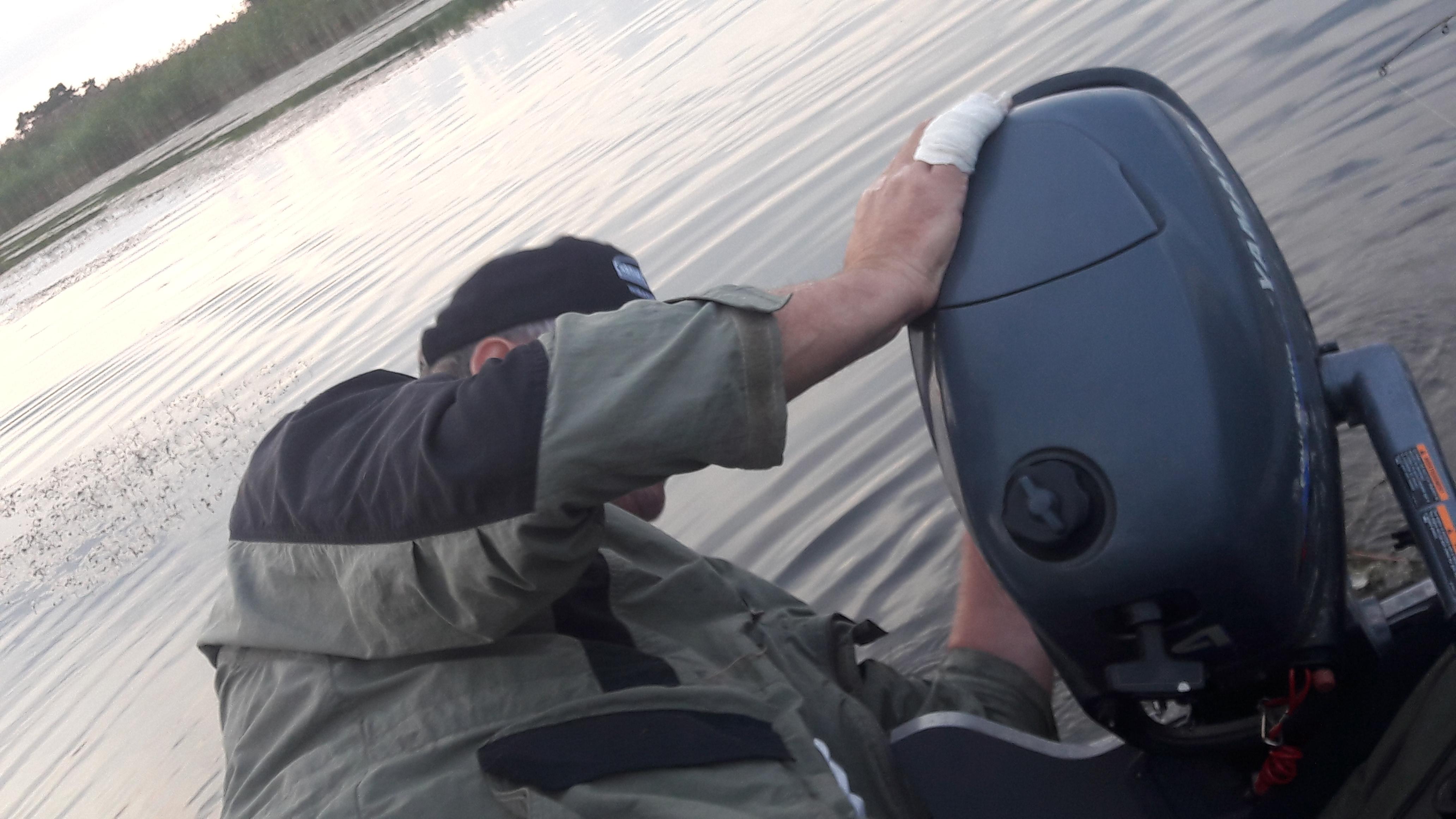 Воды мало, травы дохрена. Мотор вязнет в ней, наматывает на винт и просто цепляет на ногу, приходится постоянно его чистить.