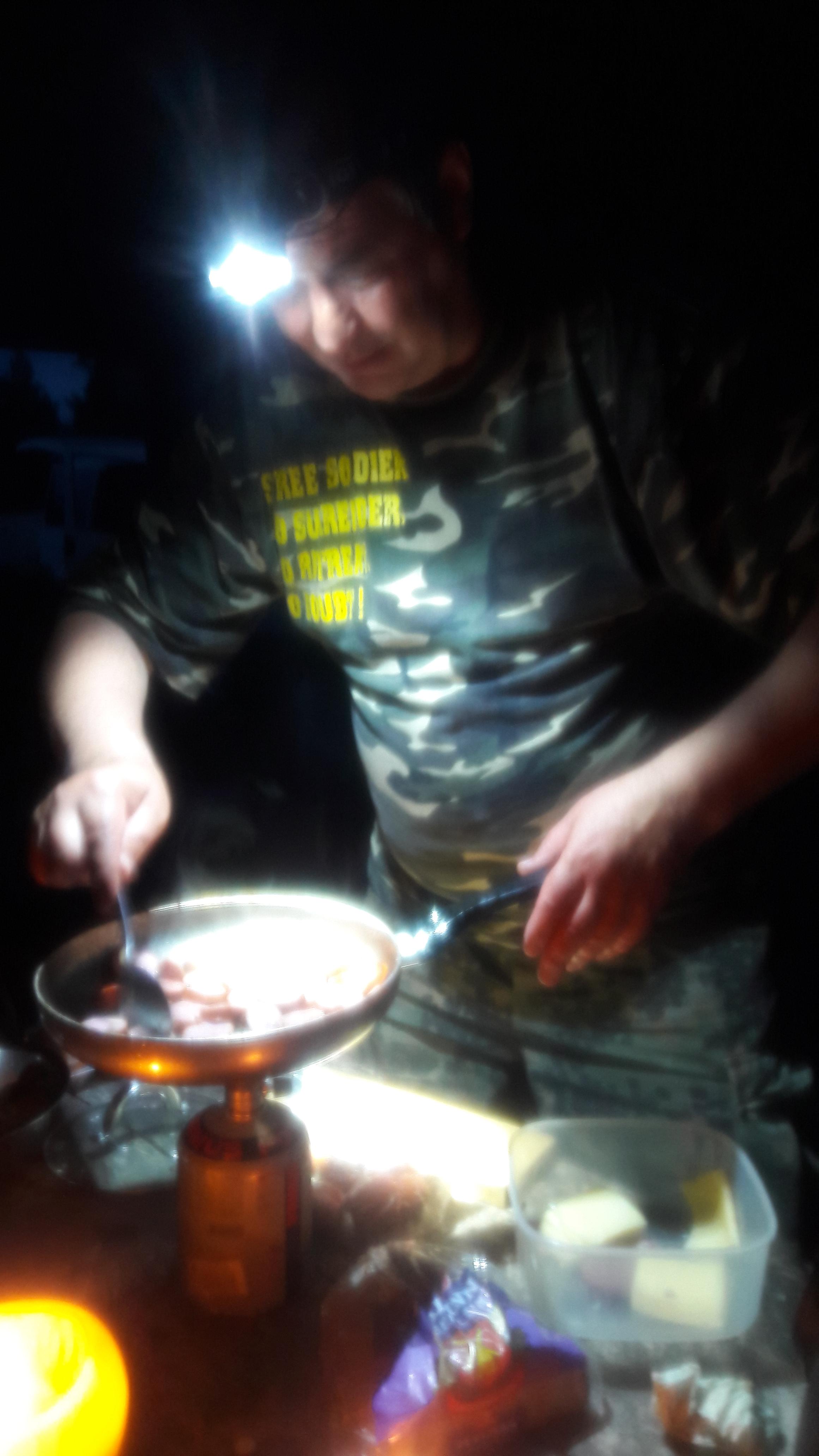 За свой слив щуки вышестоящим начальством я был назначен старшим по камбузу и в полной темноте почти быстренько сварганил ужин ( спасибо фонарику! )Спать легли далеко за полночь.