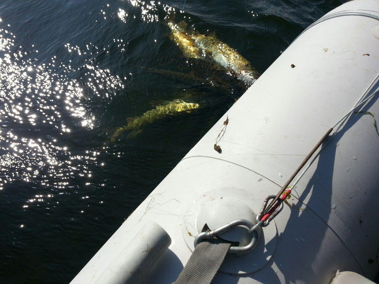Глазомер у ребят набит, не первый день рыбачат…. Килошки до 1.200 отпускались сразу. Толстенькие ,красивые — но не их рыба.