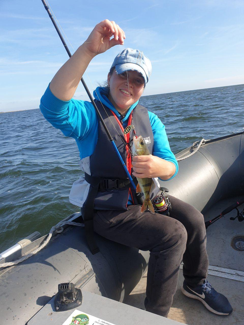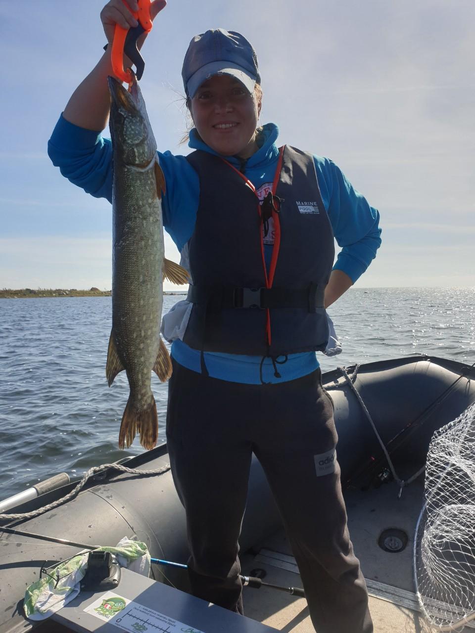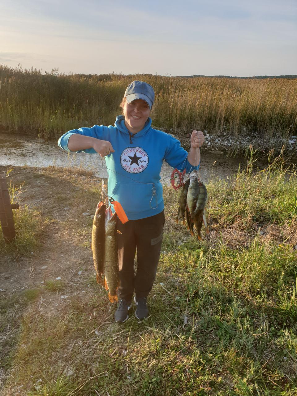 Пока Гуннар развлекался со щукой, супруга Даша тренировалась на окуне.