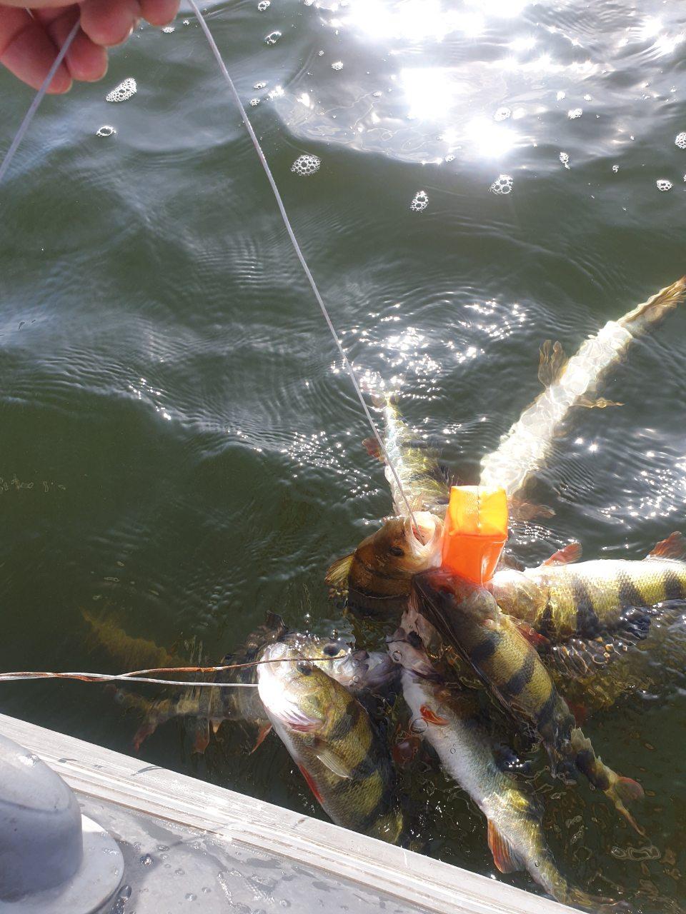 И там началооооось…..Со своим напарником Гуннаром мы договорились,что вечернюю рыбу не берём. А она прёт и прёт…. И окунь , и щука, и опять окунь.