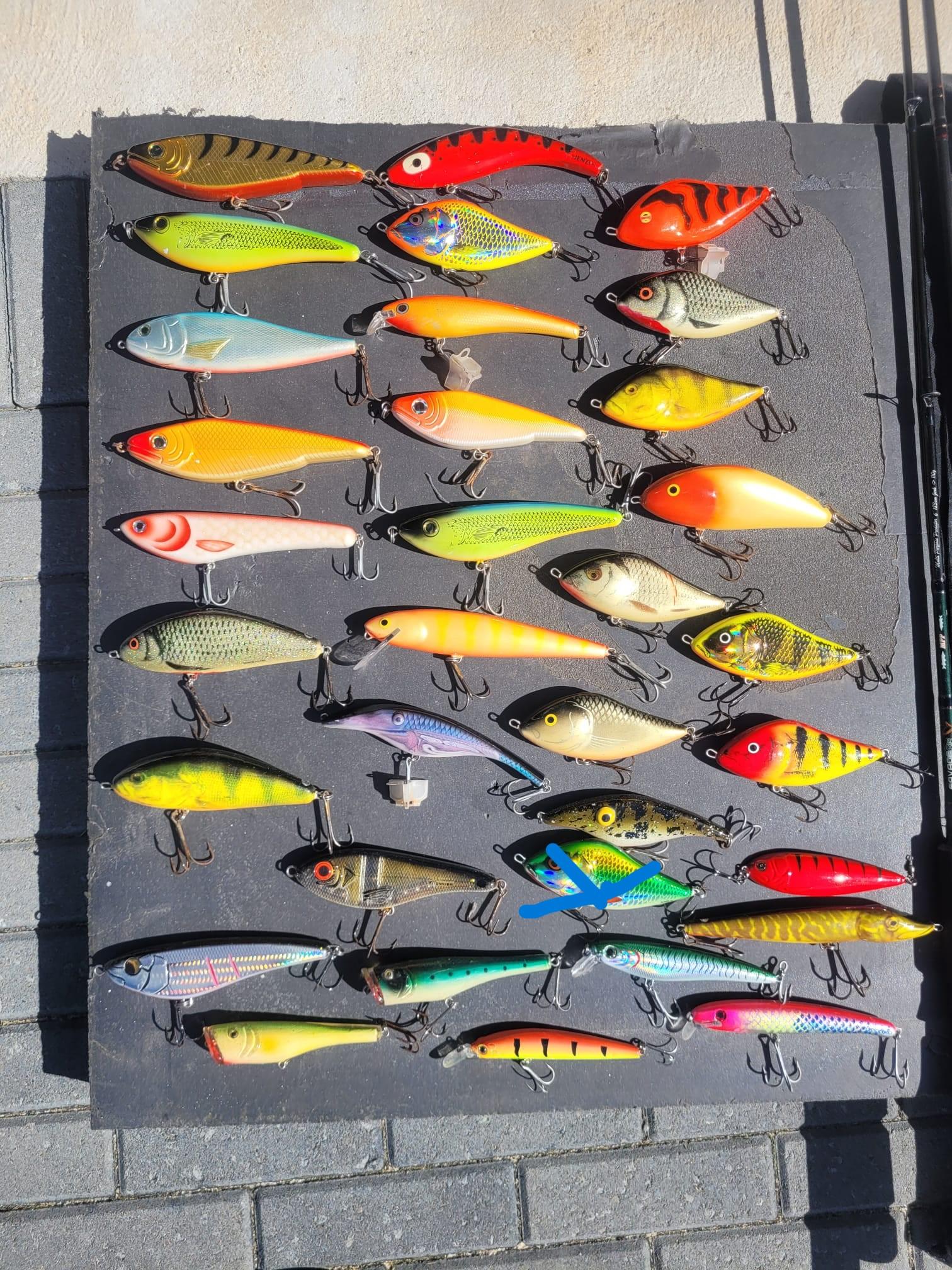 Джерки разных производителей. Многие-ручной работы, новые. Сальмовские -12см. Цена в среднем по 10евро за джерк.Два джерковых спиннинга, одночастники. Berkley б/у -30евро. Savage gear новый-50евро.