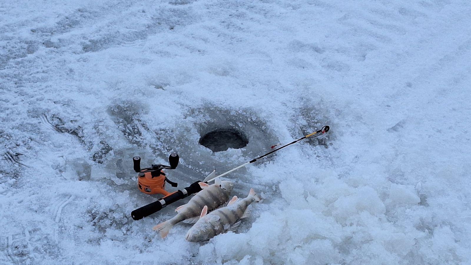 Вытащил окуня из лунки, пересадил покрепче, чтоб не сошёл, и давай его тягать туда-сюда. А напарник , ставя видео на паузы, снимает с разных ракурсов . ))