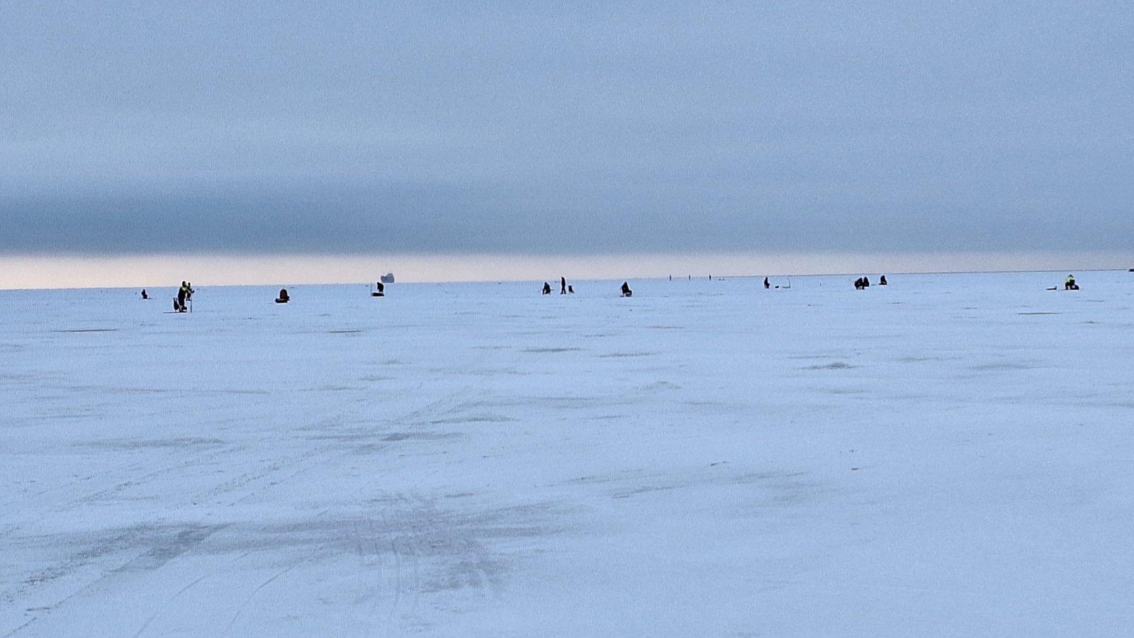 Ходу по льду минут 50 или чуть более. Примерно три — три с половой километра. Никого. Я позже видео снял ( прилагается). Так на всём обозримом пространстве всего 6 рыбаков: нас трое , и ещё какая то кампания пришла. А так, видать, никто больше не рискнул.Вот столько народу на весь залив. ))