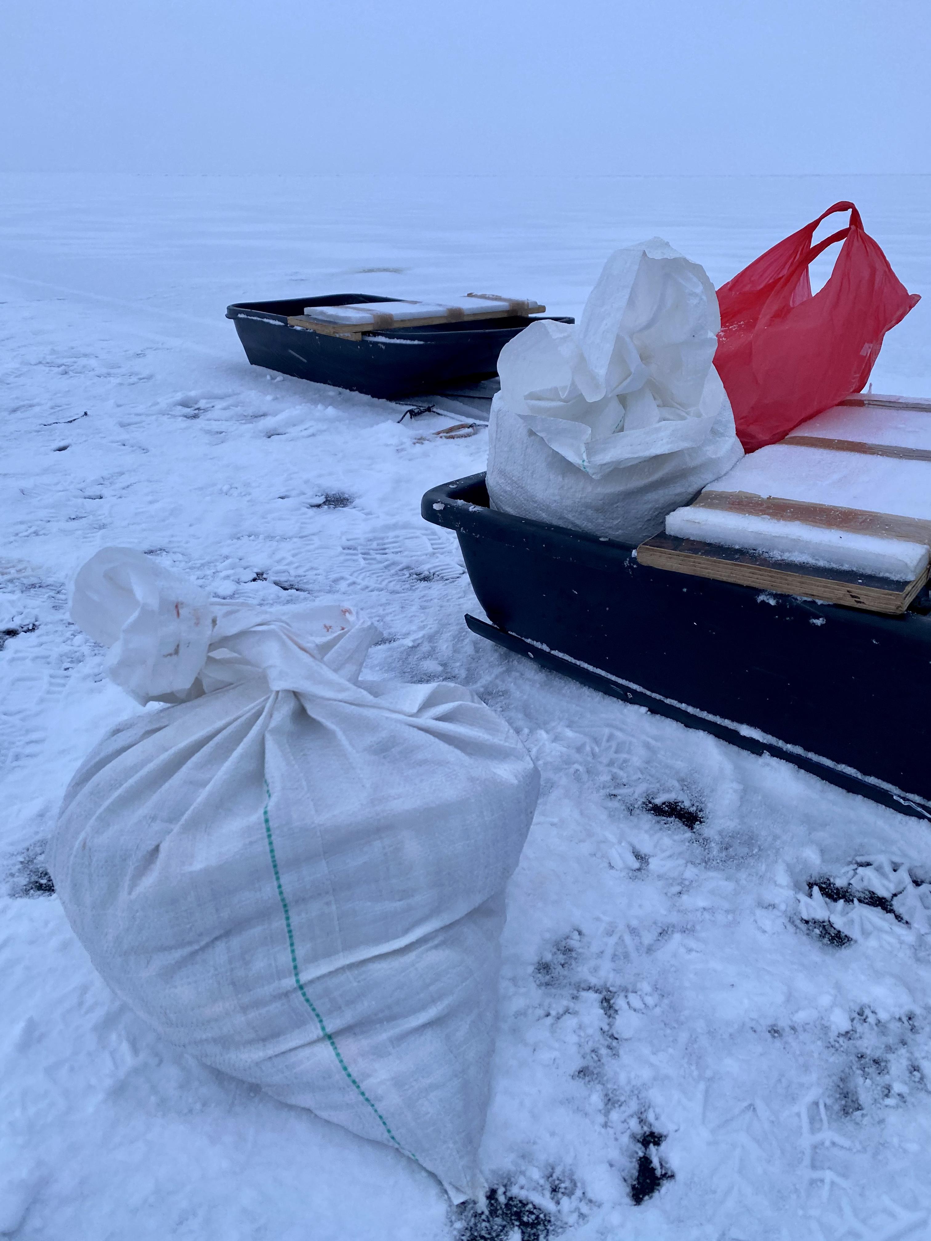 Ситуация не радует.Снега на льду нет, лёд рыхловатый, вода. С их слов, скорее всего эти выходные будут последними, когда работала развозка. Если морозы не ударят , так это будет точно.