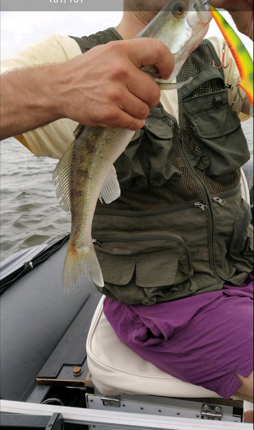 artemkaУчастникПервый раз на заливе и первый раз ловля судака на троллинг. Экспресс рыбалочка получилась, на воду вышли в 7 вернулись в берег в 10, нужно было ехать в Тлн. Первым влетел зачет, дальше несколько напильников. Задувало сегодня довольно прилично. К 10 на заливе лодок не осталось, все в речке прятались.