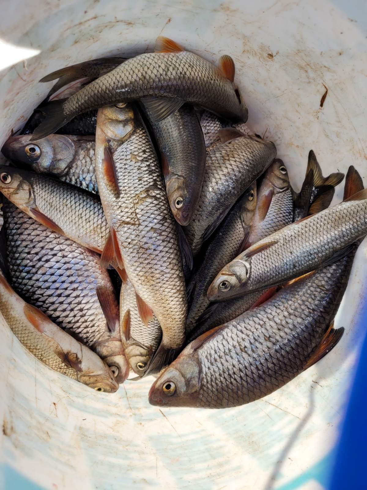 Viktor1955УчастникКак и писал, посетил этот канал. Надежды были, как бы это сказать, знаменитое ведро от шпаклёвки наловить, кои были у многих, а то и более. Но вот «нептун» сказал, да хрен вам в лоб. Раньше такого не говорил, налавливал не однократно, такое ведёрко. Шучу конечно, налавливал, но не этот раз. Общим погода не оправдала надежды, помёрзли. Карась не предсказуем, то сразу пяток, то жди часок. Ловили все по разному, кто то ведёрко взял, 10 литров, ушли, кто то ждал, что такое поймает, ушли. Мой улов 28 карасей, прим. половина ладошка и чуть выше, остальные уже под 300-350 грамм. Жаль напарника, всего 8 штук взял. По опросам рыбаков, кои сидели ка и мы, до 15, таже картина, у кого до десятка, у кого до полтинника, в штуках разумеется. Но, самое главное, рыбачь, учись, у тех кто успешней, и не унывай. И да, рыбаков было «больше чем карася», это наши соседи, шучу.