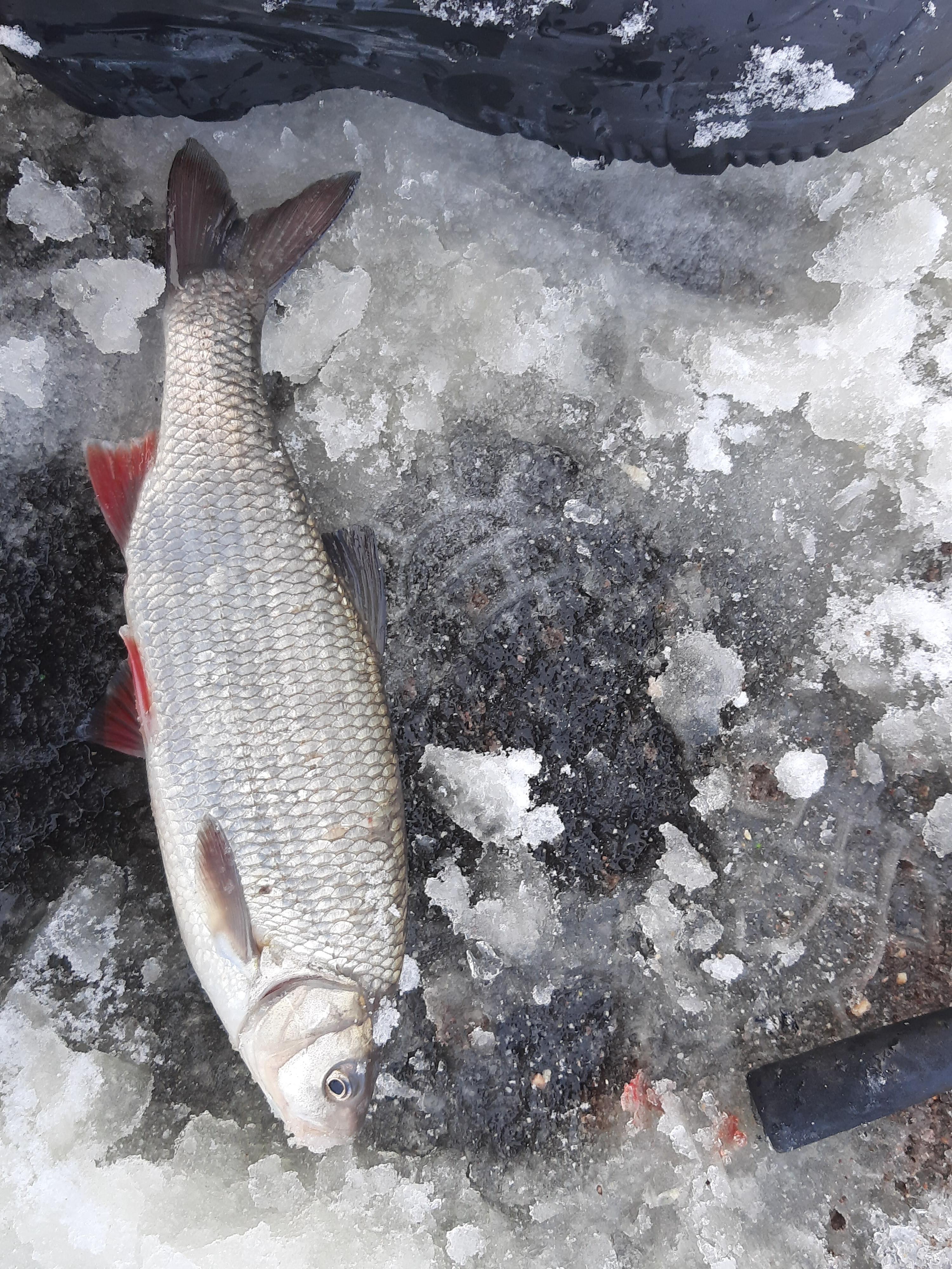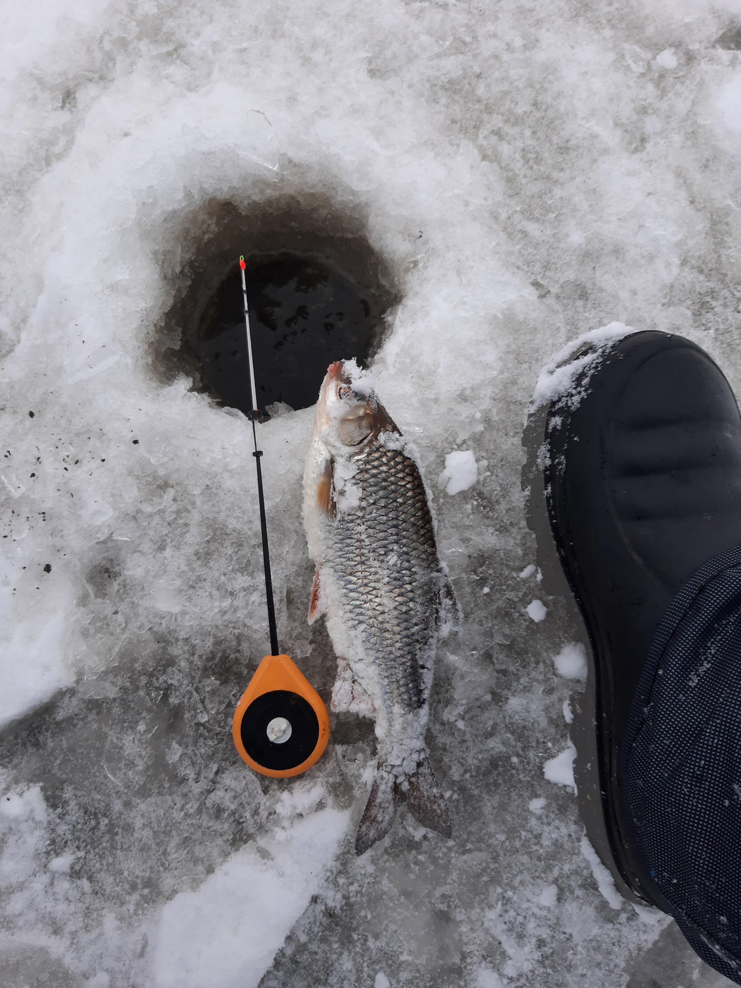 По рыбе. Забурился недалеко от лодочной. Рыб в виде густеры откликнулся сразу, но размер не радовал. Была одна вимба недомерка и рыба язьььь! Растут дальше. Видимо не там ловил или костюм у меня не тот. Слышал на Remington и окунь и плотва сама вешается на крючок. Бегать и искать не хотелось, погода не располагала. Так и просидел на одном месте до 13.30.