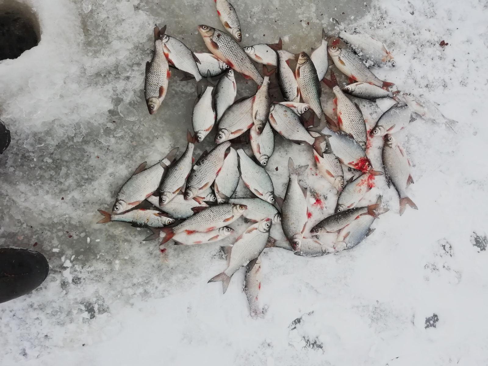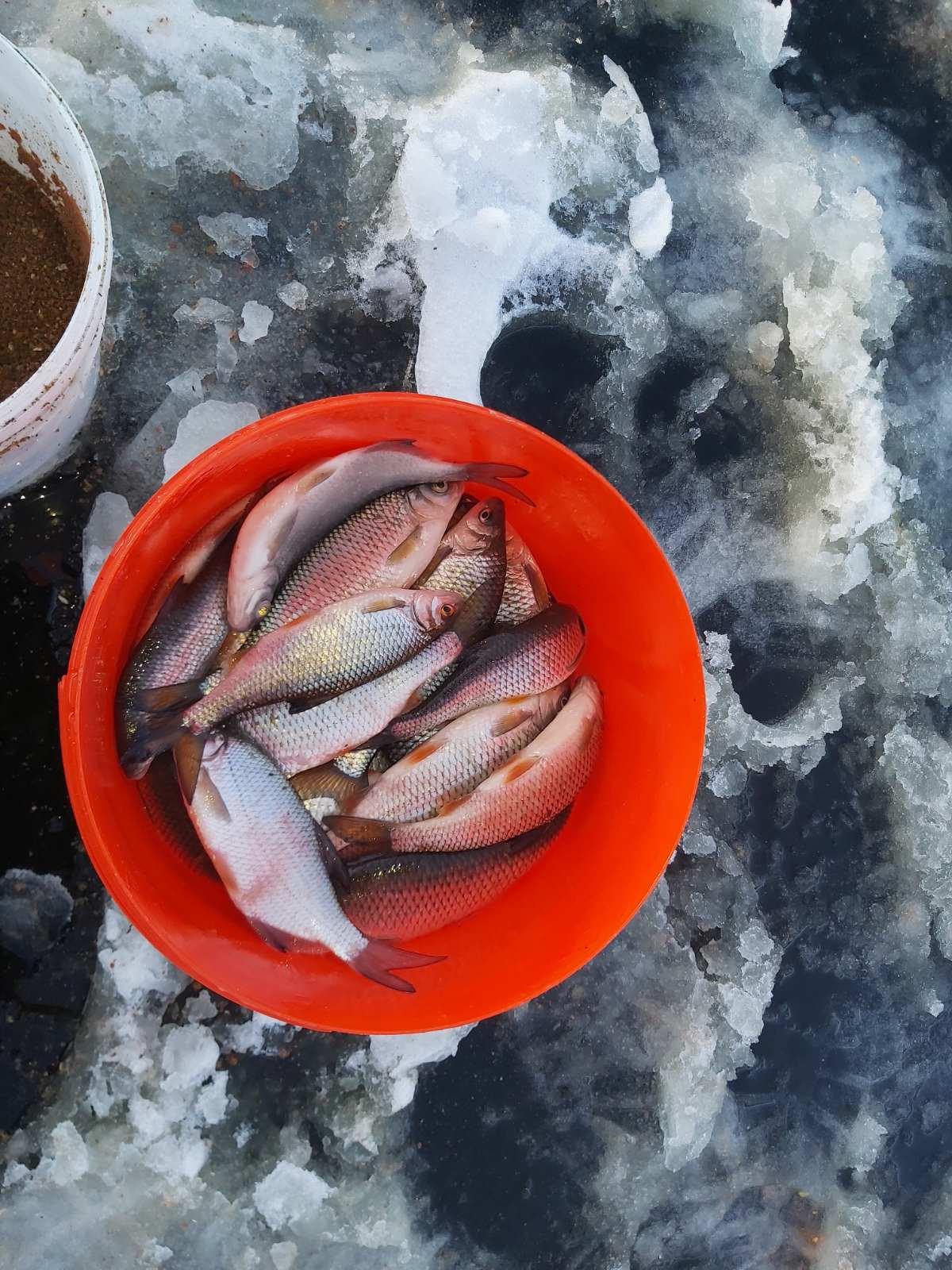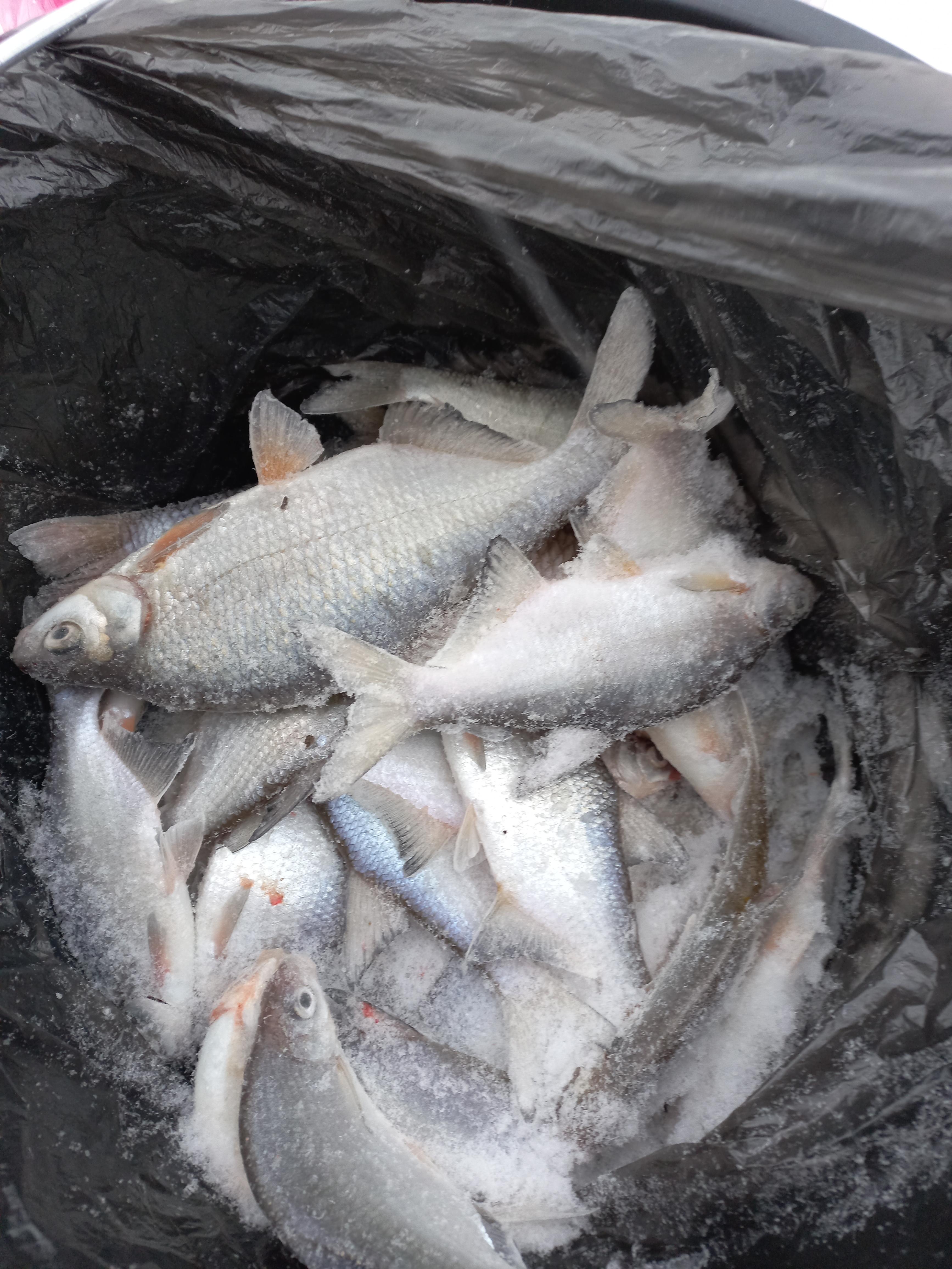 Вчера, 2 января, погода была далеко не айс, но всё равно с рыбой на реке всё в порядке. Знакомый начинал у бочки на 6-ти метрах. Плотва клевала крупная, за 200гр., но не часто. Наловил штук 15-18 и перешёл ближе к левому берегу на 2,5-3метра. Там рыба была намного активнее, но размер явно уступал первоначальной рыбе. Тем не менее , свои ** кг ребята взяли.