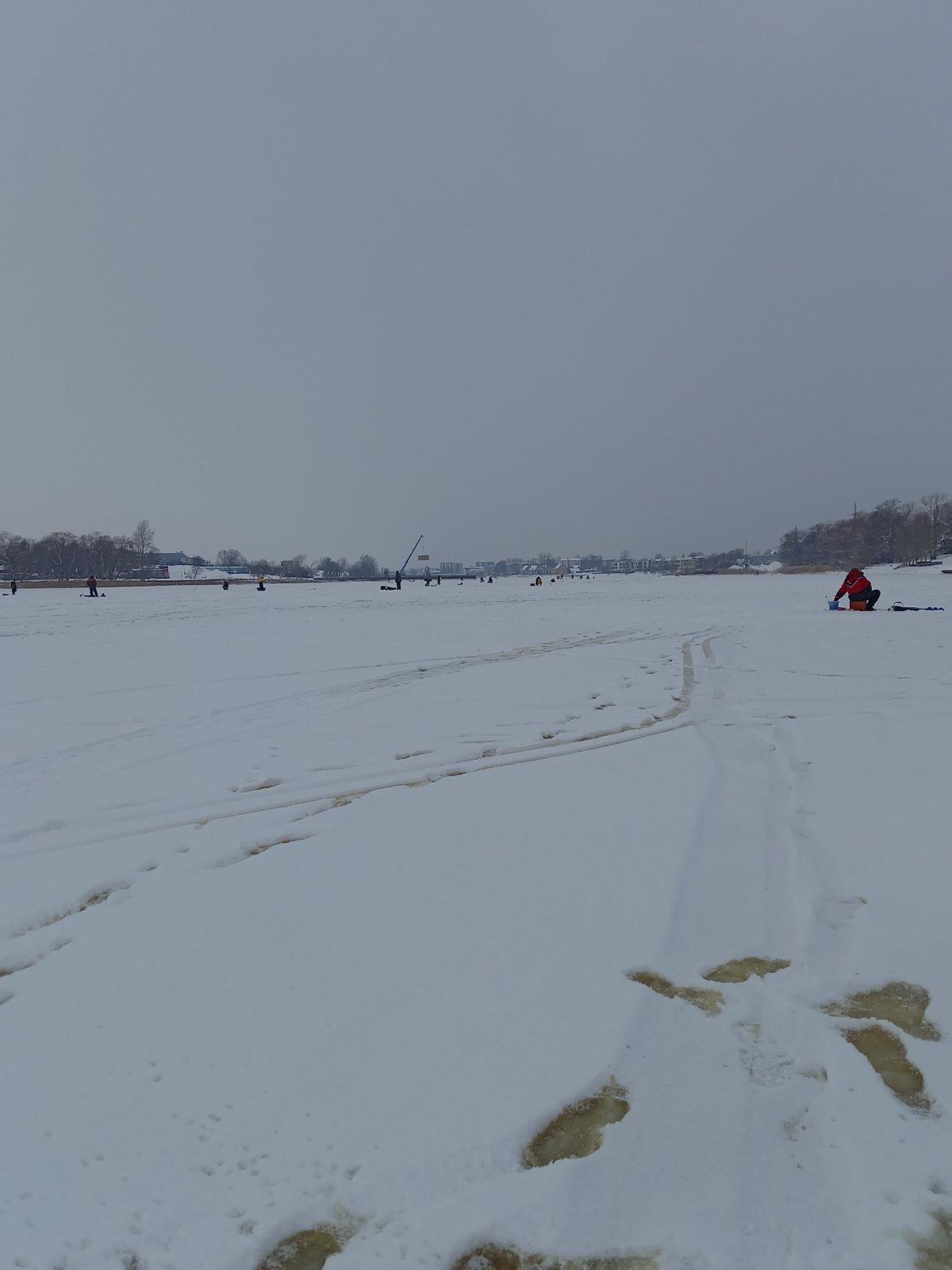 — Нет, не в лунку. Яма какая то. Была бы лунка, мой сапог туда бы не пролез. А так сапог даже за лёд не задел, сразу ушёл. Может майна какая или просто лёд подмыло. Лёд ,кстати, пипец какой проблемный. Нихрена не видно, каша со снегом и водой. Буришь, вроде какая то суспензия, какое то сопротивление есть.Потом доходишь до льда — два три оборота бура — и всё, он просто тупо проваливается. Со стороны смотришь, вроде до льда далеко, вместе с кашей 20-25см. А проведёшь ногой по лунке, смахнёшь всю эту жижу, а так и льда то не видно. Где он белёсый, то сантимов 6-7 есть, а где прозрачный, как будто на воде стоишь. Неприятное ощущение. Я туда точно больше не ходок. Да и клёв никакой. И это у меня ещё неплохой улов, потому что мотыля с собой много было.