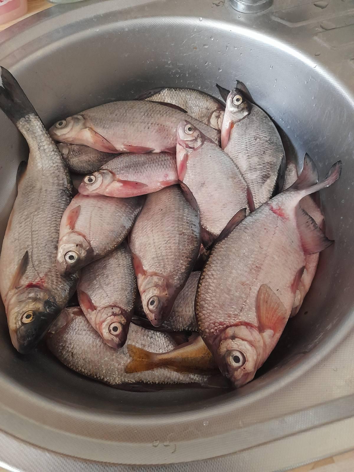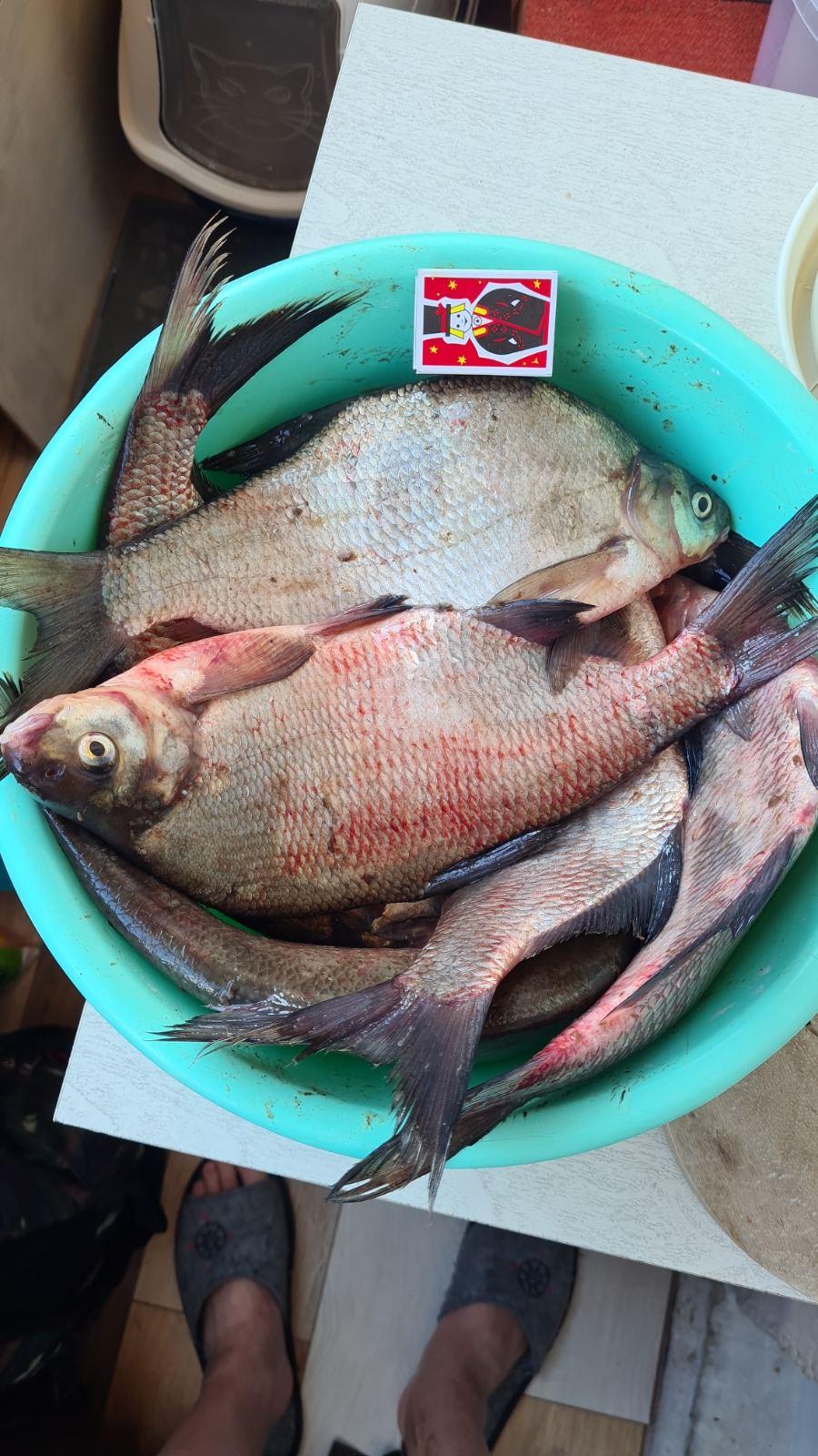 На обратном пути заехали в Оре. Там намного лучше ловилось, но мы не стали раскладываться. Просто походили ,посмотрели, поговорили. Народу много, но ловилось «на обум». Видел мужиков, которые поотрывали все кормушки и ловили тупо на грузила с 3-5 крючками. Короче, снасть как на салаку. Типа самодура. И у них клевало. У других по разному. Кто то тоже потягивал, но в не все, это точно. Но веселее, чем у нас. Но берег там проблемный. Чуть зазевался и в воду ушёл. Дорога тоже вся разбита. Я на секунду отключил полный привод , типа решил проверить. И тут же сел. Короче , надо было сюда ехать, здесь по рыбе намного лучше. А там, где были мы, очень-очень эпизодически» и не стабильно. У кого то одна, у кого то 3-4. У того парня спортсмена вообще всё замечательно. Но ты же знаешь, мы ездим не за рыбой, а чисто на природе отдохнуть. Так что всё равно не жалеем, что поехали сюда. Рыбы ещё наловим, а что кaсается природы и условий, то здесь ( в смысле ВЫШЕ Оре ) находиться намного приятнее.Вот это наш улов на троих. »
